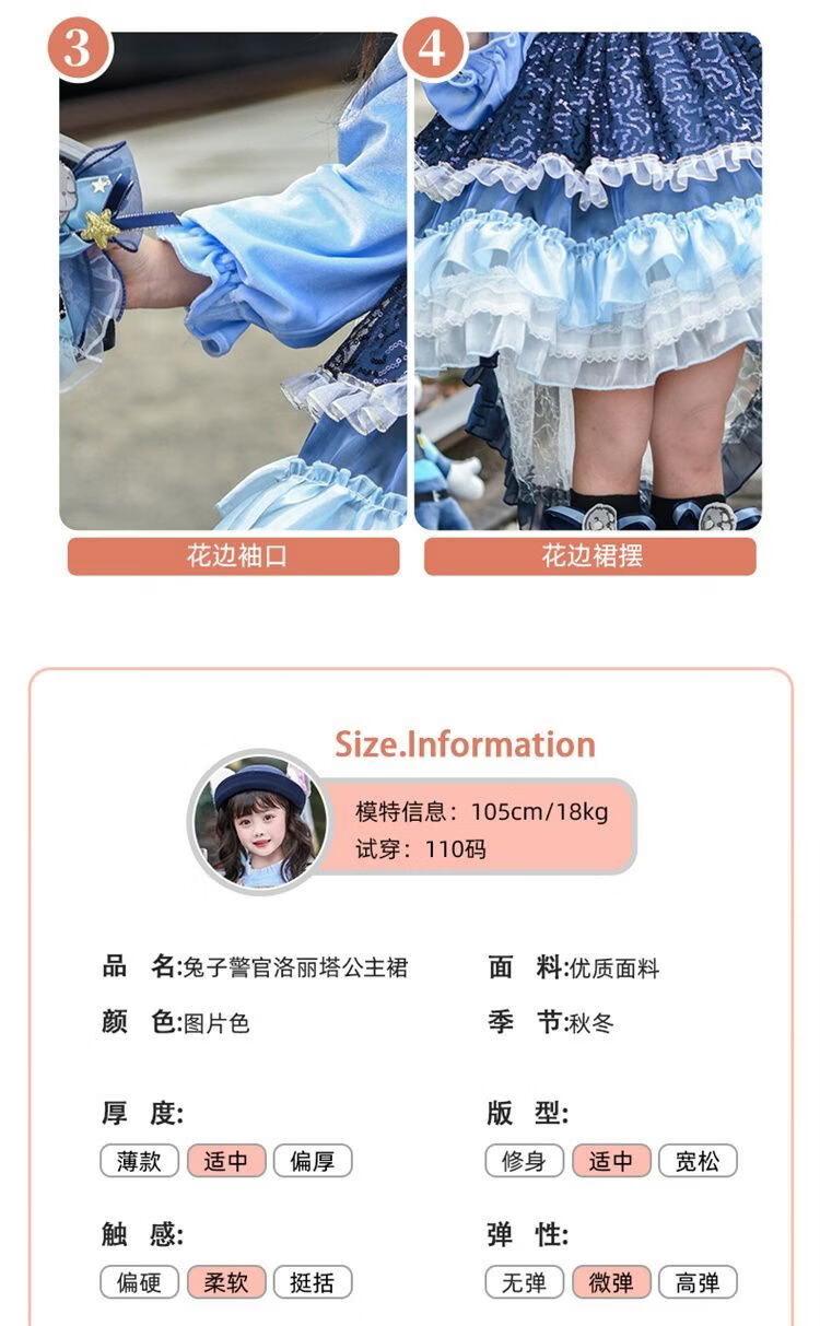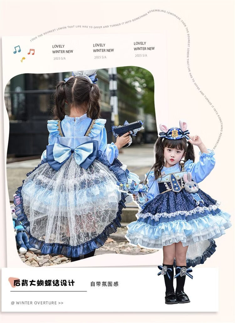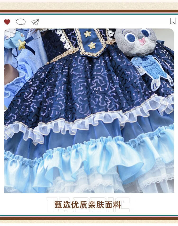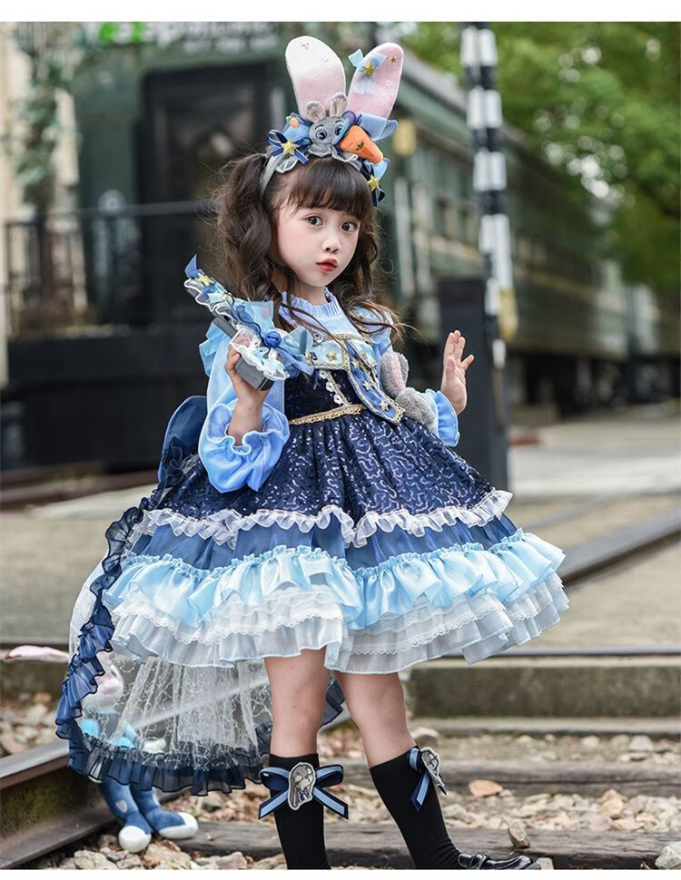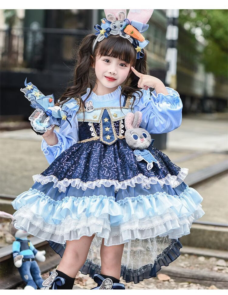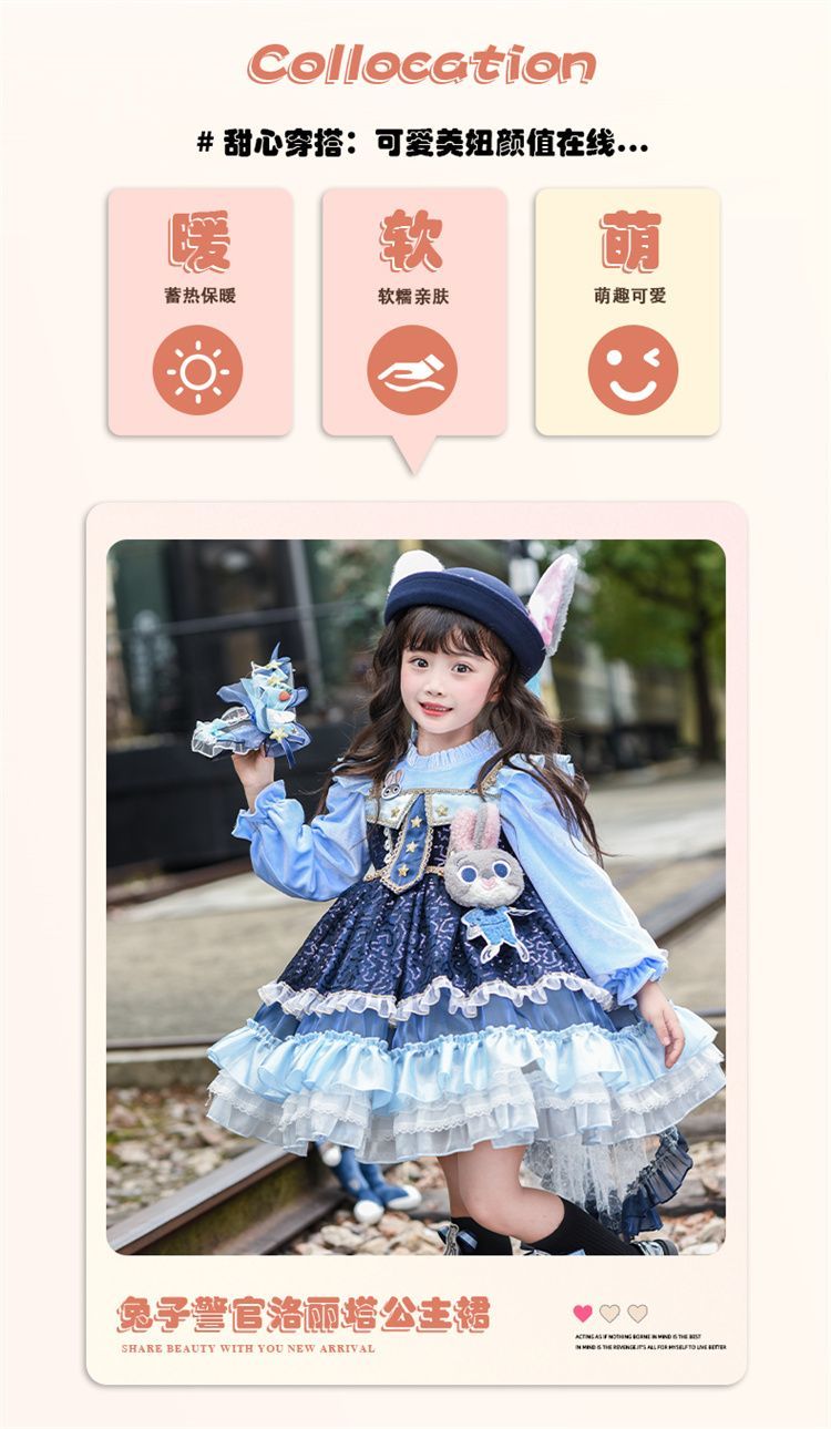 Disney (Disney) Girls Rabbit Police Officer Princess Dress 2026 New Children's First Birthday Dress Dress Fashionable Judy Rabbit Dress Skirt + Little Hat + Pistol + Socks Plush 120