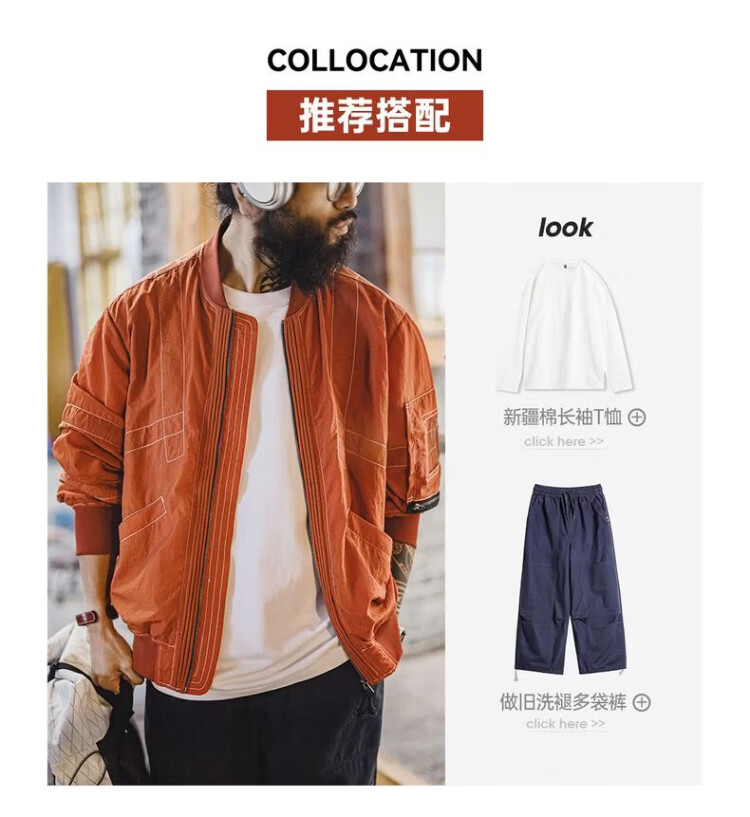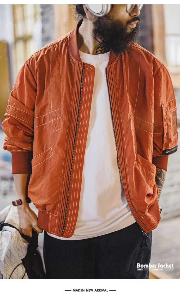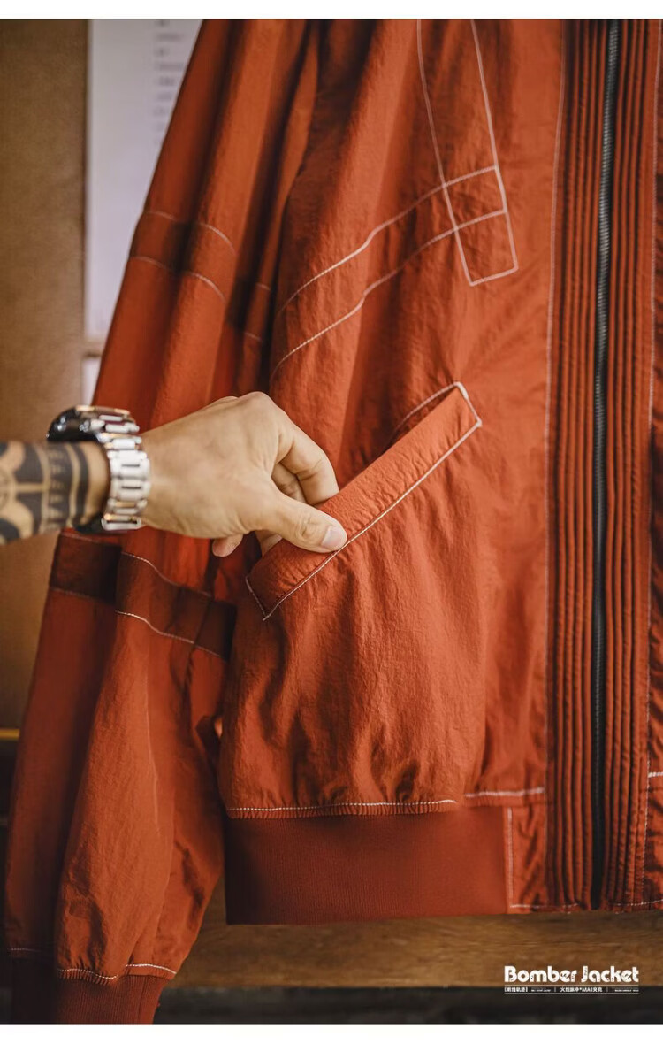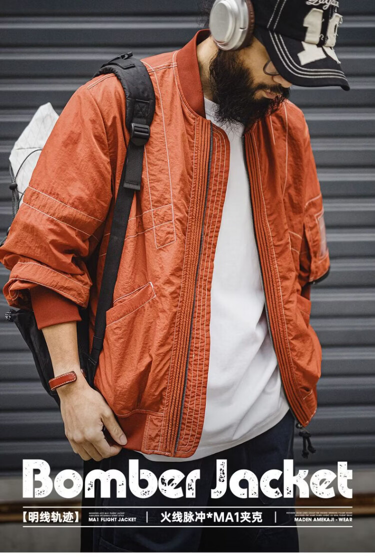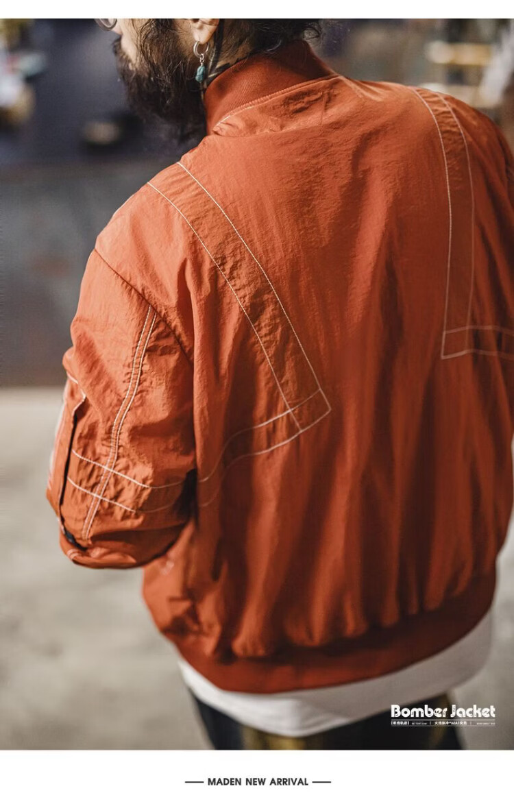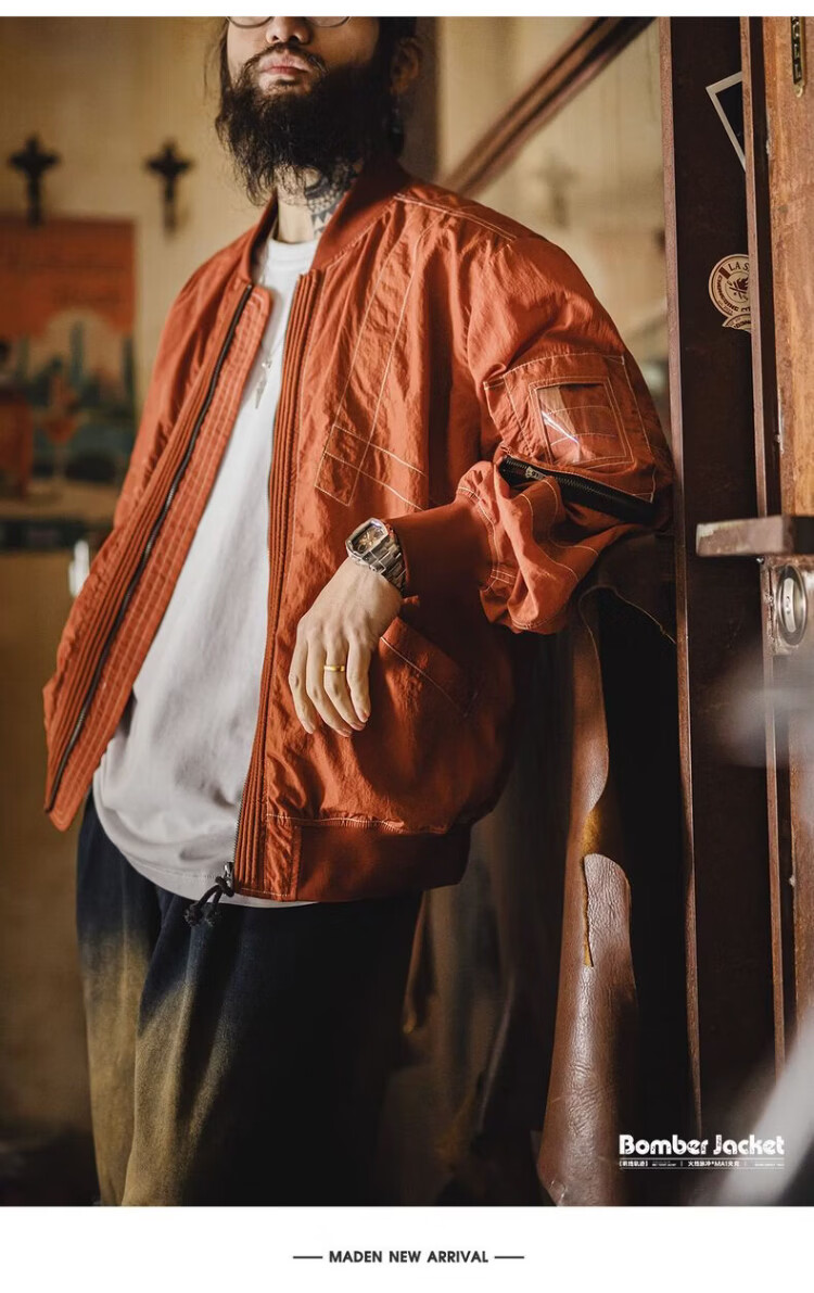 Madden Workwear Fire Pulse MA1 Jacket Bomber Bomber Pilot Jacket Thin Baseball Jacket Men's Spring Brick Red + Thunderbird Chapter S