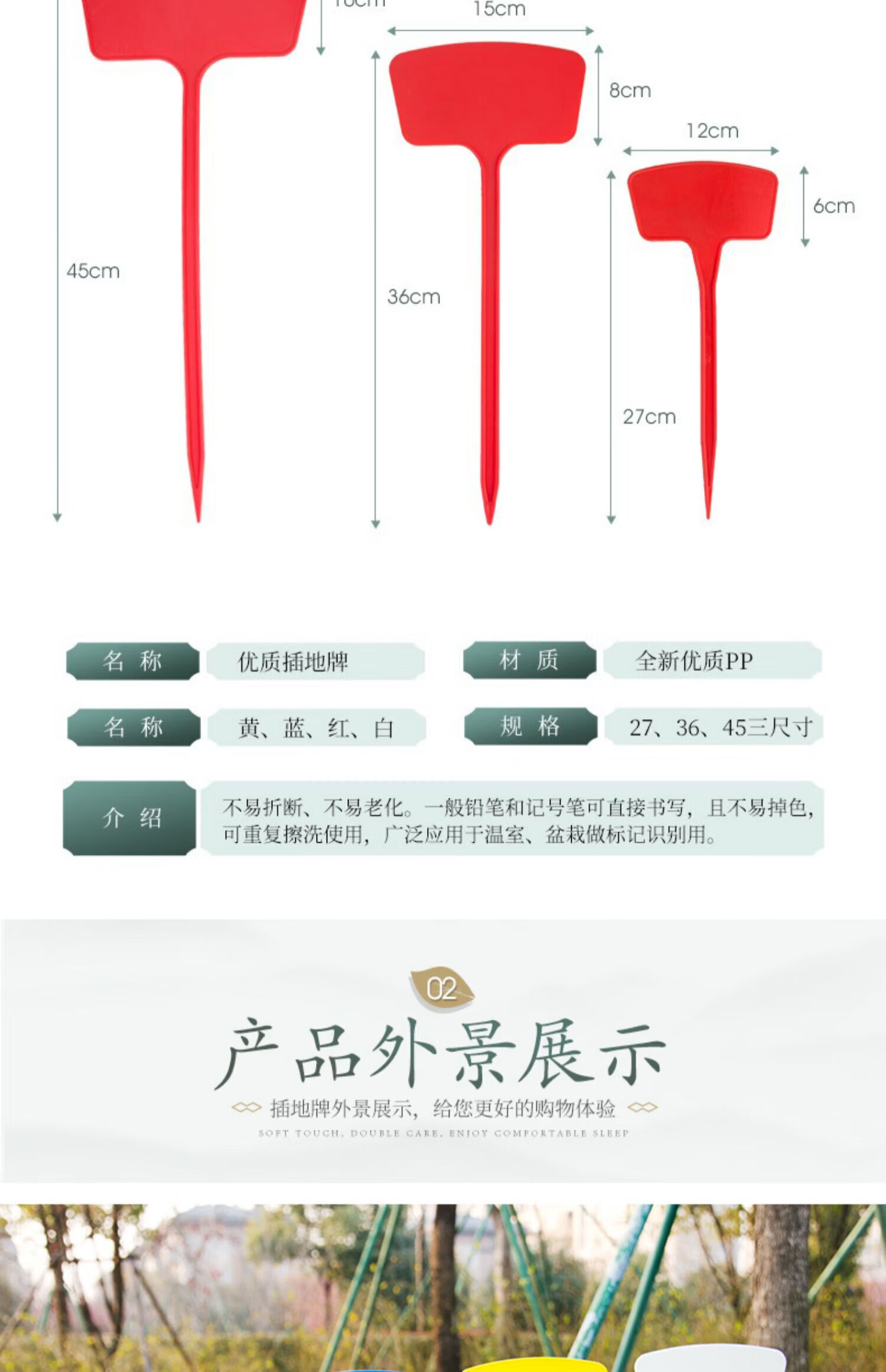 AEOJ Various Specifications Multi-Color Plastic Large Ground Sign Gardening Label Gardening Sign 30 Count 45cm Surface Ground Sign White