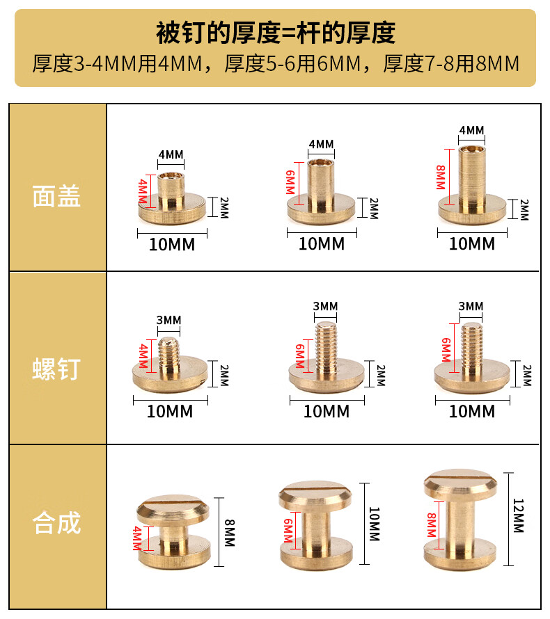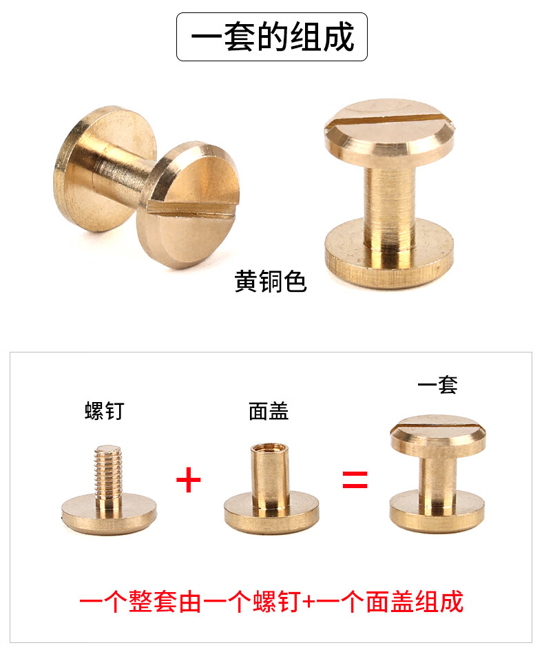 RSRDDY flat head brass screw rivets recipe book binding fixed sub-nails handmade belt luggage hardware buckles inner height 4MM-6 set