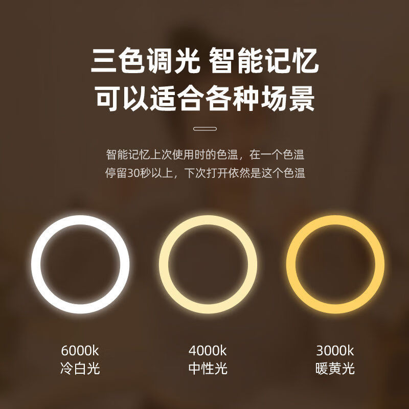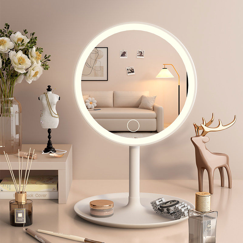 Cosmetic mirror with light, home LED mirror, student dormitory office, desktop desktop cosmetic mirror, portable, ultra-high screen, high-definition LED monochrome lamp bead model - round mirror