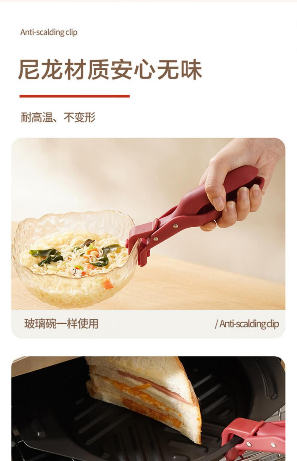 Anti-scalding clip for kitchen, anti-scalding bowl clip, microwave silicone vegetable tongs, steaming pot, Swiss anti-scalding bowl clip - Rouge Red