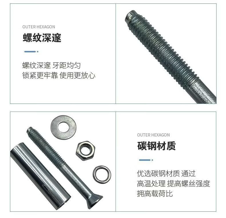CLCEY pure national standard expansion screws extra thick 8mm10mm galvanized external expansion manufacturer whole box wholesale pure national standard support testing - invoicing genuine national standard M6x60 1000 pieces per box