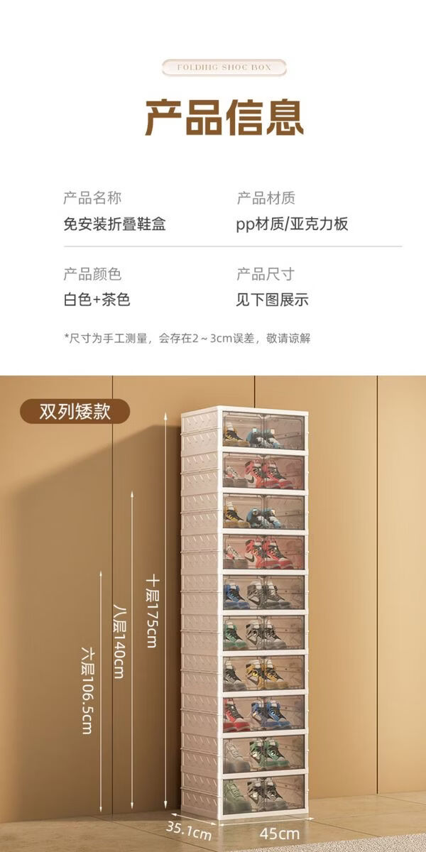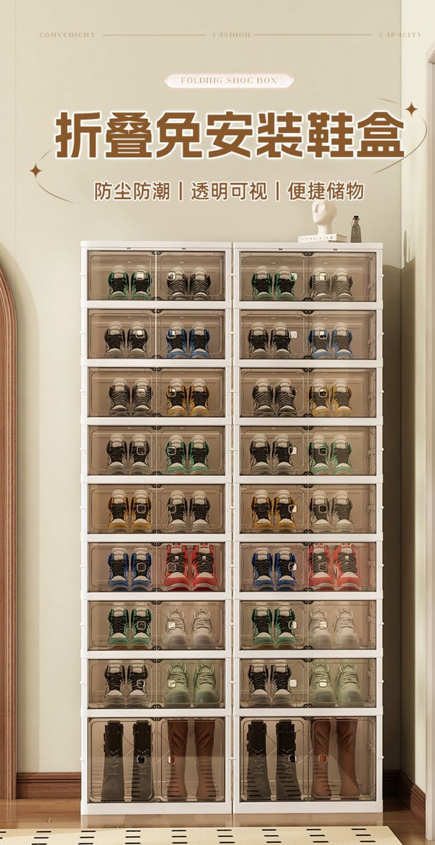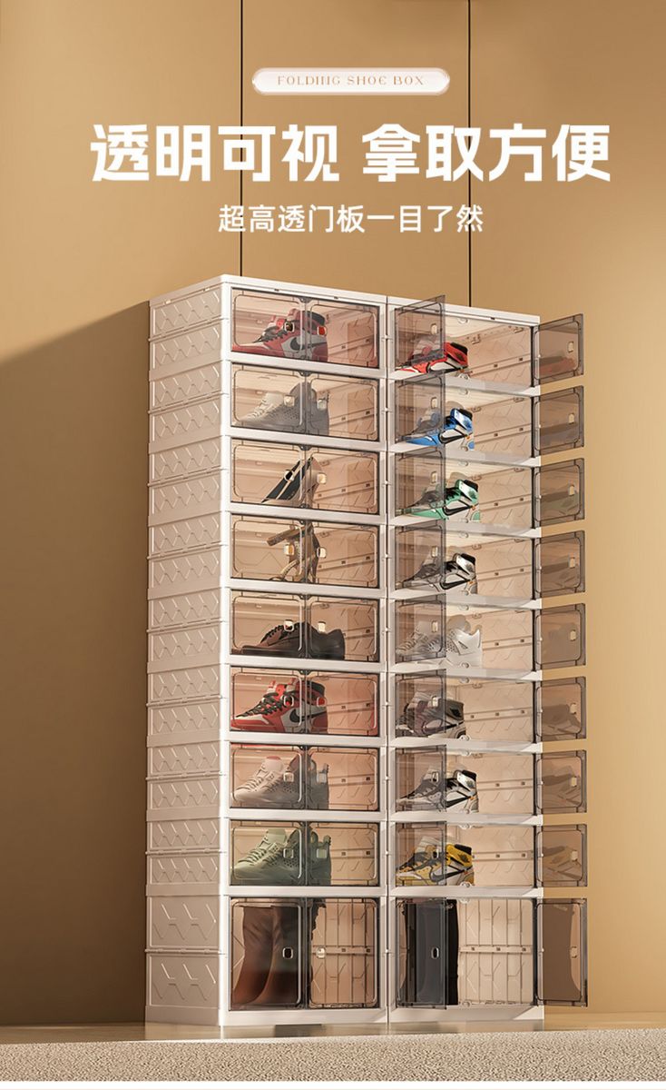 Yusenyi shoe box storage box transparent installation-free shoe cabinet all-in-one home door folding shoe rack for shoe storage artifact six-layer shoe cabinet (six short) 44x35CM 44x35x17cm