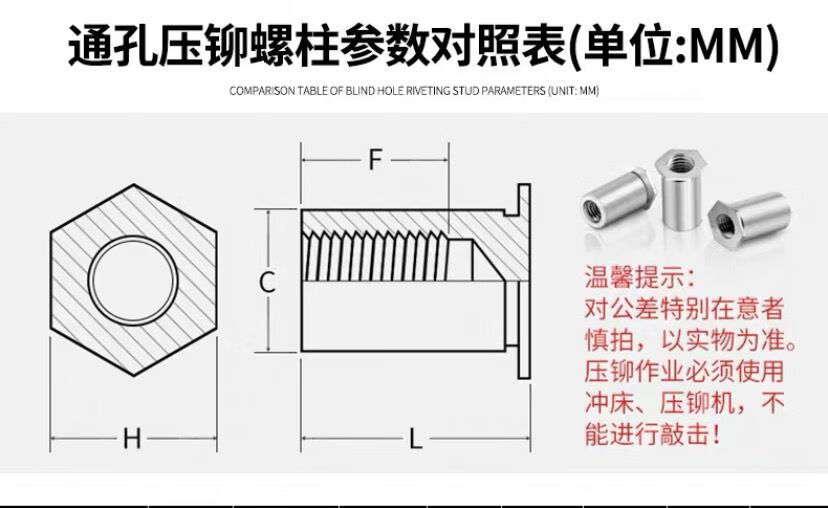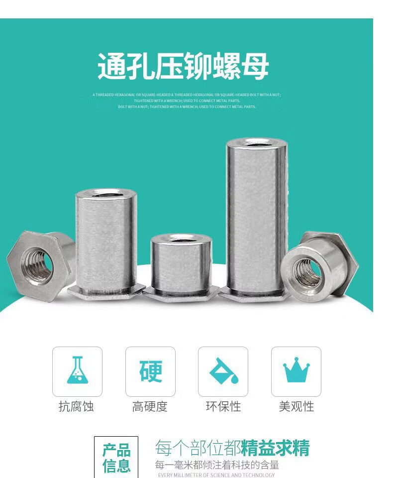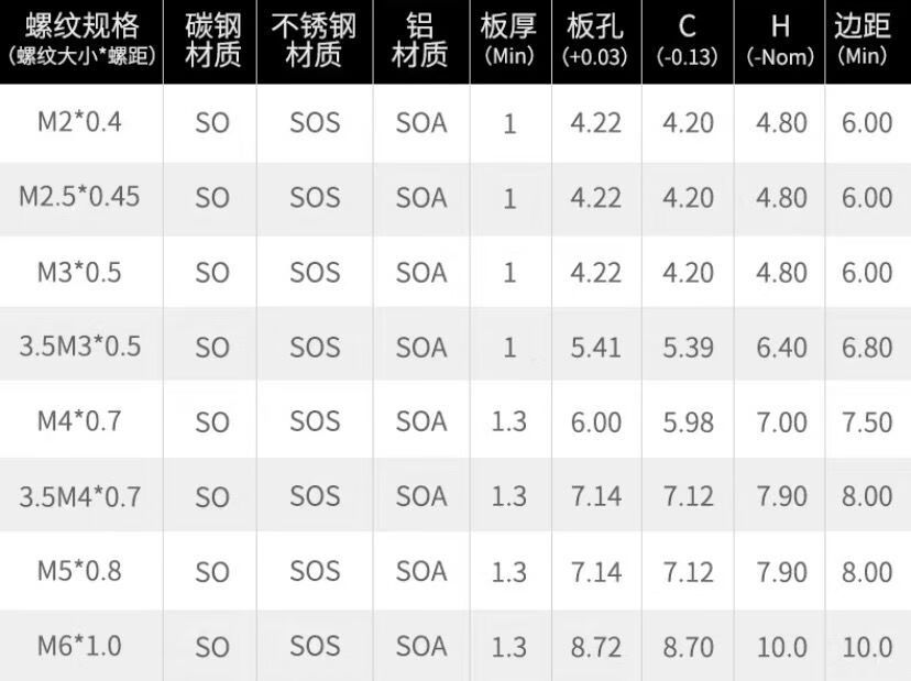 Sailotou 04 through hole pressure riveting stud SOS5MM4 pressure riveting column M2MM4M5M6 through hole stud nut stainless steel M2* outer diameter 4 points 2 minus 00 pcs