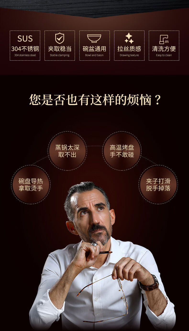 Fantasy German 04 stainless steel anti-scalding bowl clamp, anti-slip household kitchen artifact, steamer, plate tool, all 04 steel anti-scalding clip
