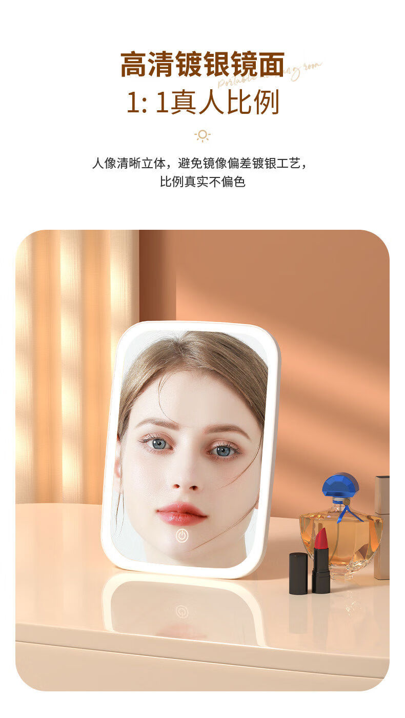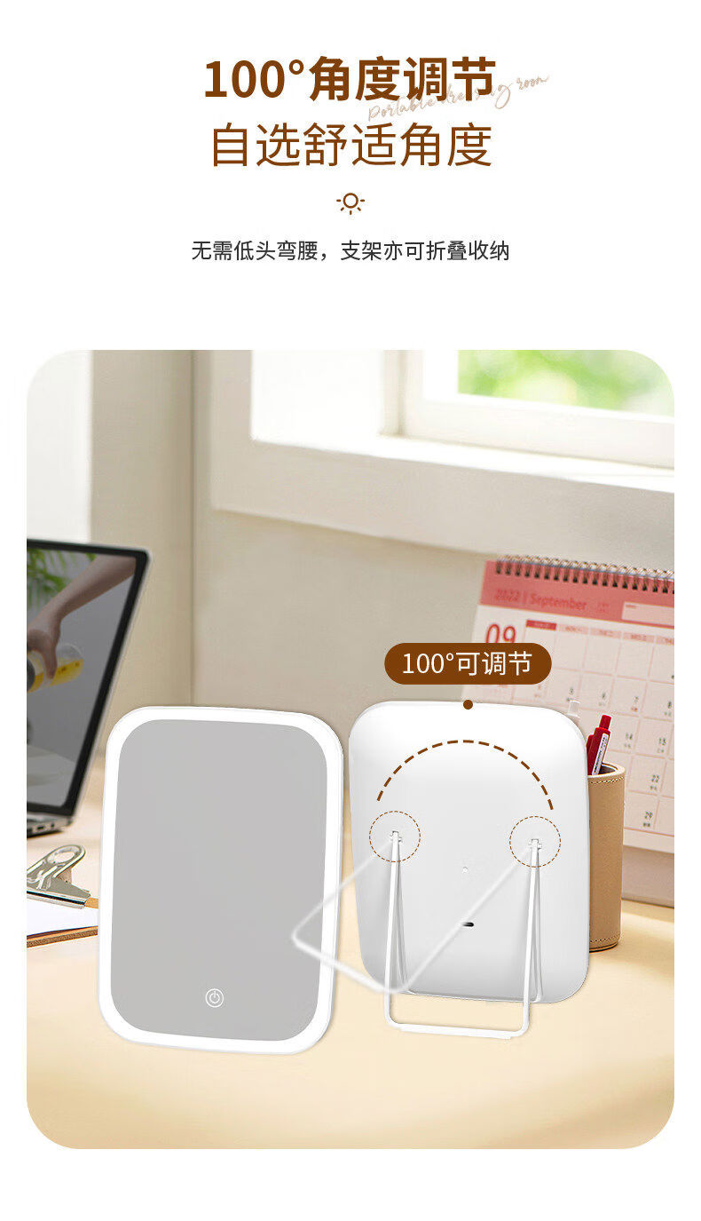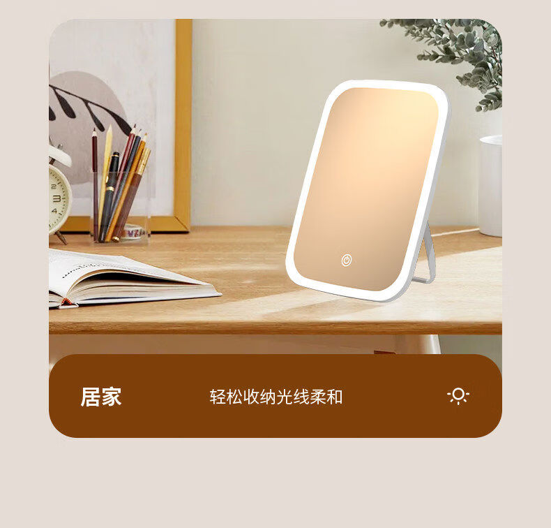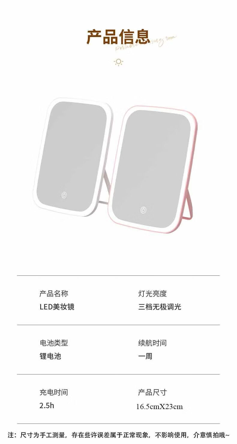 Dameishaji LED makeup mirror with light fill-in female folding Internet celebrity student ins style small mirror dormitory desktop portable dressing mirror 15-inch three-color stepless dimming charging model comes with charging cable