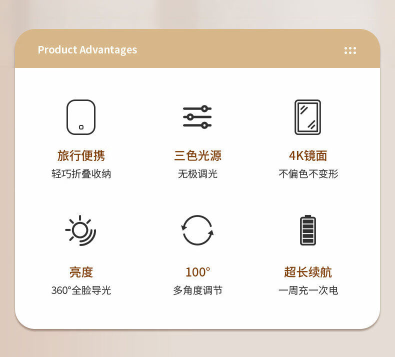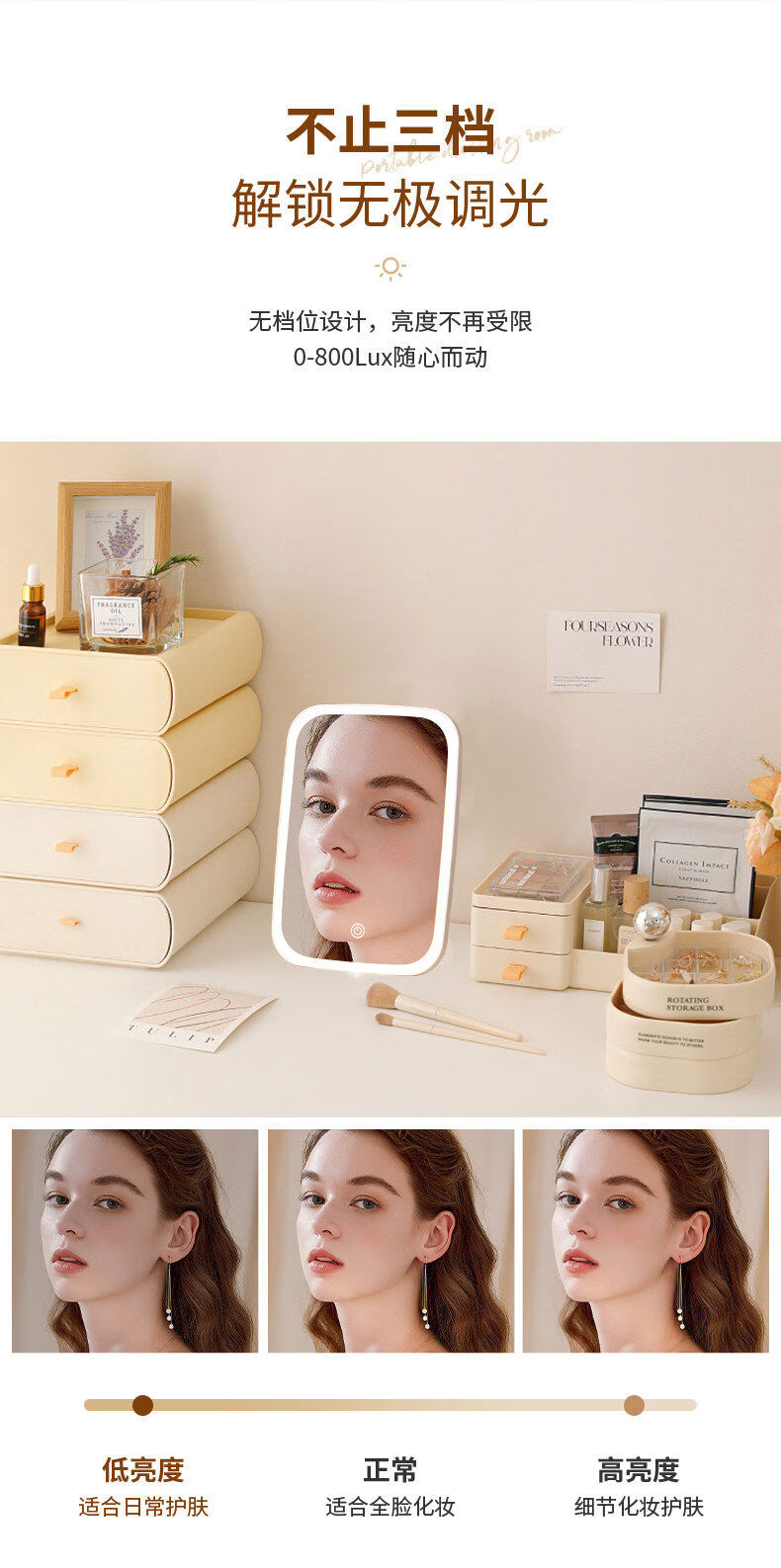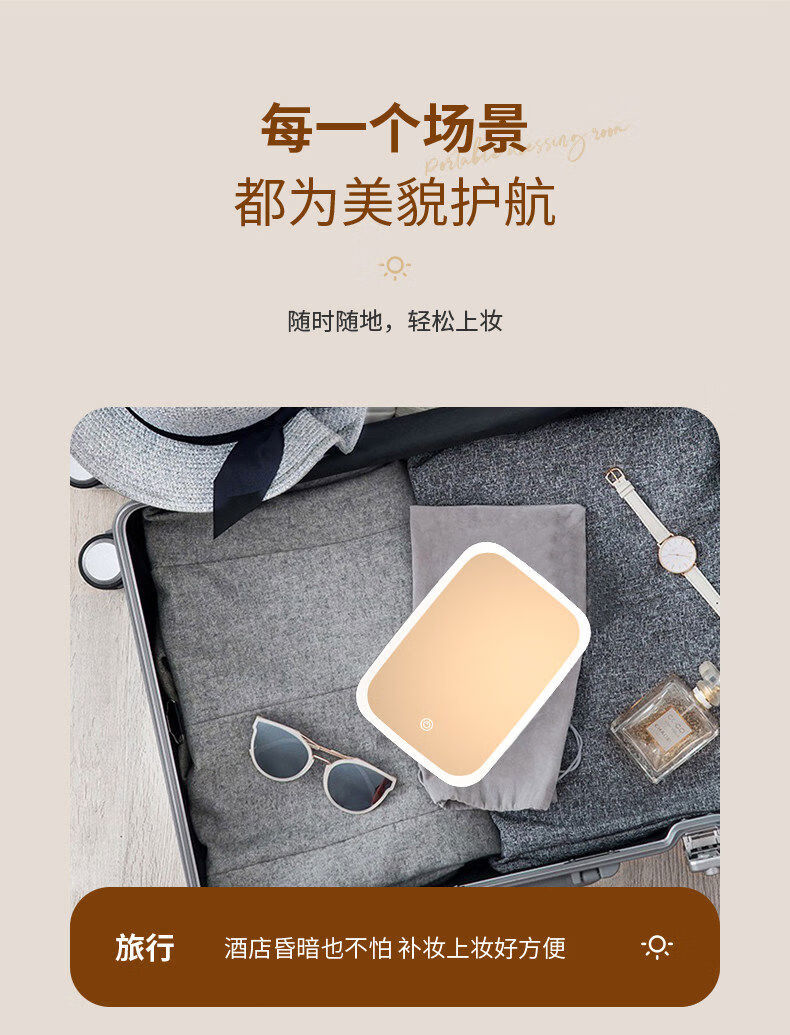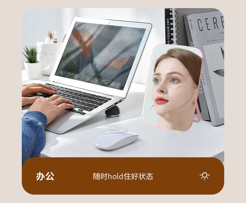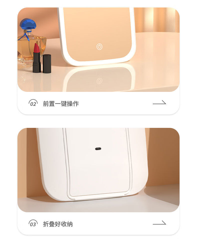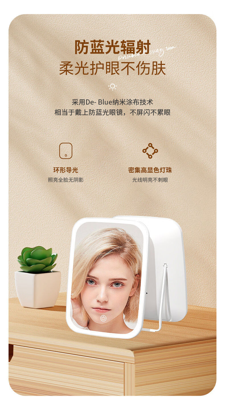 Dameishaji LED makeup mirror with light fill-in female folding Internet celebrity student ins style small mirror dormitory desktop portable dressing mirror 15-inch three-color stepless dimming charging model comes with charging cable