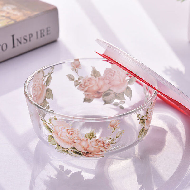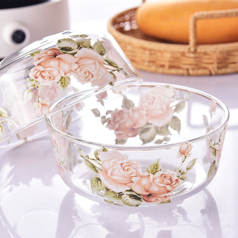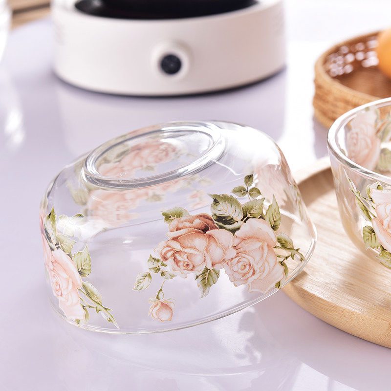 Fantasy Korean Golden Rose household heat-resistant glass bowl instant noodle bowl fruit salad bowl soup bowl rice bowl rice bowl Golden Rose glass bowl 2 pieces without lid