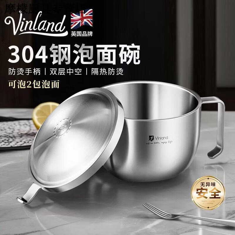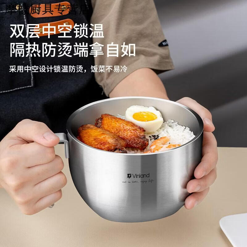 Yusenyi Japan Seiko 304 stainless steel student dormitory rice bowl with lid for soaking instant noodles in a large bowl 304 steel lid bowl (free tableware)