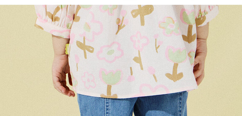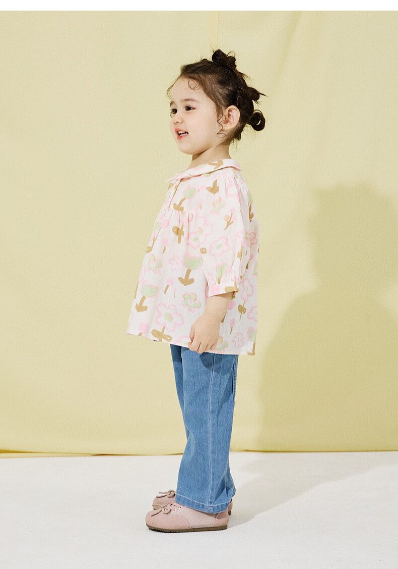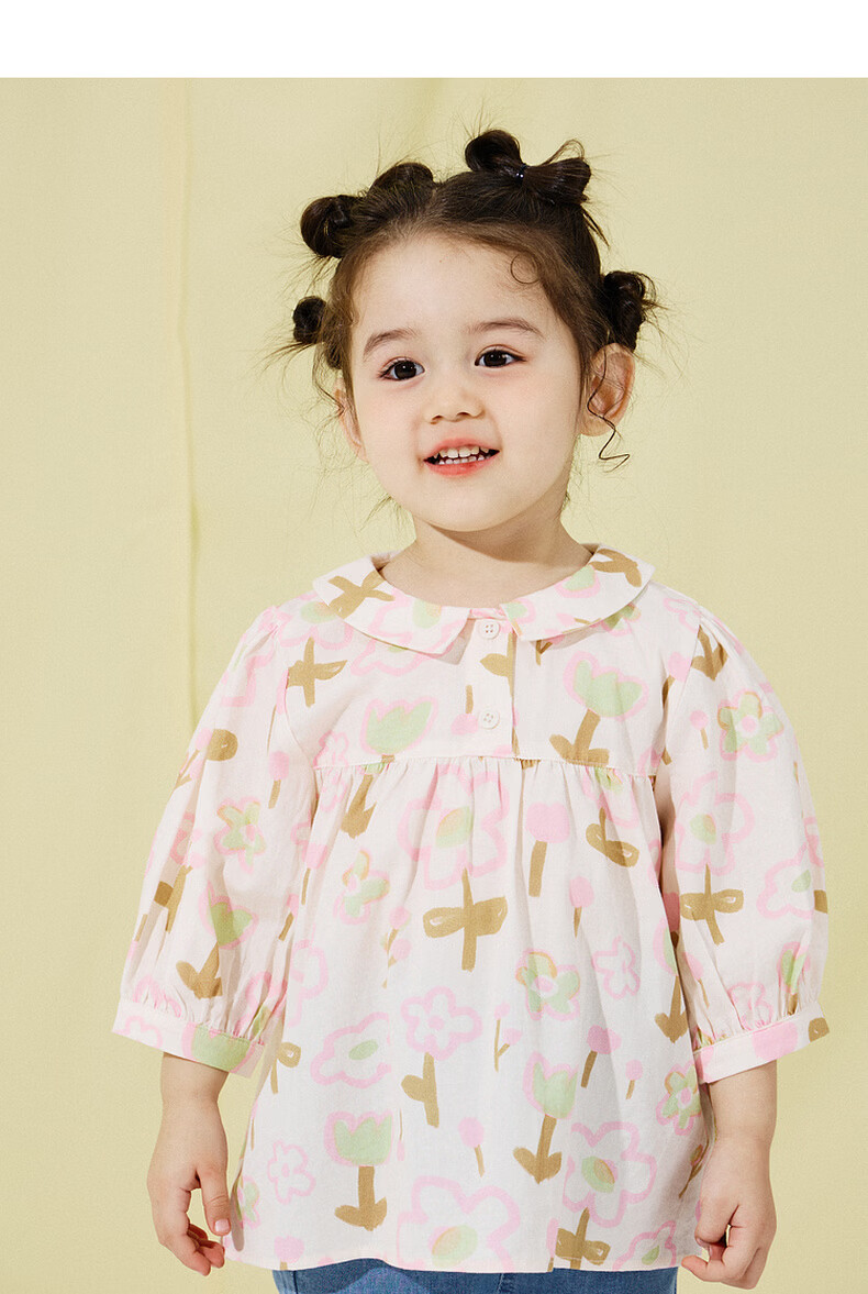 Papa new product crawling spring baby shirt girl baby pure cotton puff sleeve top sweet and playful fashion orange pink 110