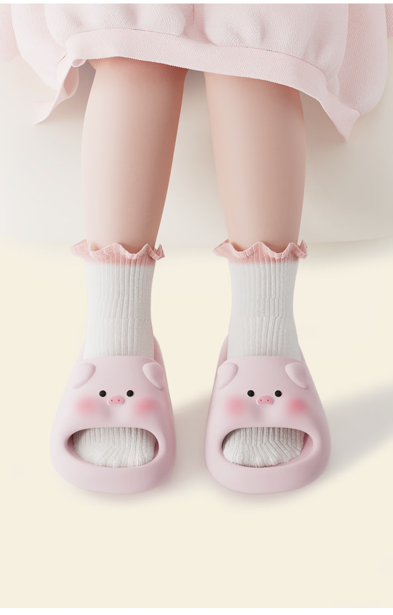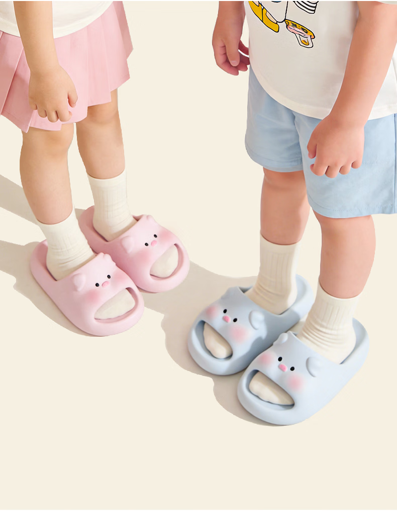 Babycrayon cute little pig children's slippers for boys and girls summer 2026 new home indoor non-slip eva parent-child slippers yellow 19 0mm suitable for sizes 29-30