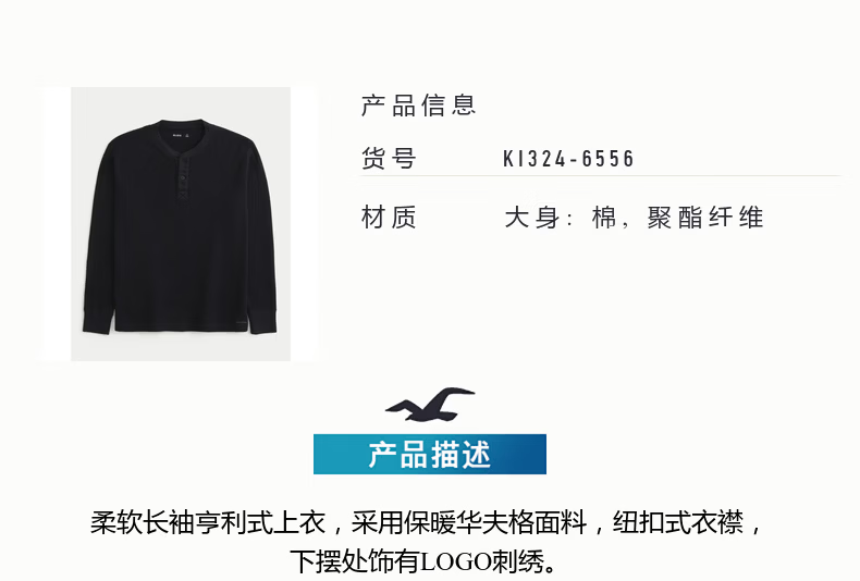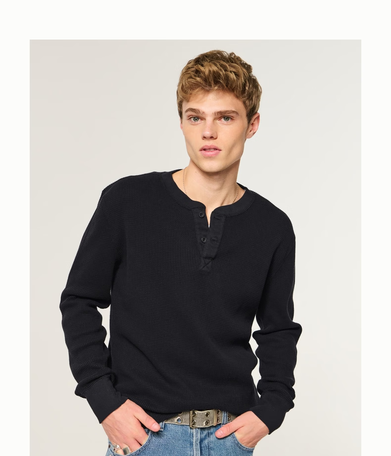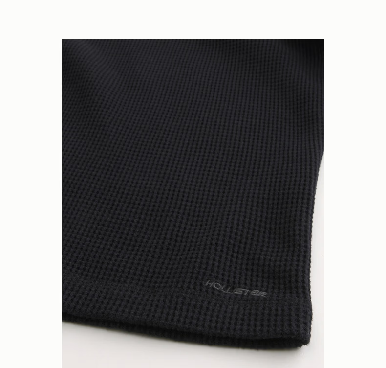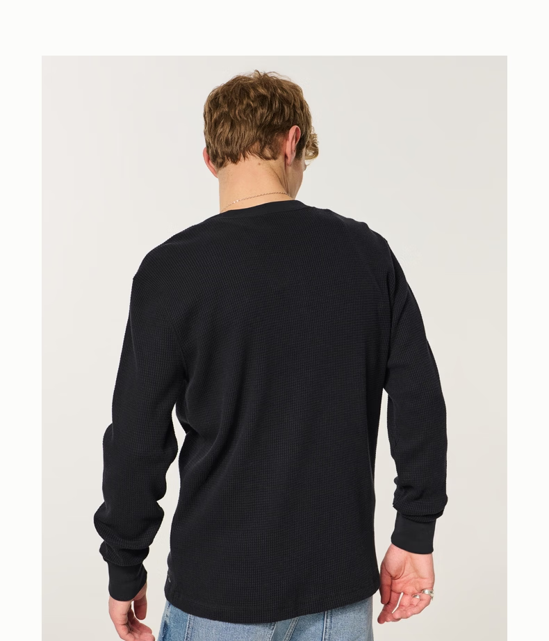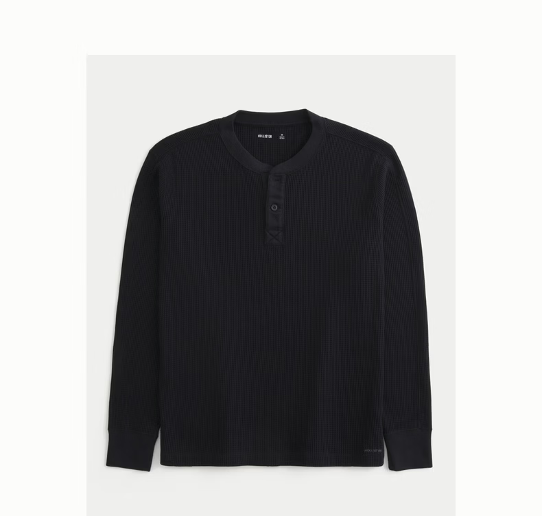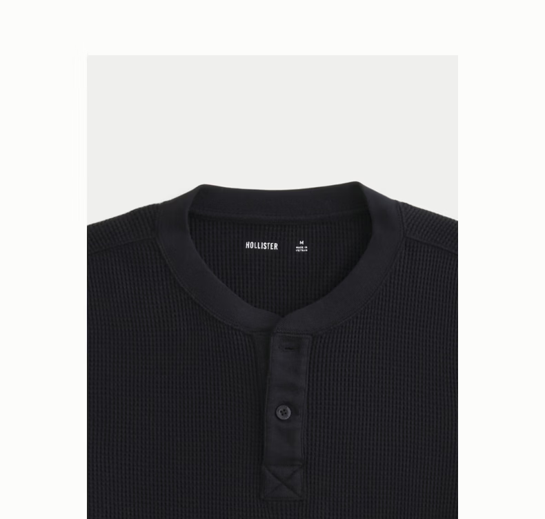 HOLLISTER waffle classic LOGO Henry collar casual long-sleeved T-shirt 26 spring and summer men's 324-6556 black L (180/108A)