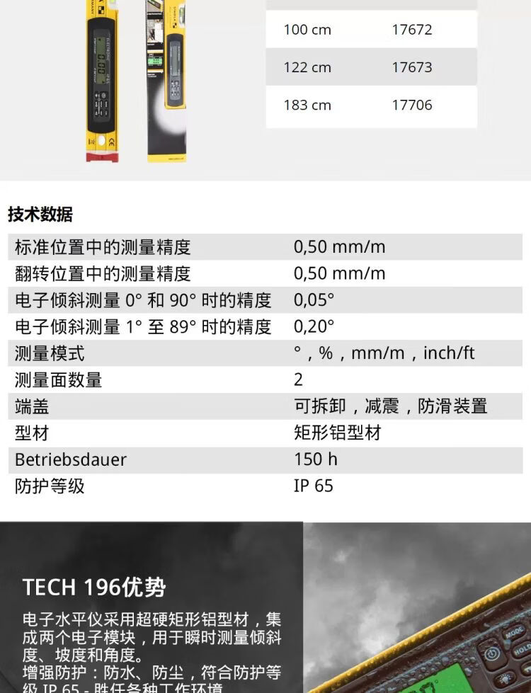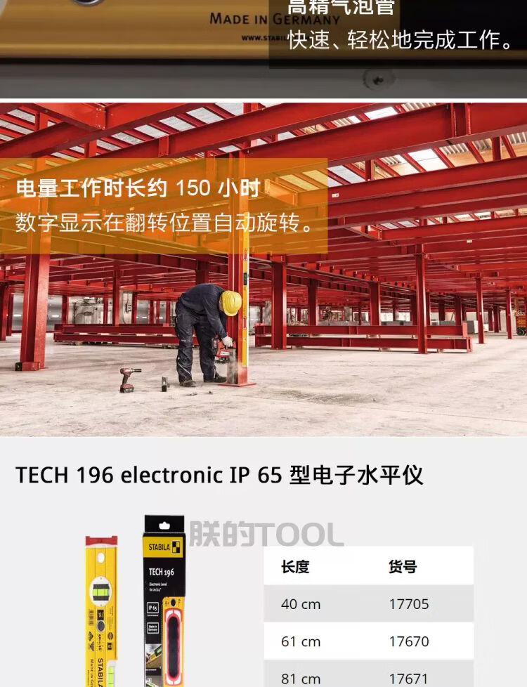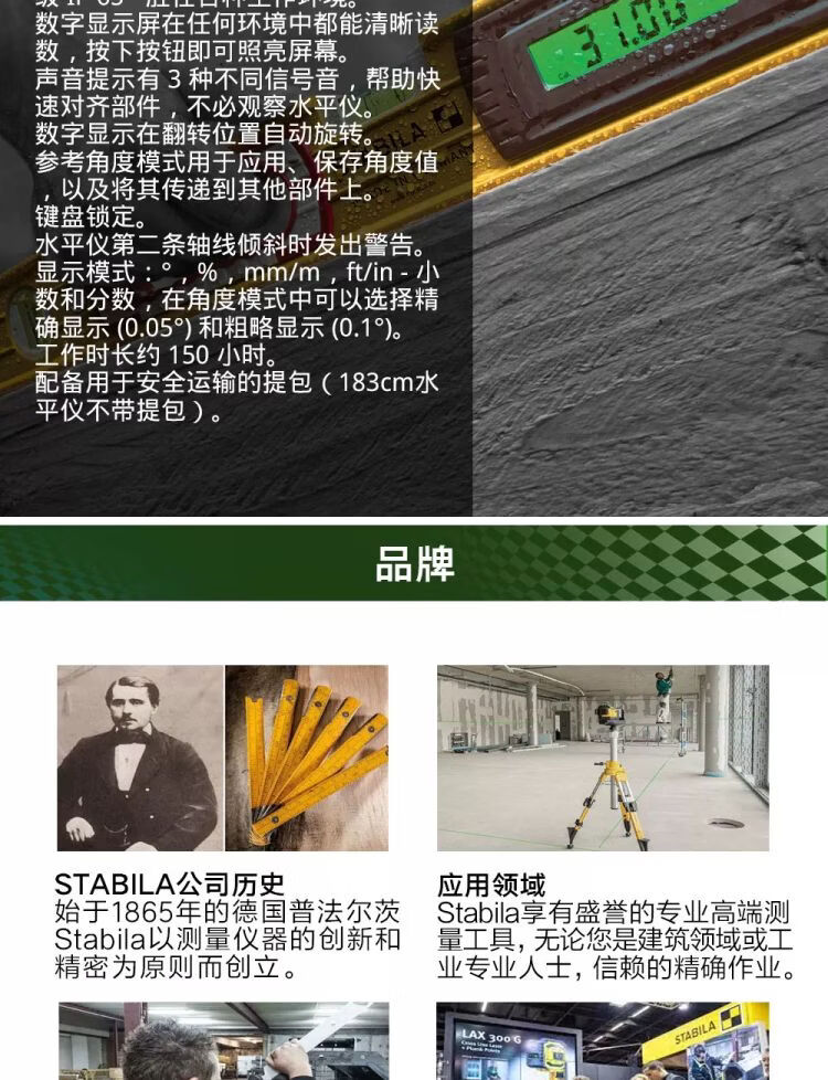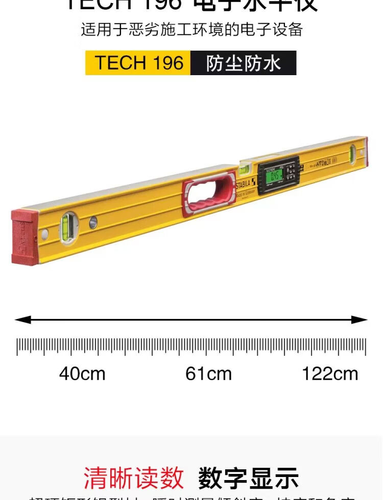 German digital display level STABILA electronic ruler 61cm to 183cm multi-size high precision length 183cm - with strong magnet