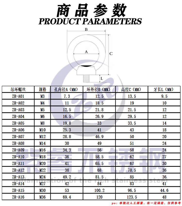 He Jiagong stainless steel screw 316 authentic 304 316 stainless steel eye screw eye bolt ring M12 (316 material)