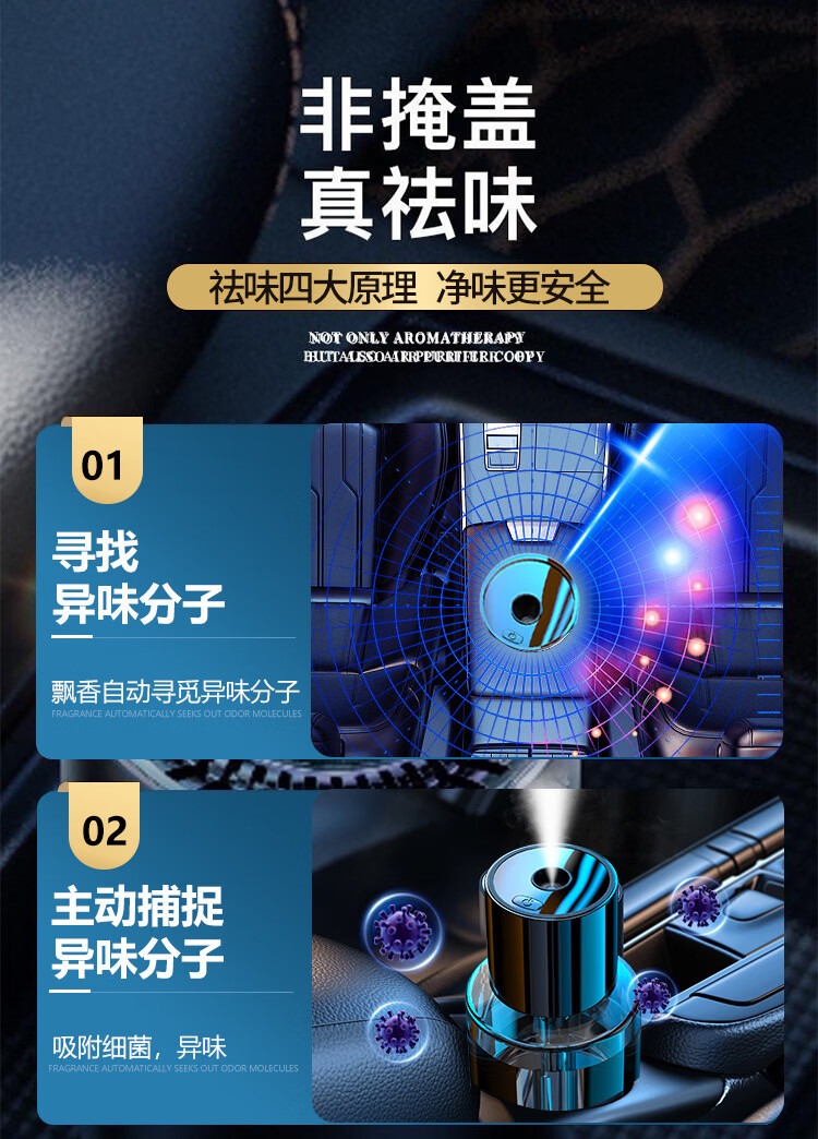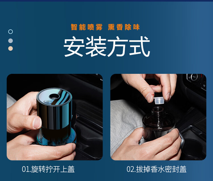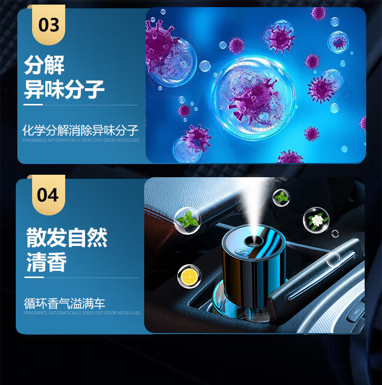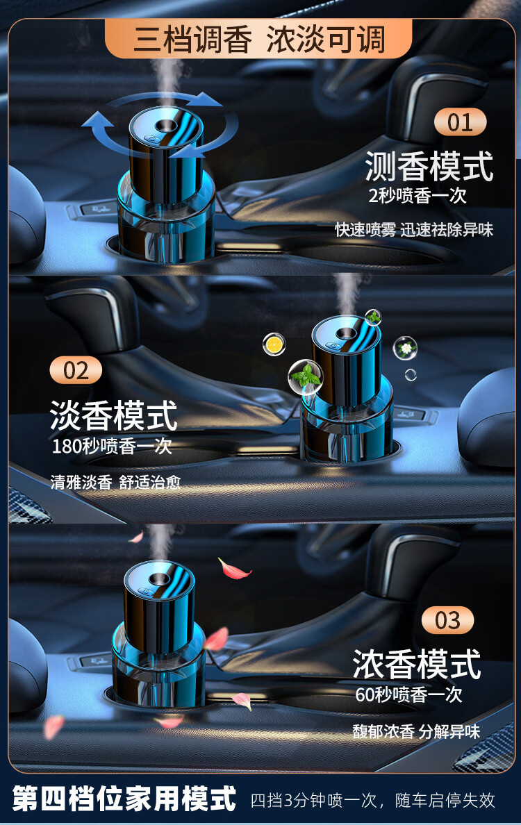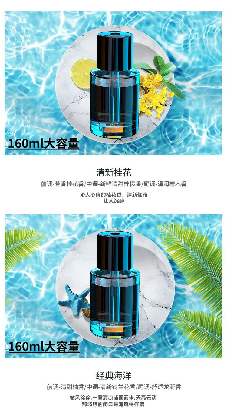 Shantou Lincun Car Aromatherapy Car Aromatherapy Car Aromatherapy Car Ornaments Light Fragrance Smart Humidifier Rechargeable with Car Start and Stop (Ocean Fragrance) 1g