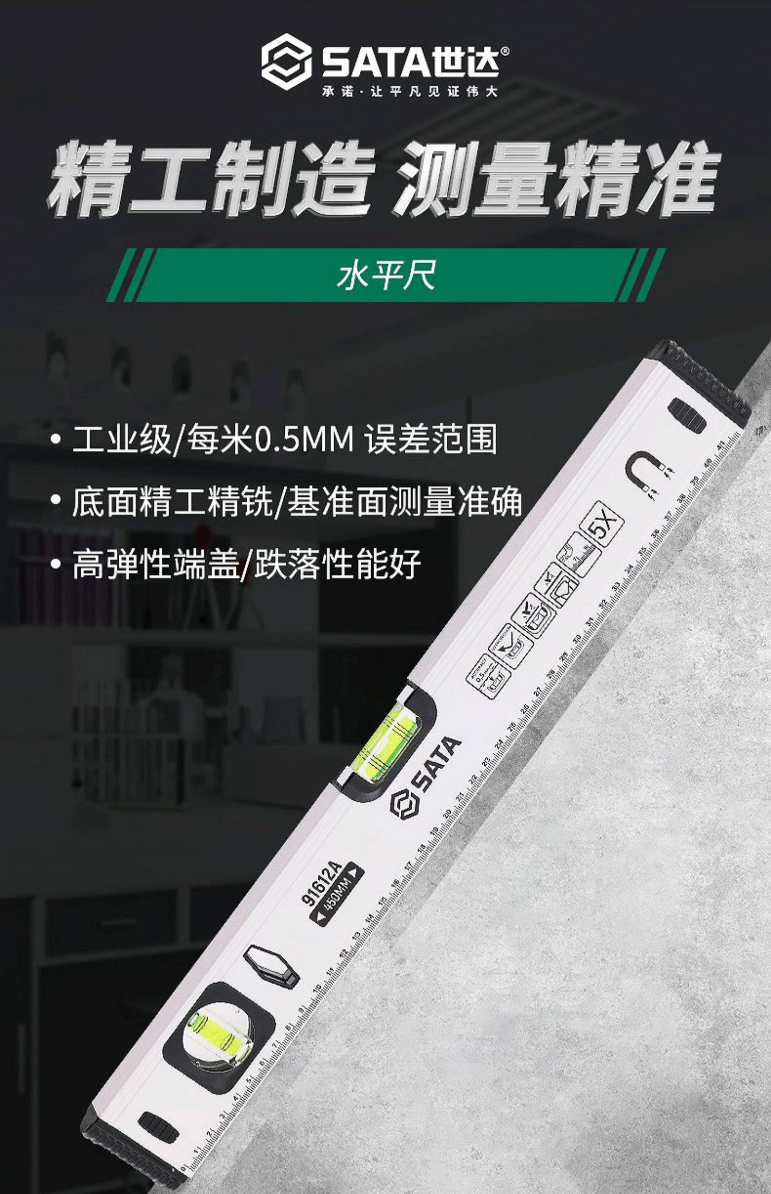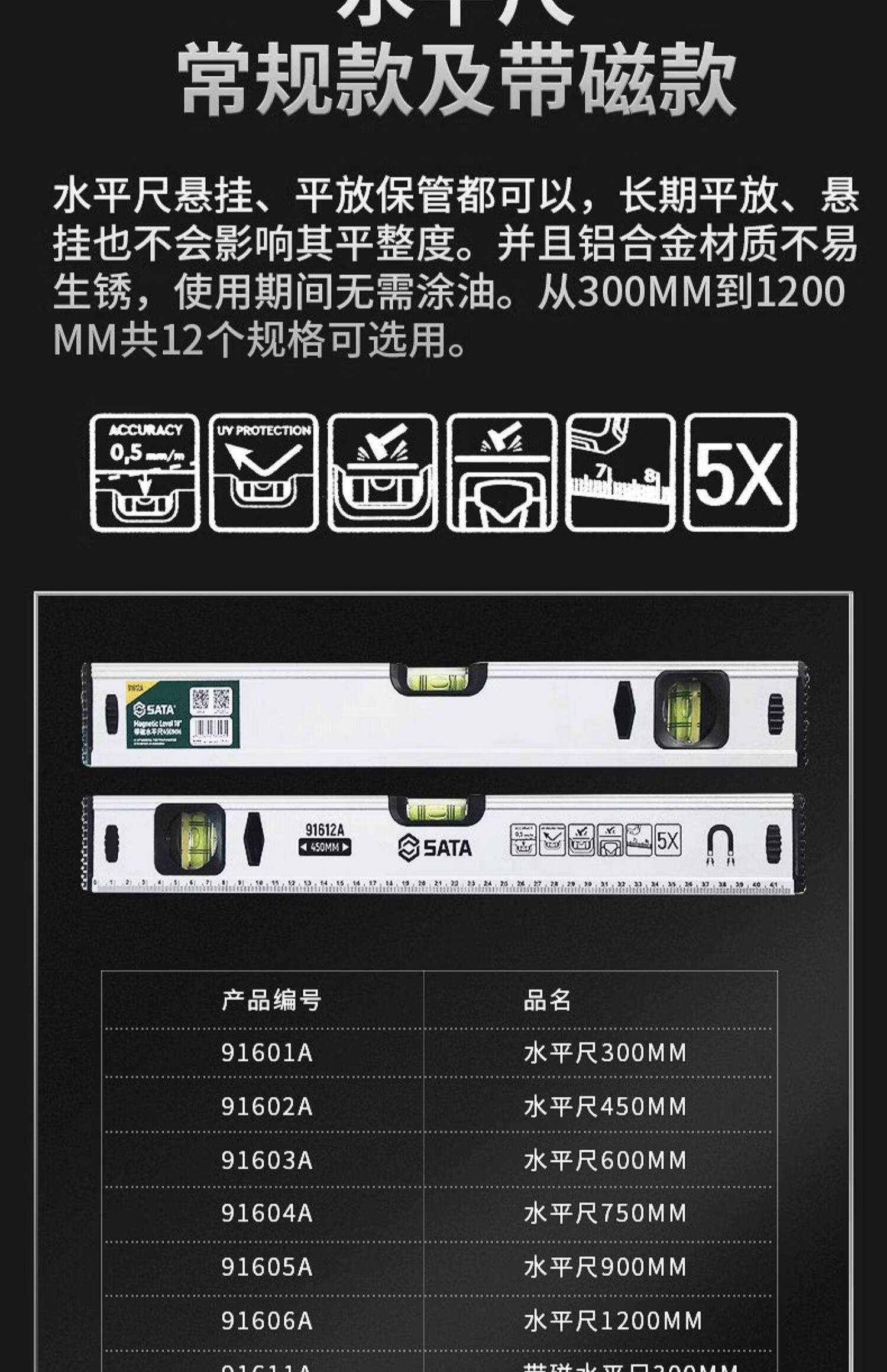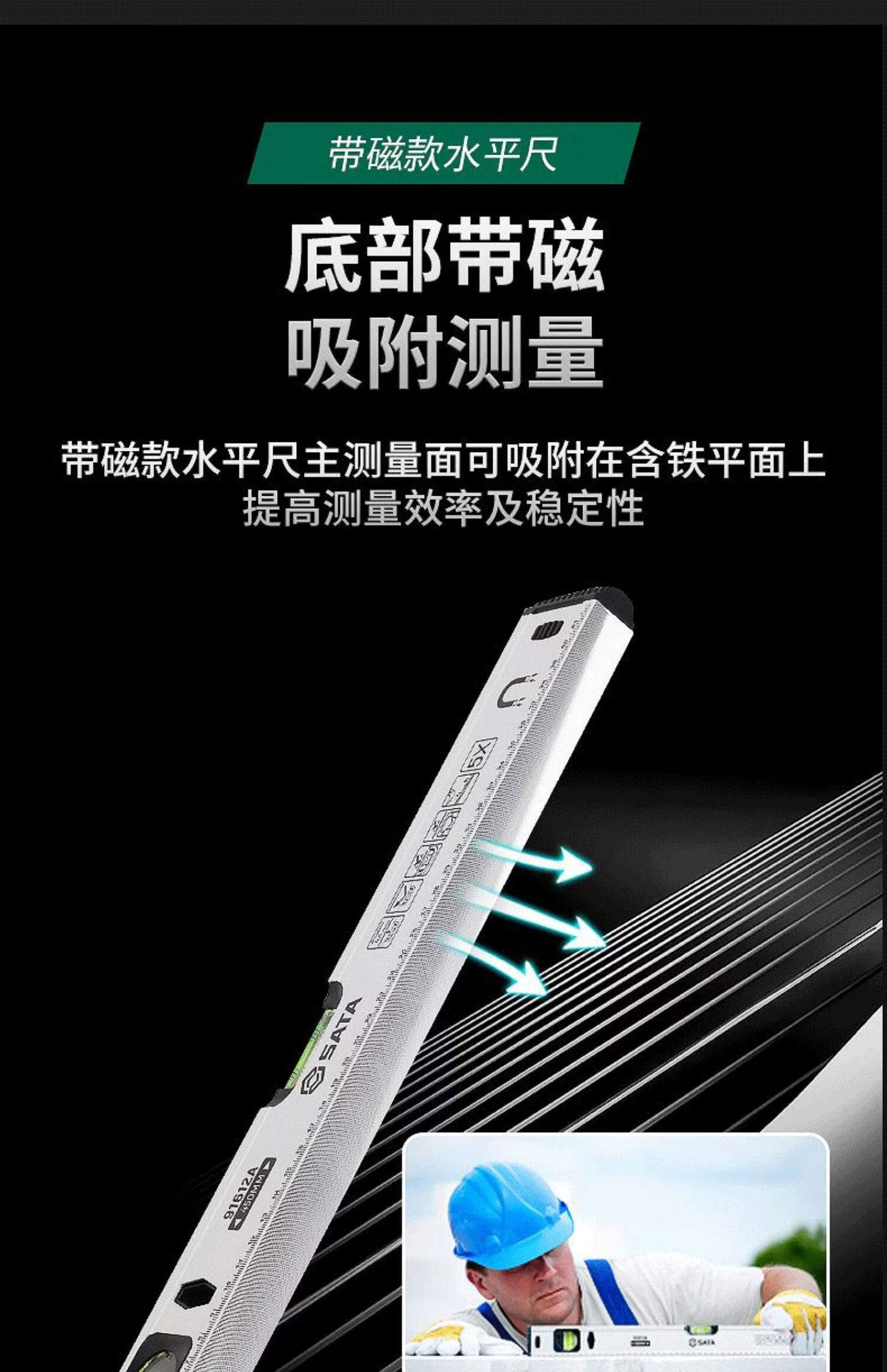 SATA level high-precision small level measuring ruler with magnetic vertical measuring ruler balance ruler 91606A/1200MM/48