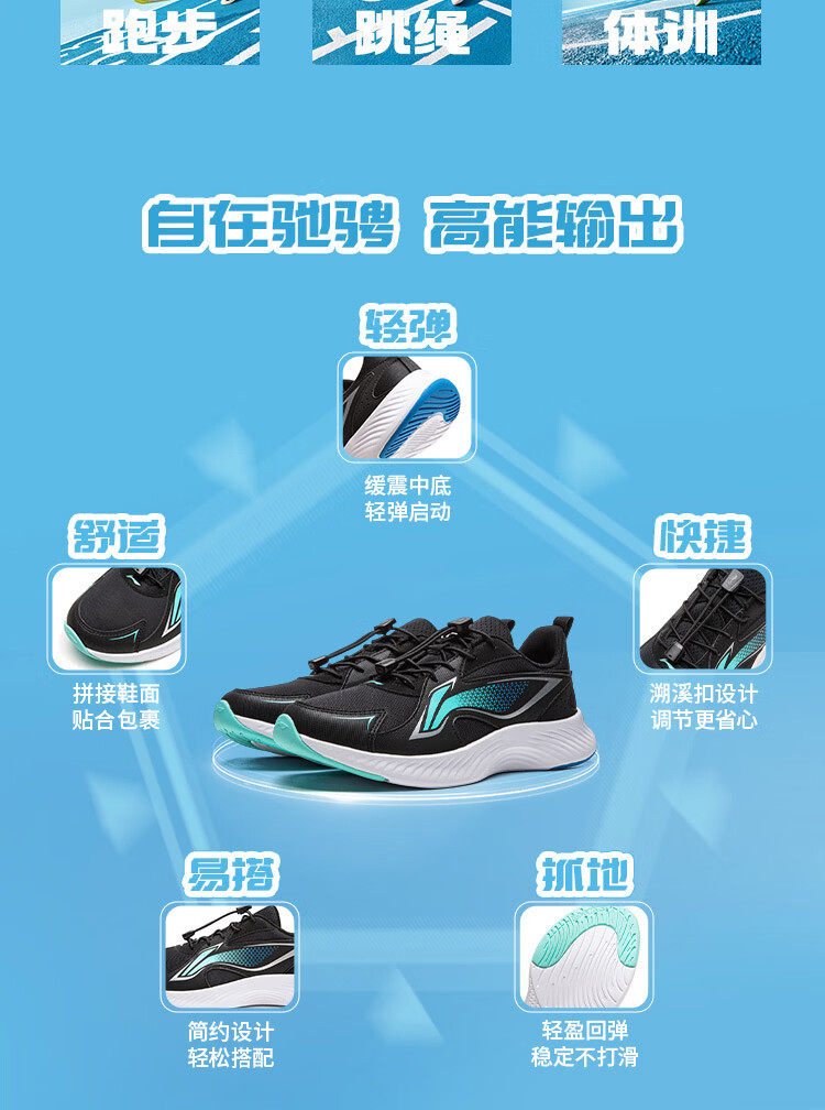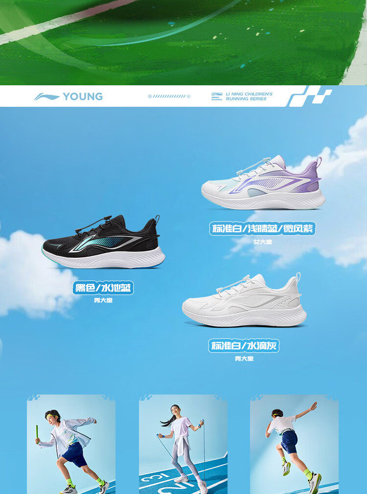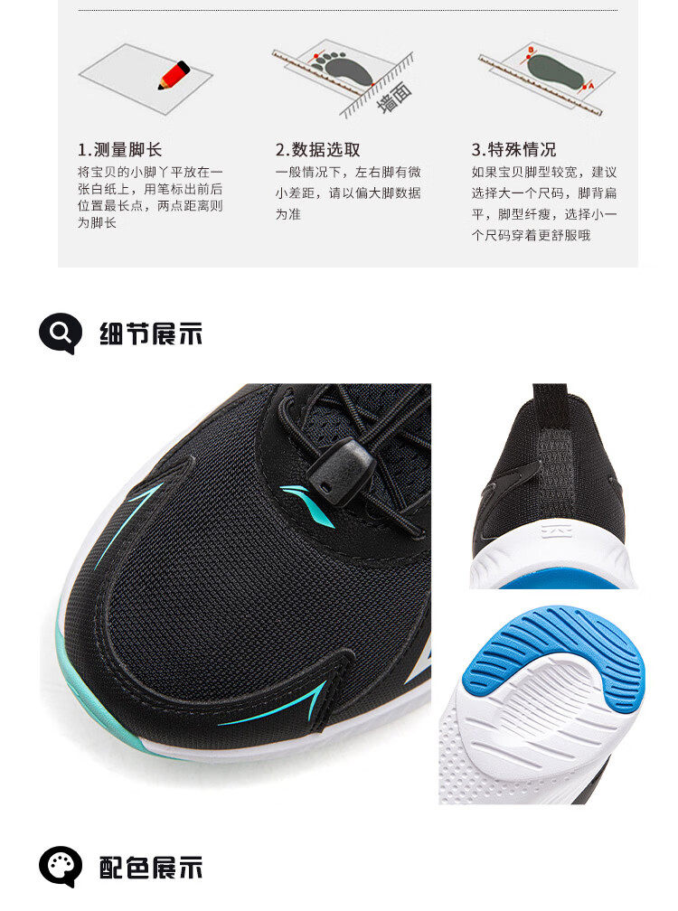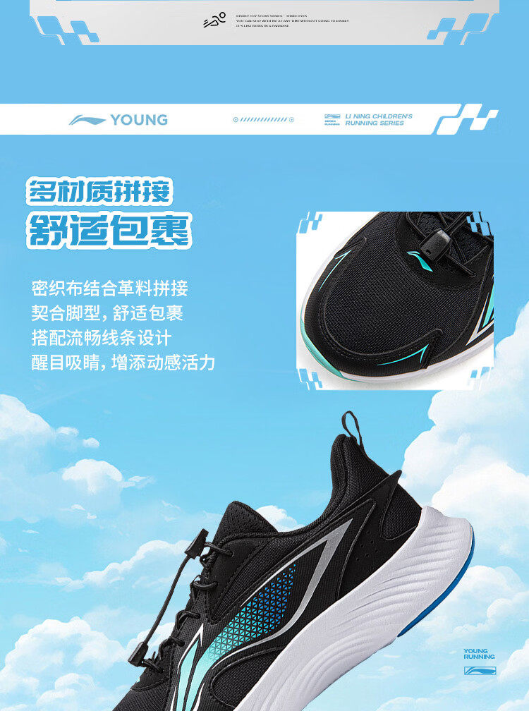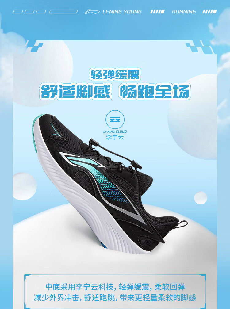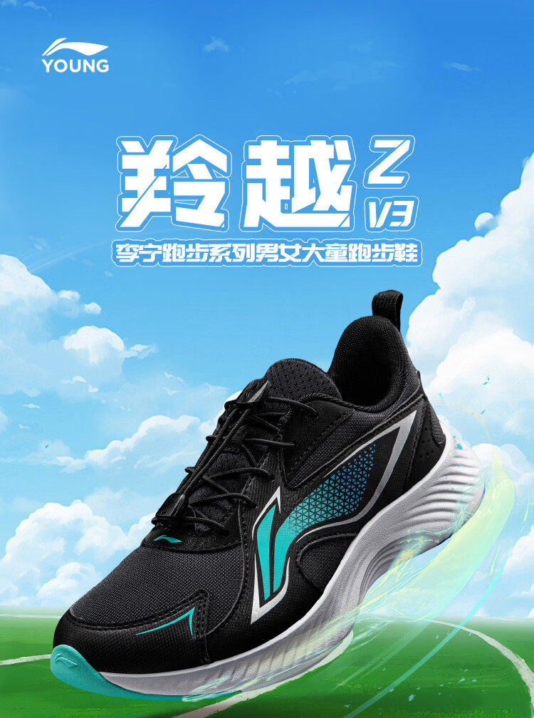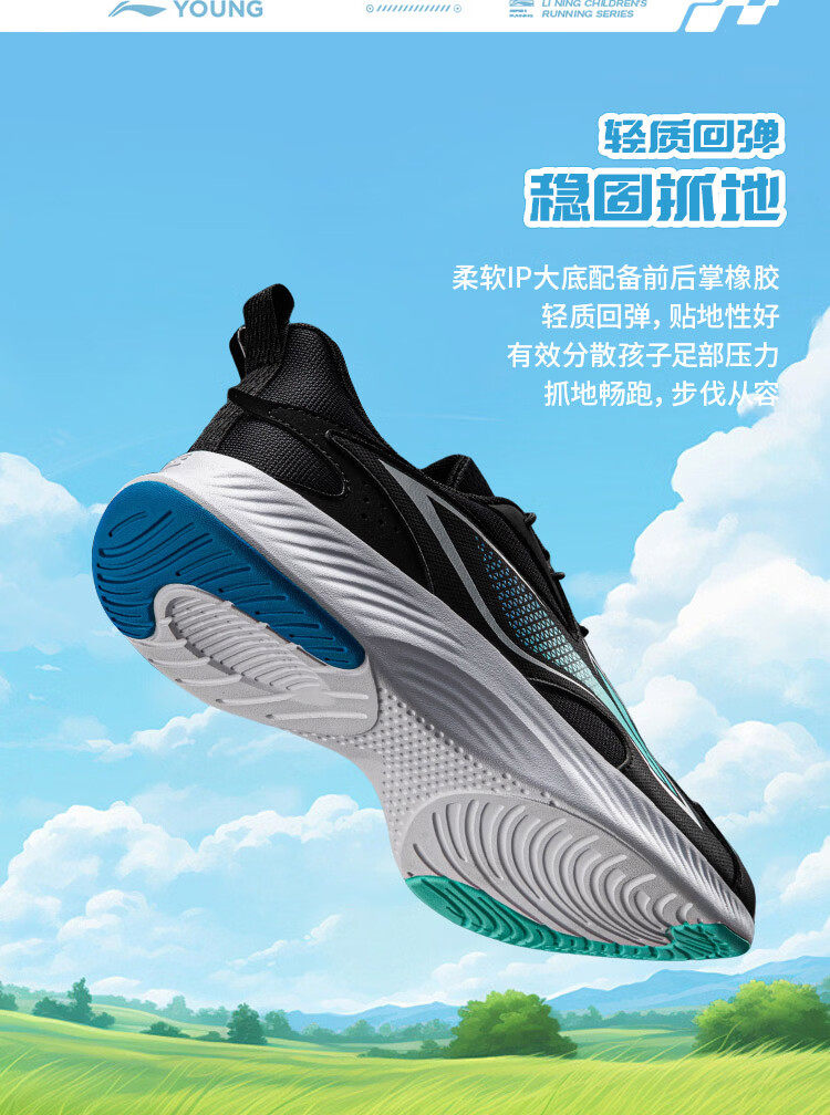 Li Ning (LI-NING) children's shoes, sports shoes, professional running shoes, spring new Angyue boys' running shoes, middle and large children's shoes, standard black Angyue 4 32, recommended foot length 20cm