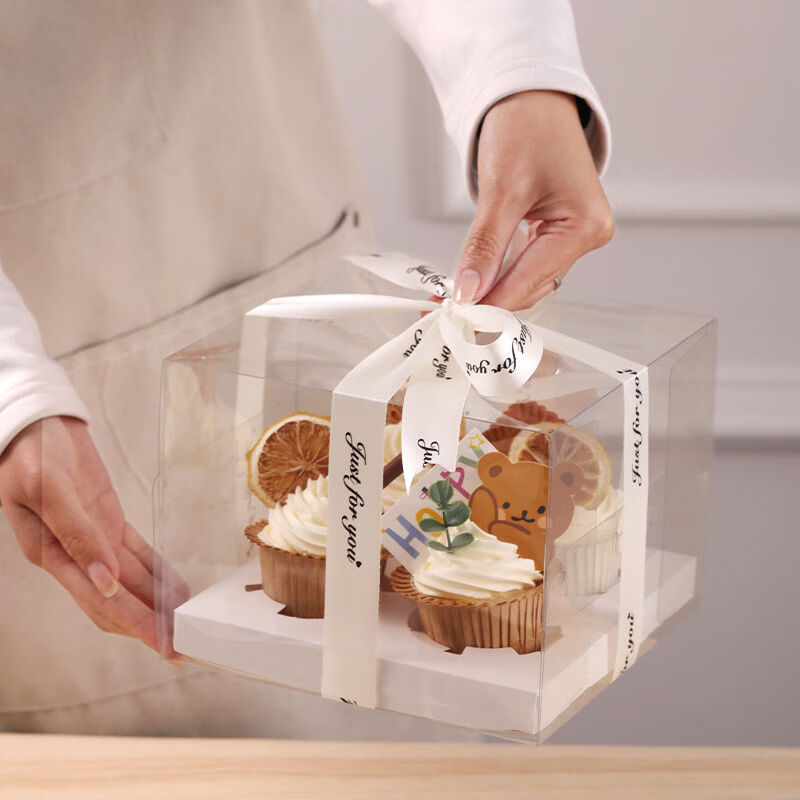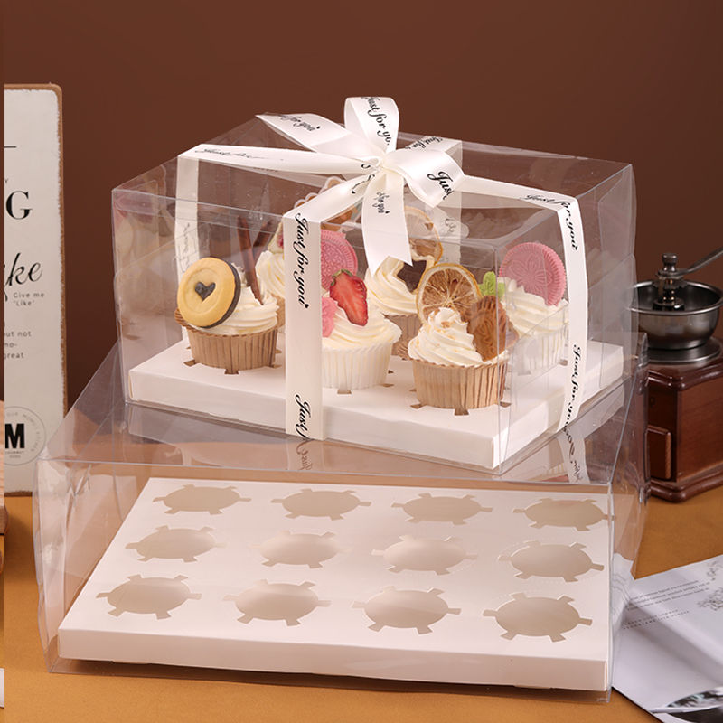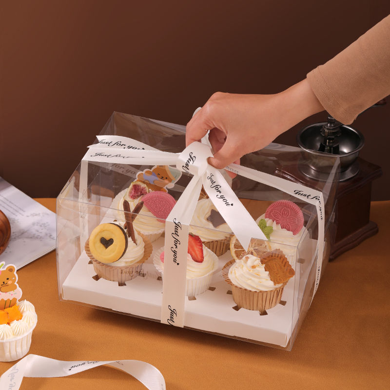 Fantasy transparent 6-piece taller cupcake box portable muffin cup nine-square grid packaging box 1 pack transparent strawberry tart packaging transparent strawberry tart packaging box 100 sets