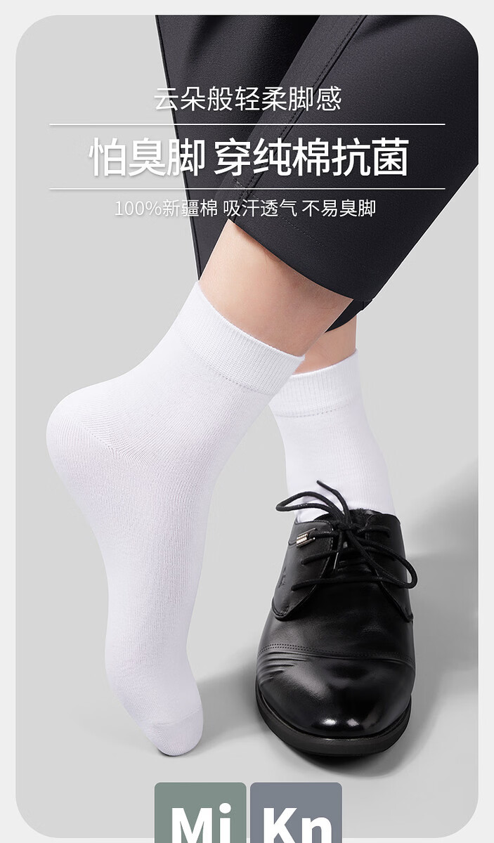White socks men's mid-calf socks 100% pure cotton sweat-absorbent autumn and winter thick long socks short socks for boys 100 pure cotton antibacterial and deodorant mid-calf socks 6 white +92119 one size