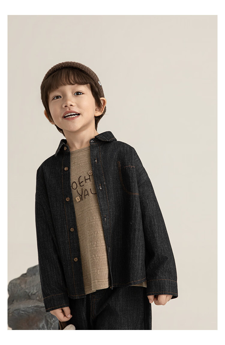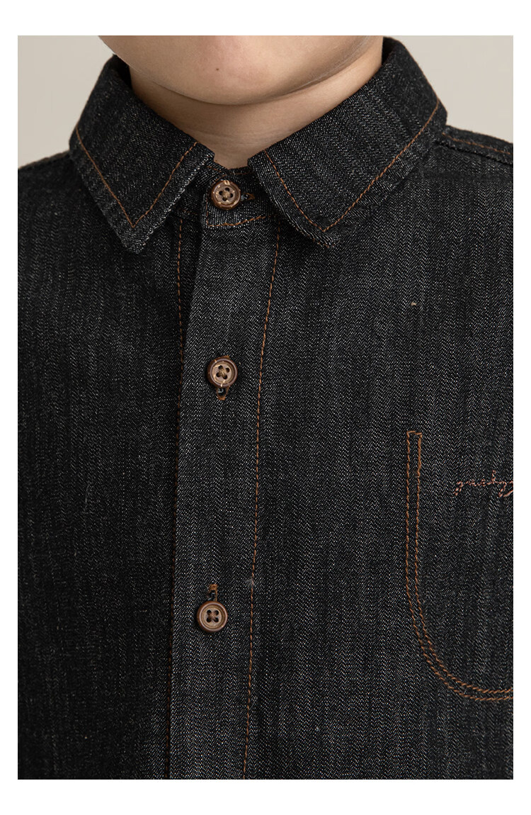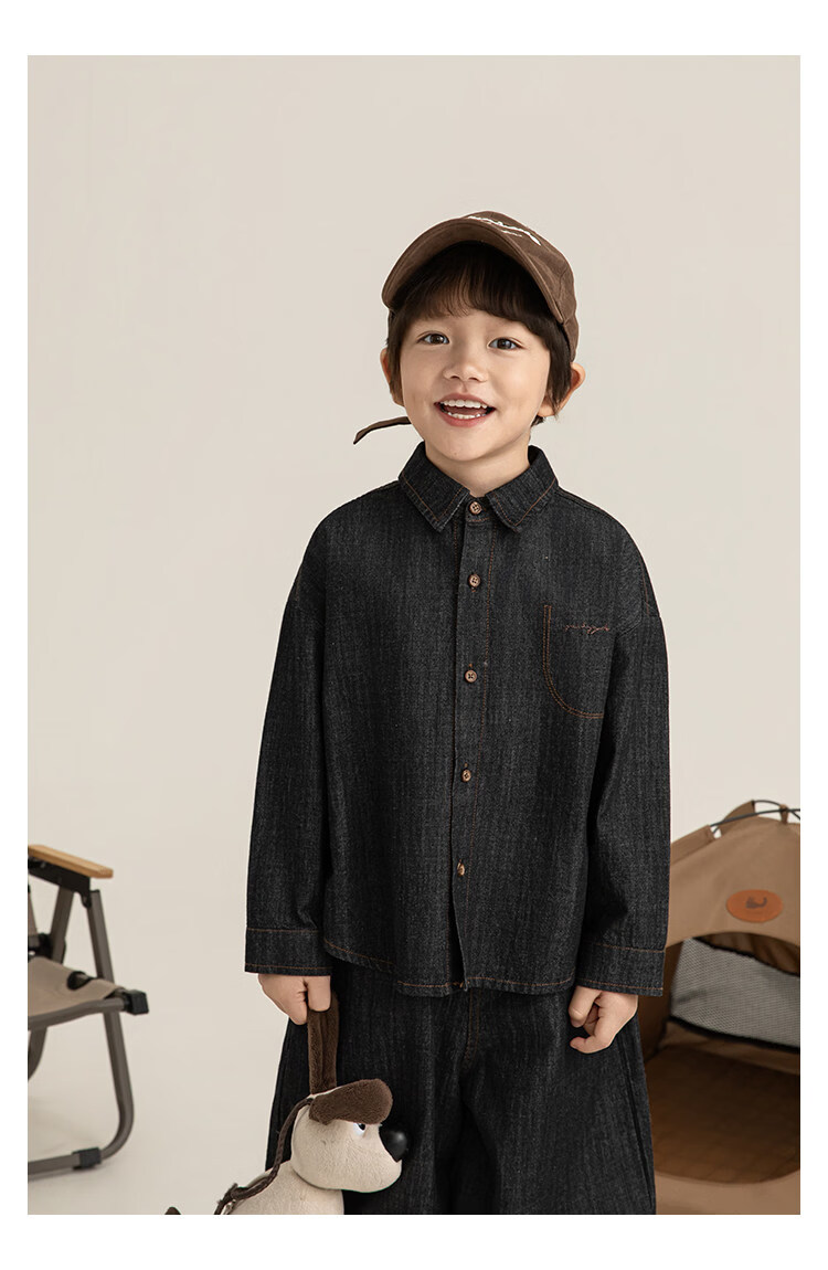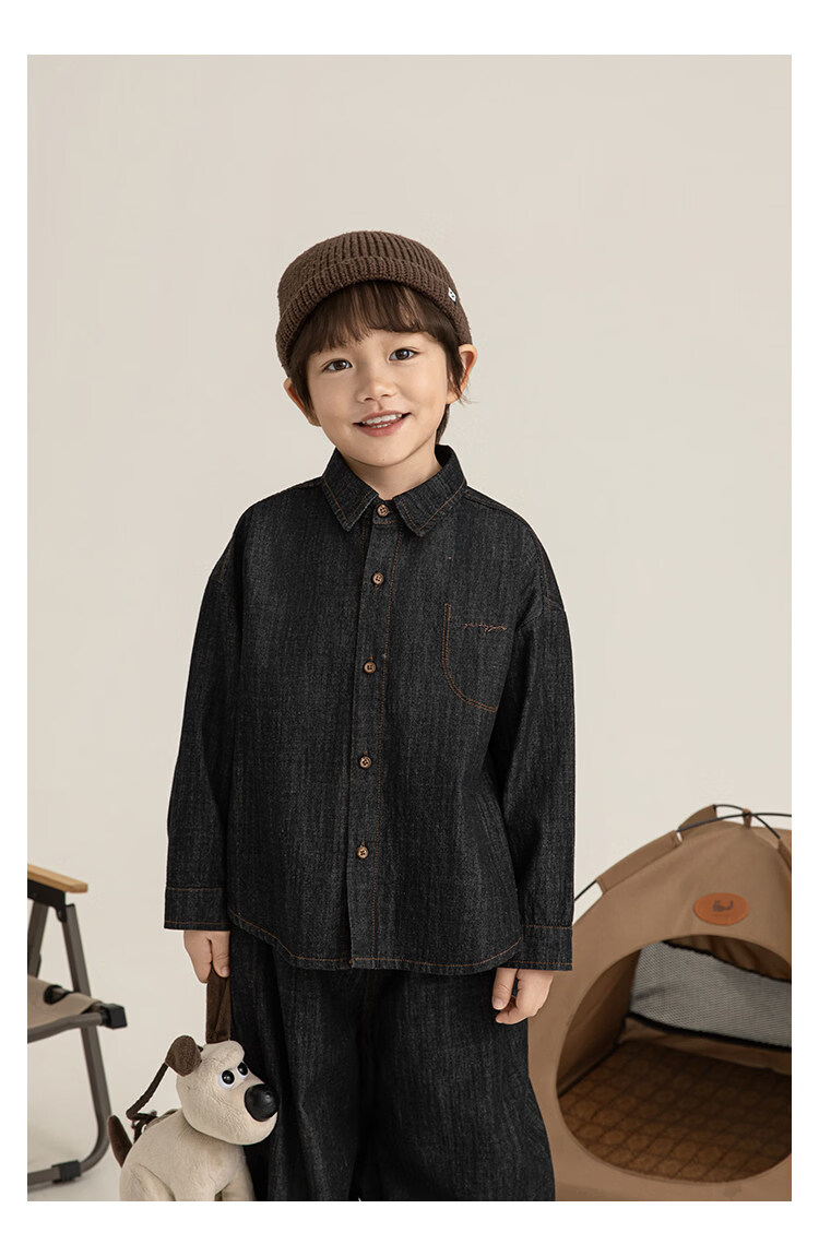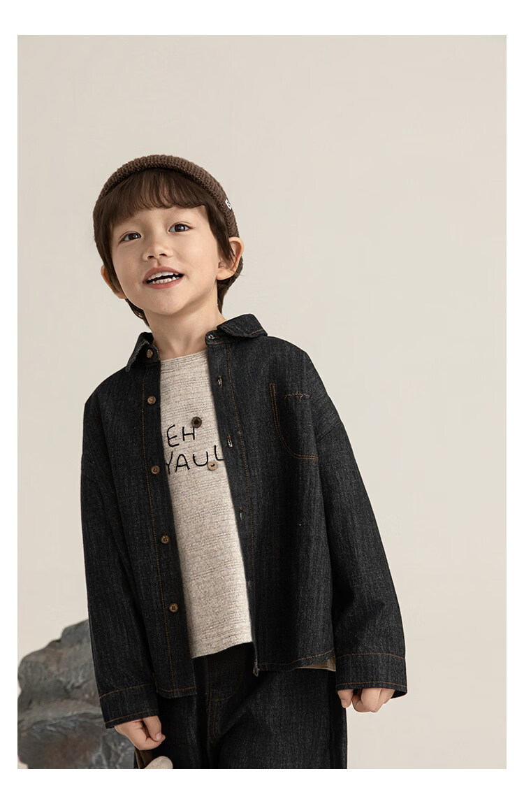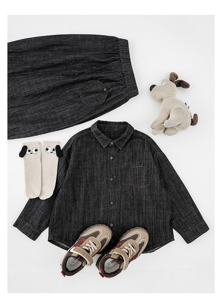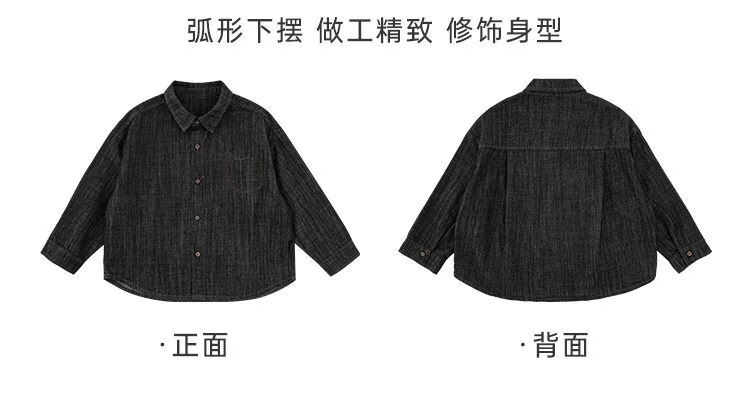 Young boys retro modern shirt 2026 spring fashionable and cute children's simple temperament lapel denim top black 90 cm