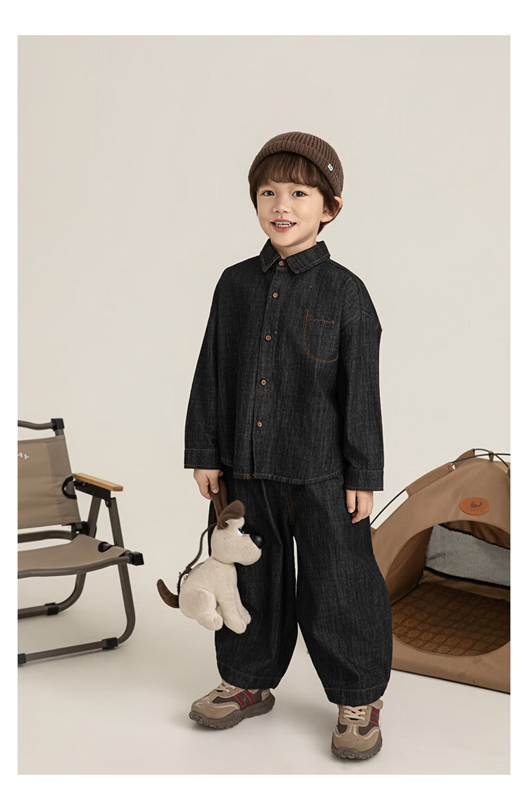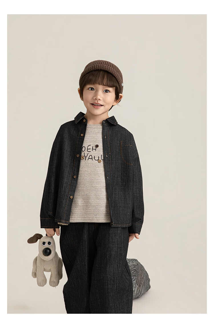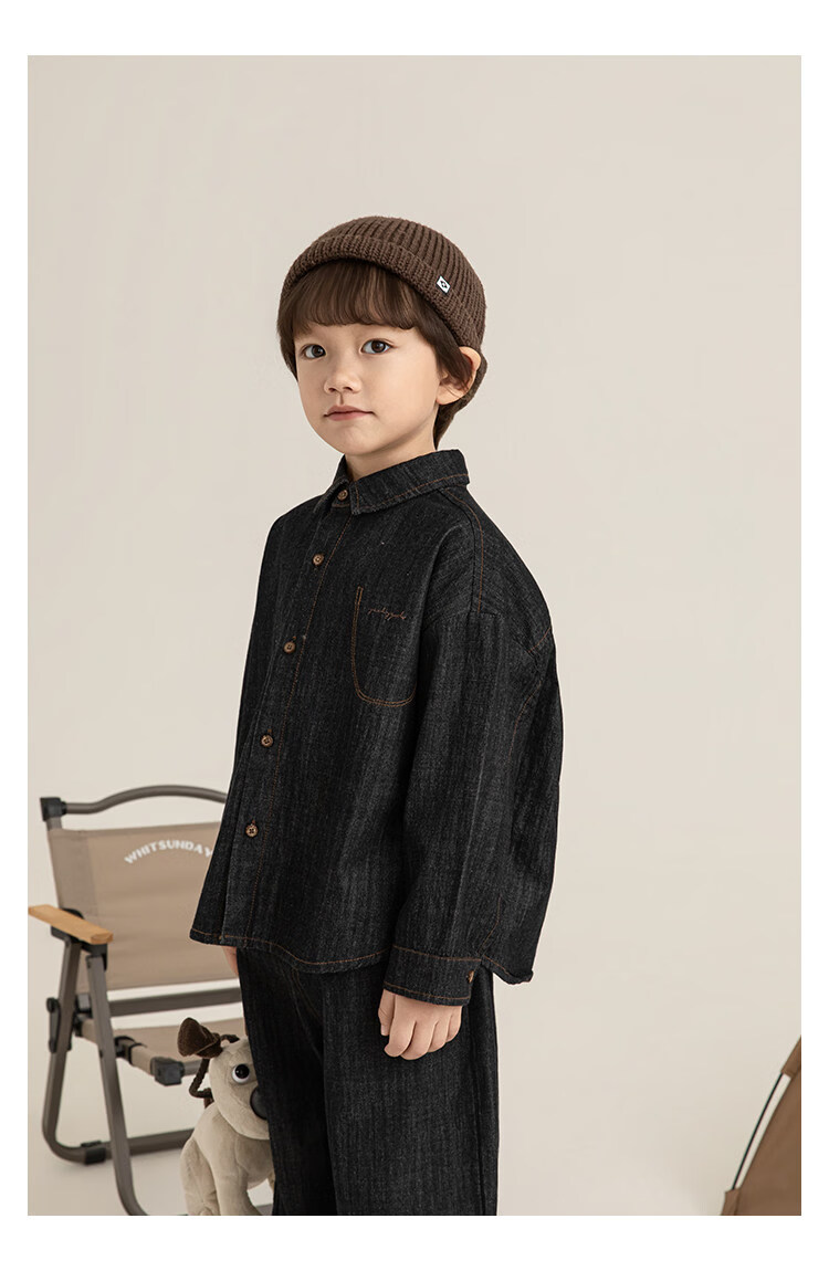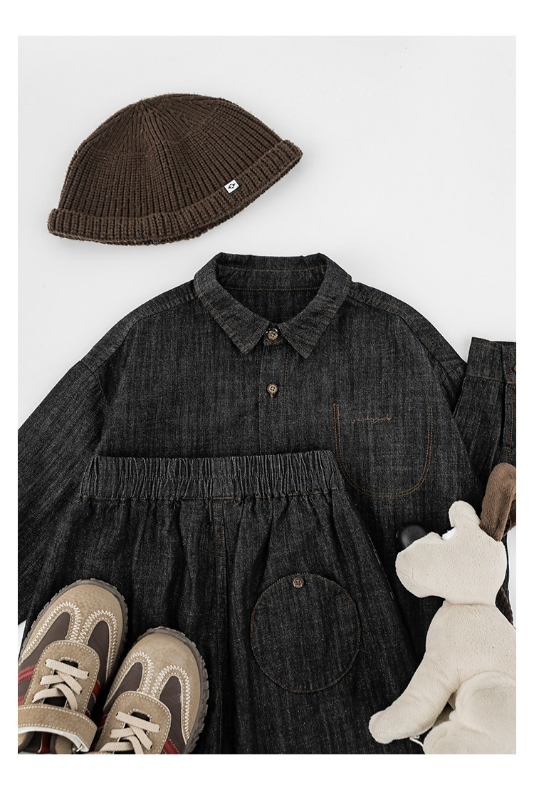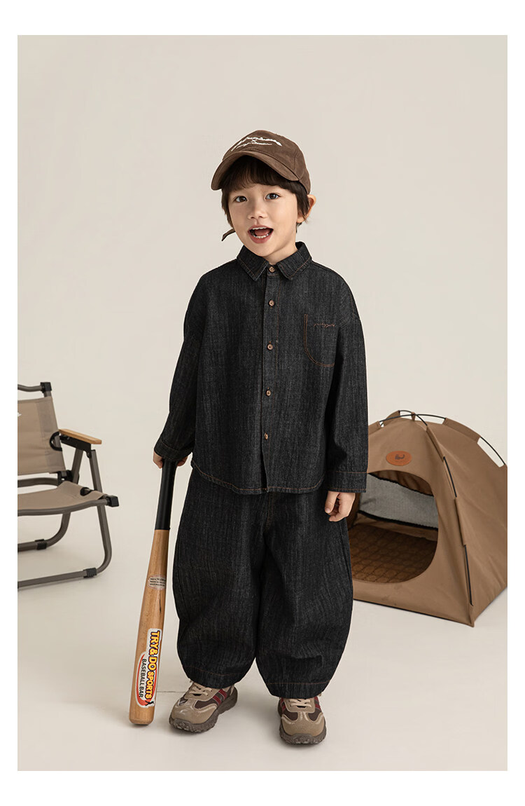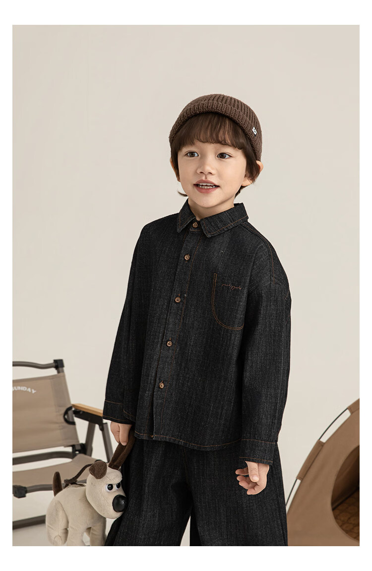 Young boys retro modern shirt 2026 spring fashionable and cute children's simple temperament lapel denim top black 90 cm