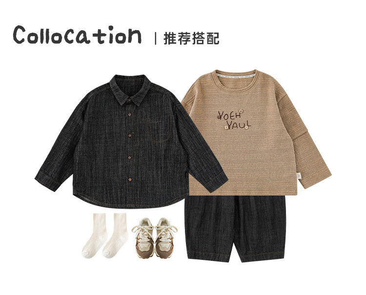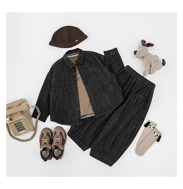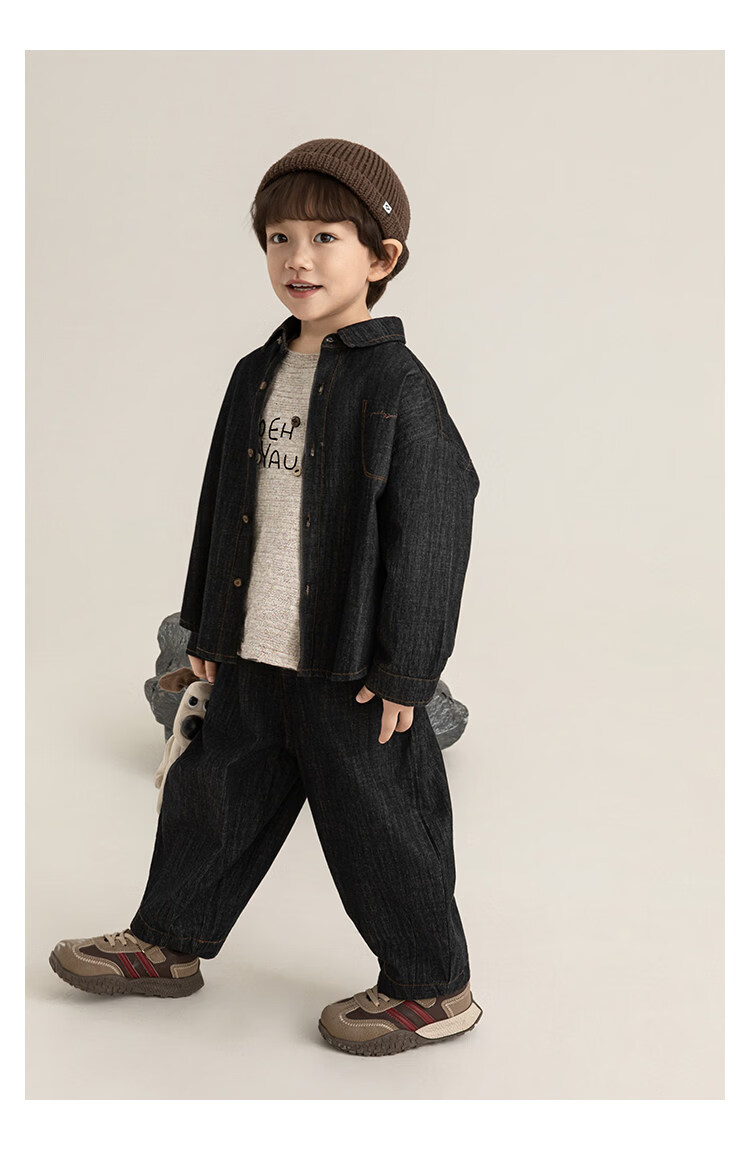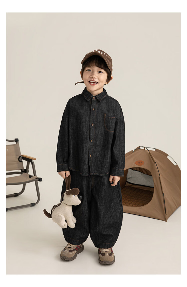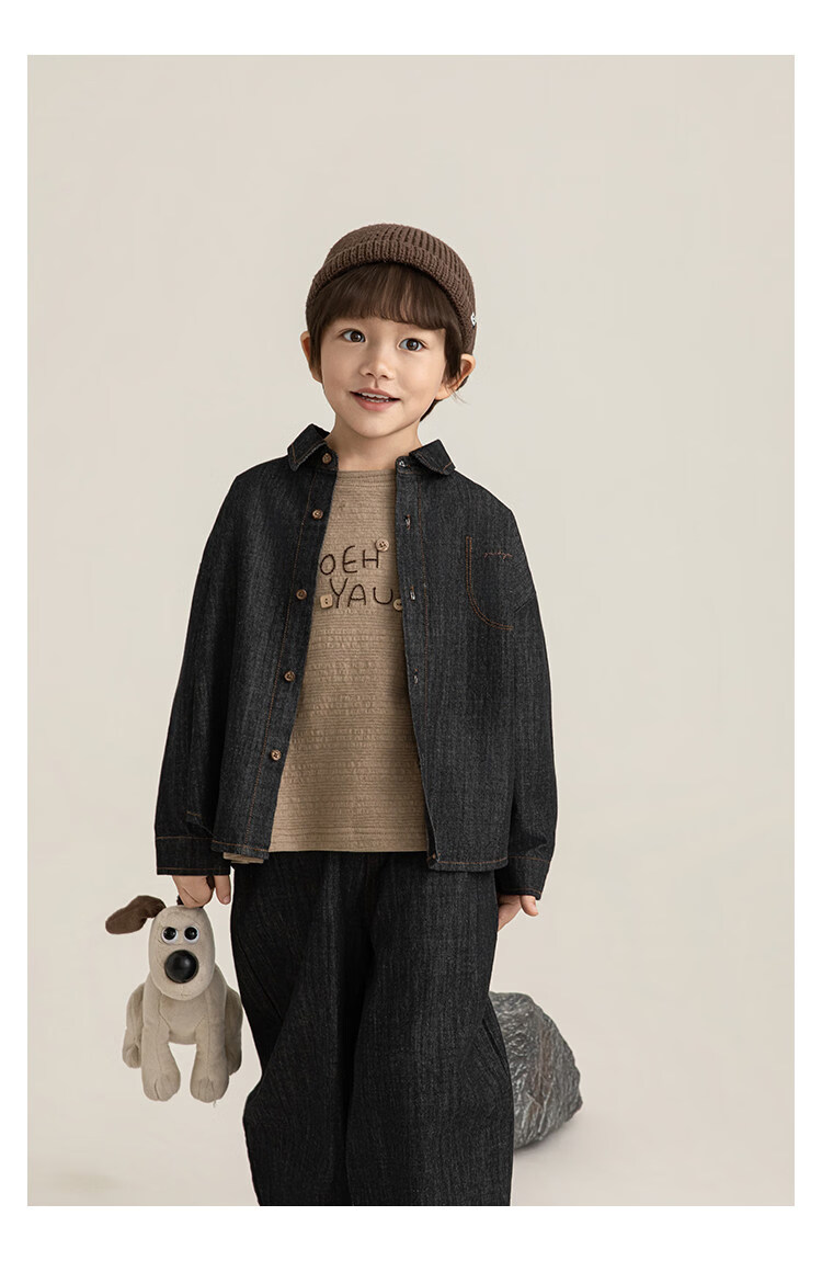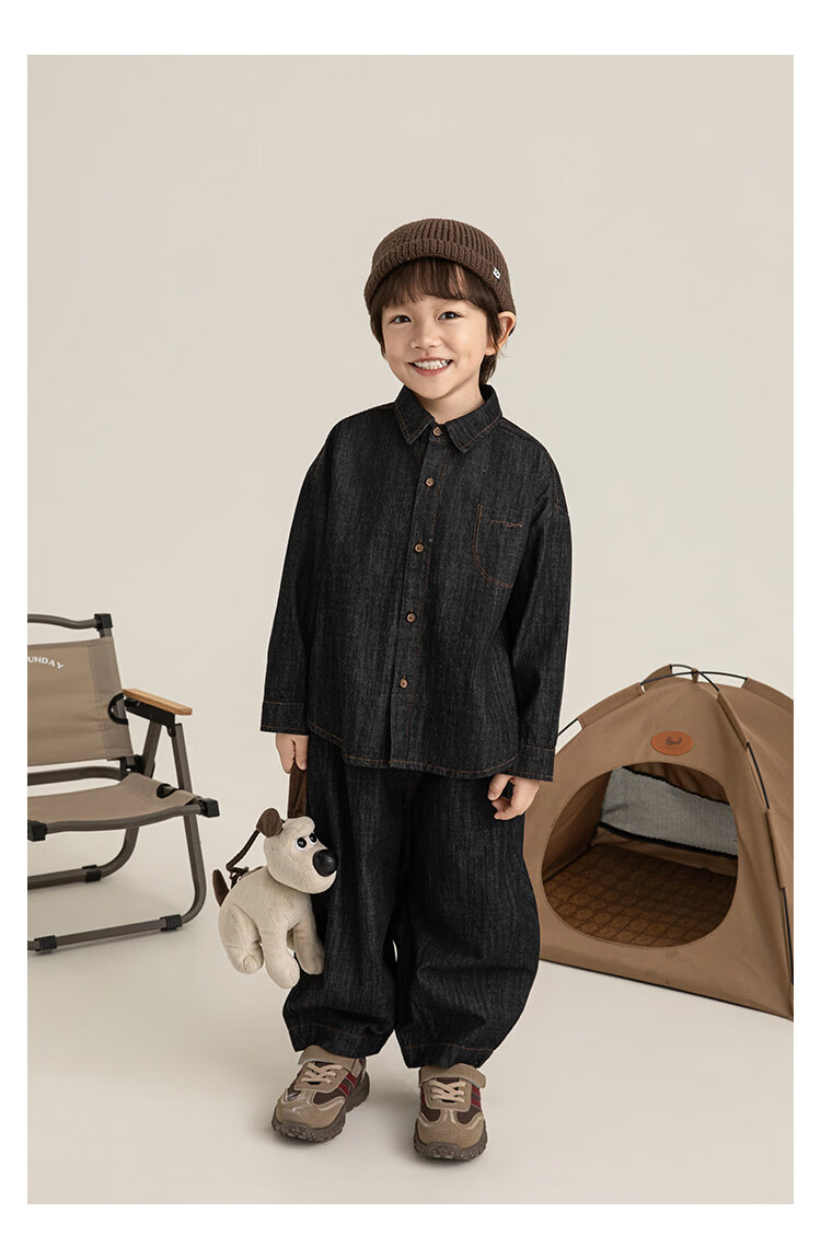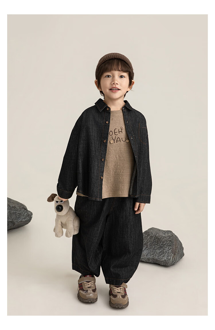 Young boys retro modern shirt 2026 spring fashionable and cute children's simple temperament lapel denim top black 90 cm