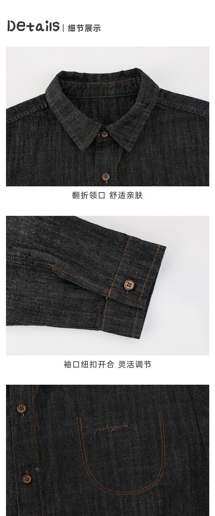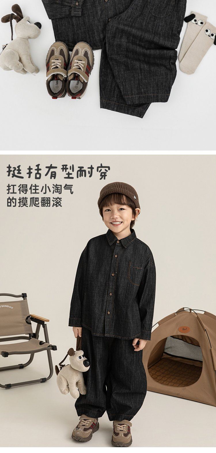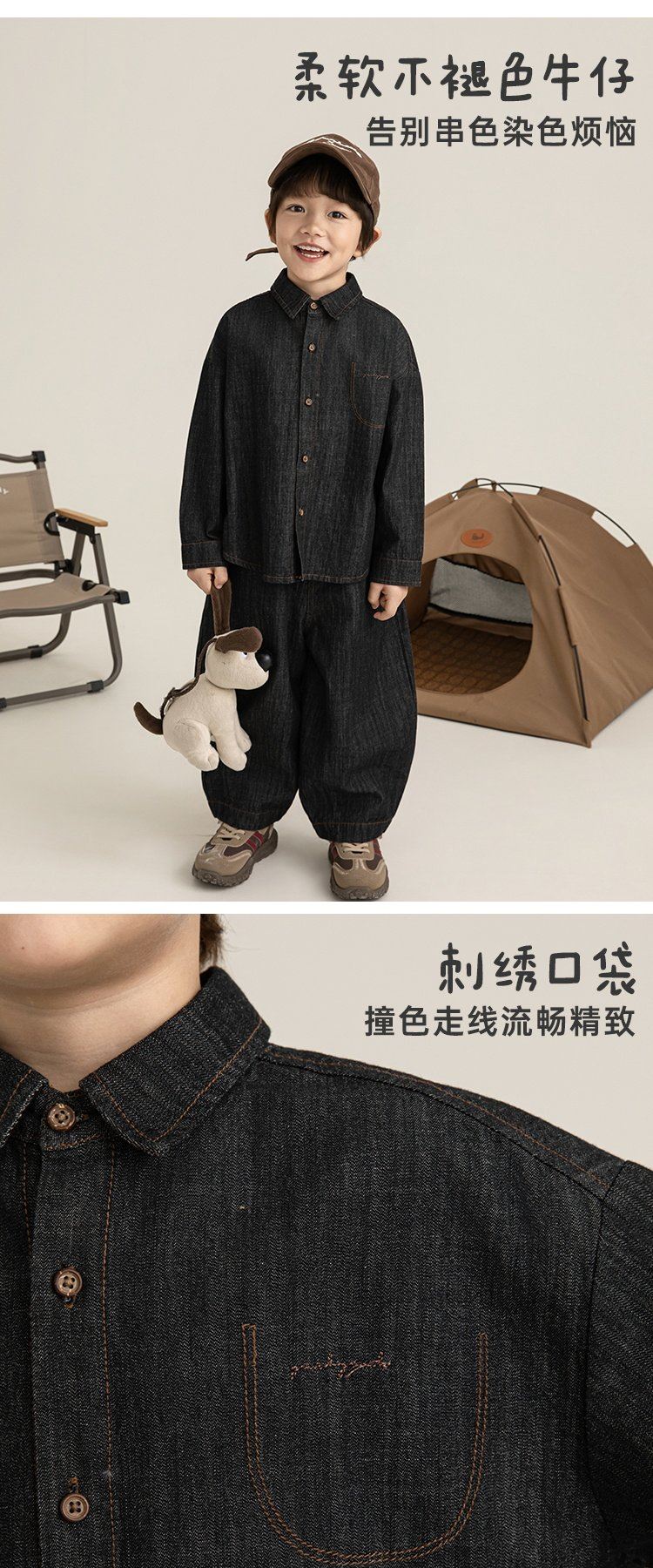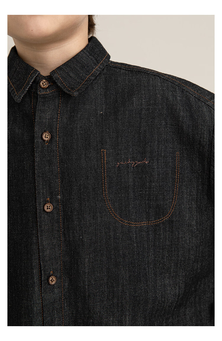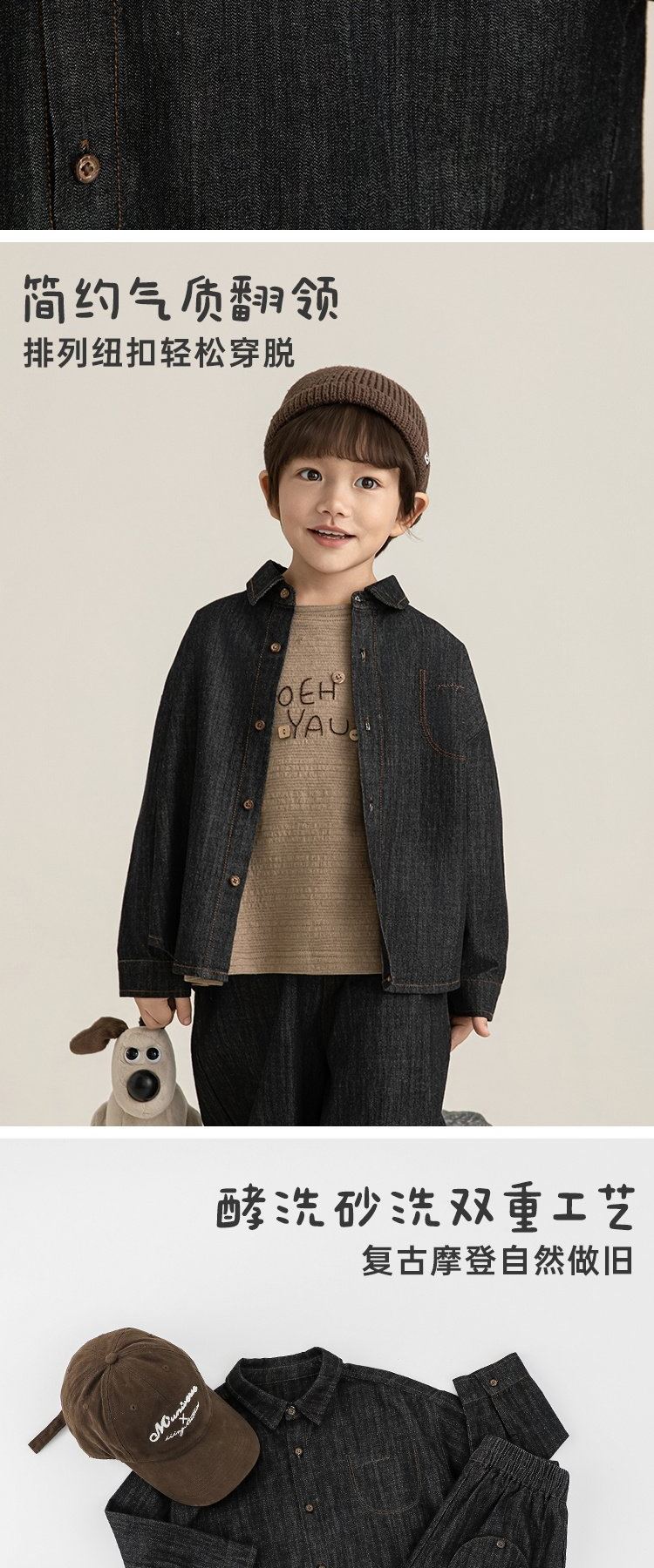 Young boys retro modern shirt 2026 spring fashionable and cute children's simple temperament lapel denim top black 90 cm