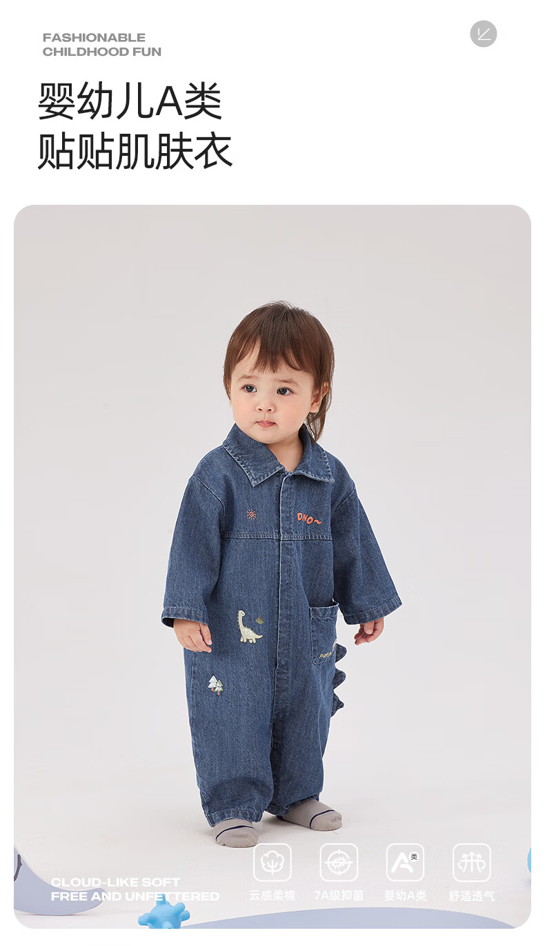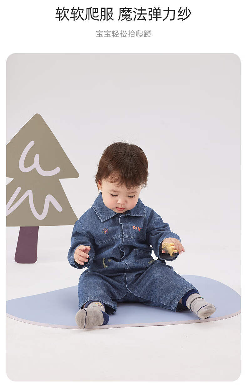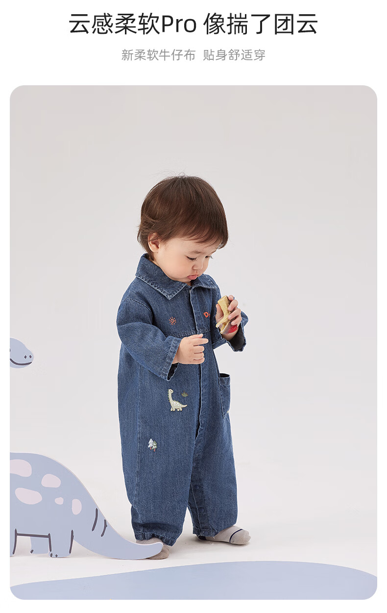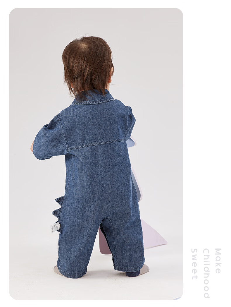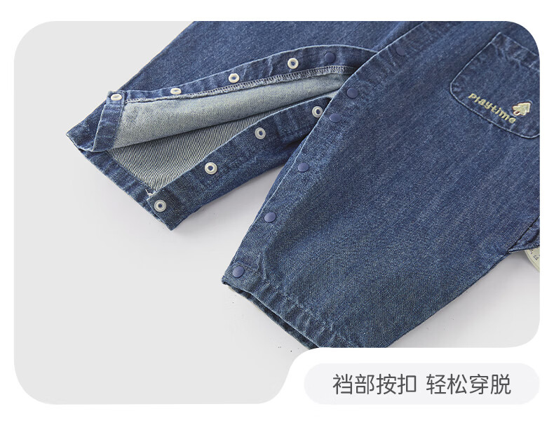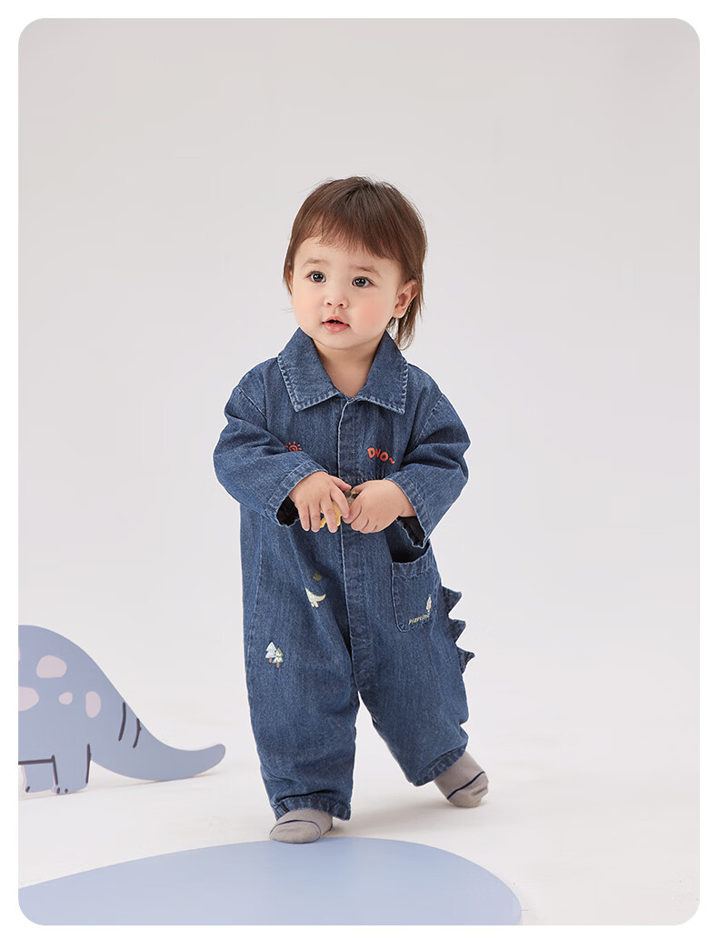 JELLYBABY 2026 Spring New Product Baby Jumpsuit Spring Clothing Infant Printed Denim Romper Suit Boy Baby Spring Harness Denim Blue 73cm