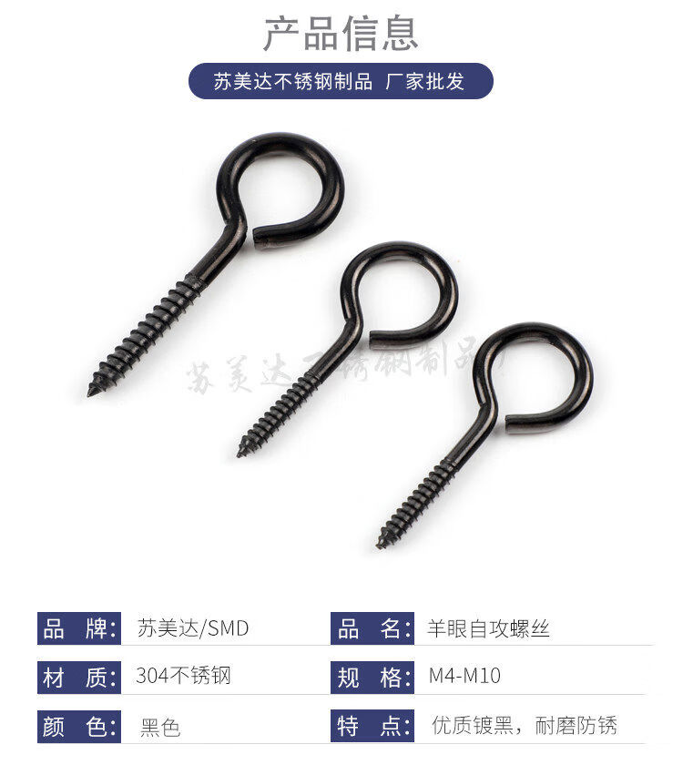 04 Stainless steel sheep eye self-tapping screws, black ring self-tapping screws, wear-resistant ring-shaped thumb screws, M5*6510 pieces