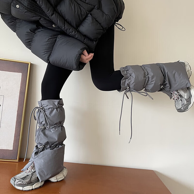 Fenton Winter Warm Gray Cotton Drawstring Straps Sports and Leisure Socks Leg Covers Women's Outdoor Warm Boot Covers Fenton White_Short One Size