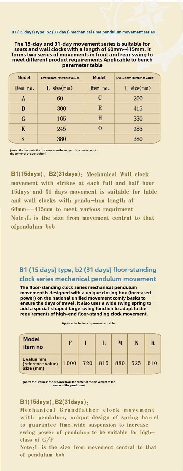 Polaris 15-day winding movement B1 movement mechanical movement floor clock accessories