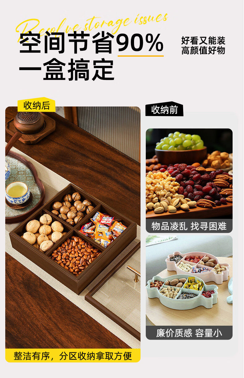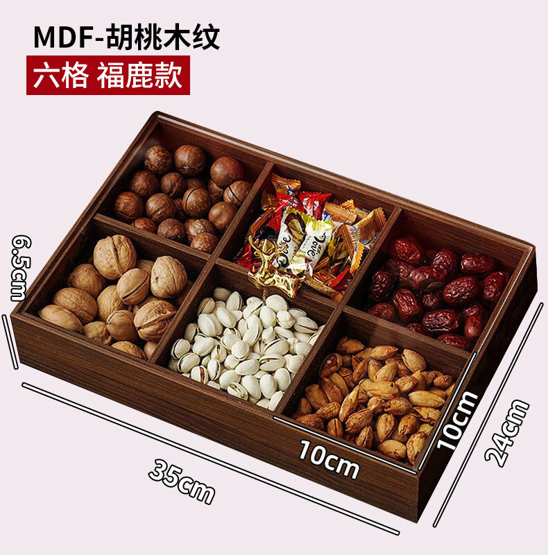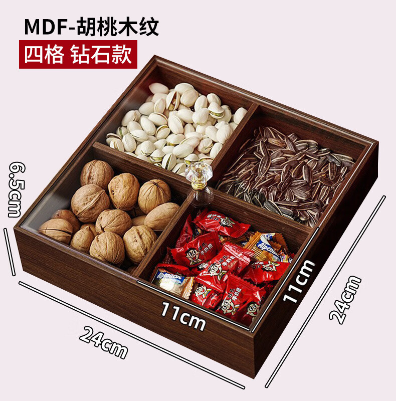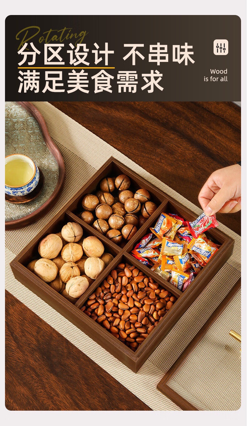 New Year living room coffee table solid wood dried fruit storage box fruit tray high-end light luxury snacks dried fruit tray with lid kk Chinese style walnut grain dried fruit box-solid wood 6 square grid handle style