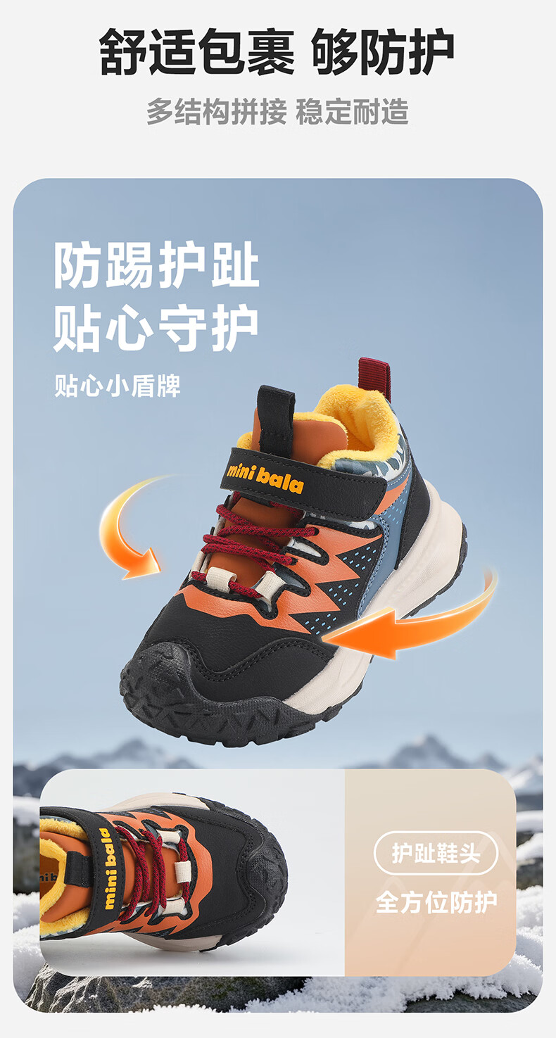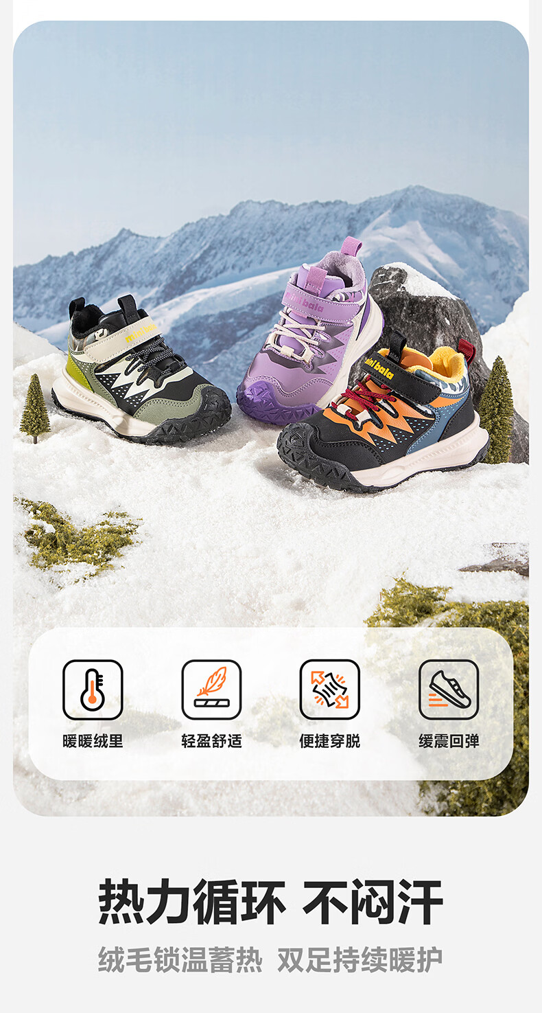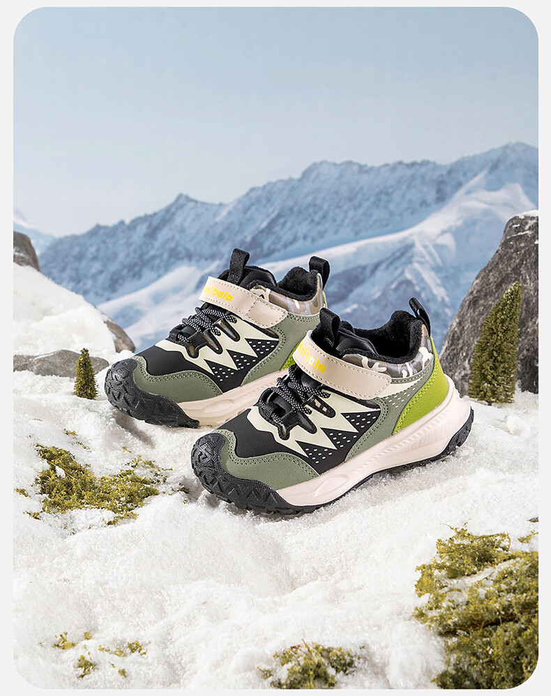 Mini Bala (minibala) mini Bala winter plus velvet warm children's new casual sneakers for boys and middle-aged children cotton shoes girls sneakers white green tone 26