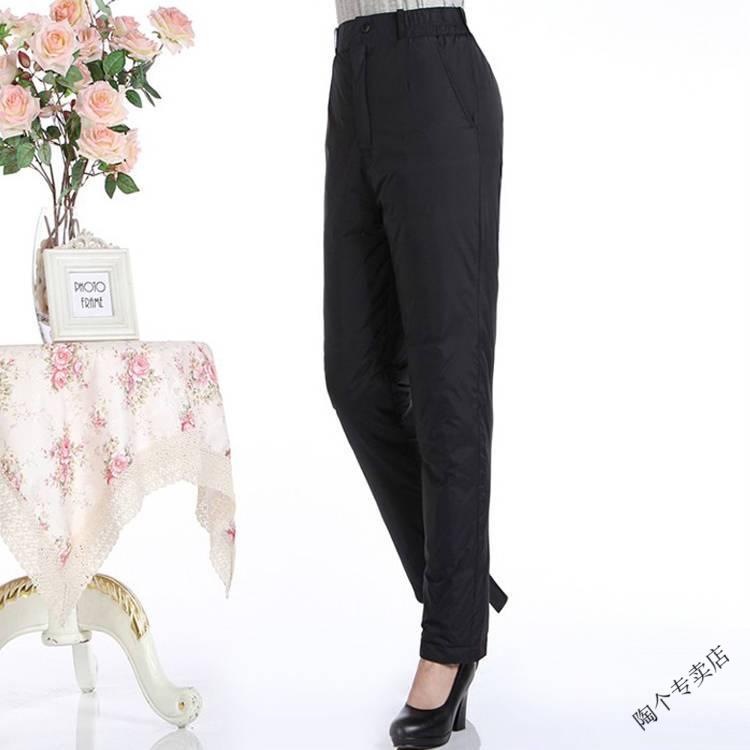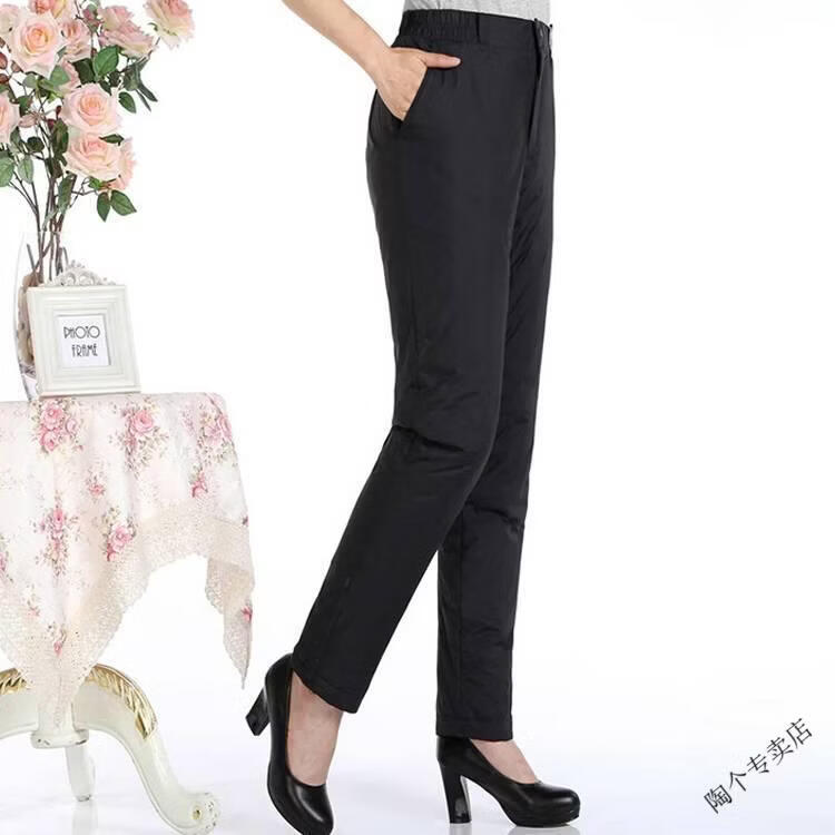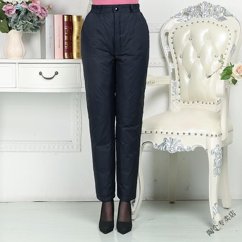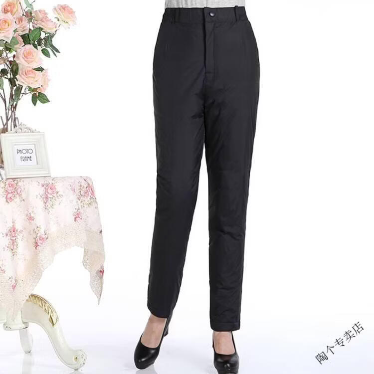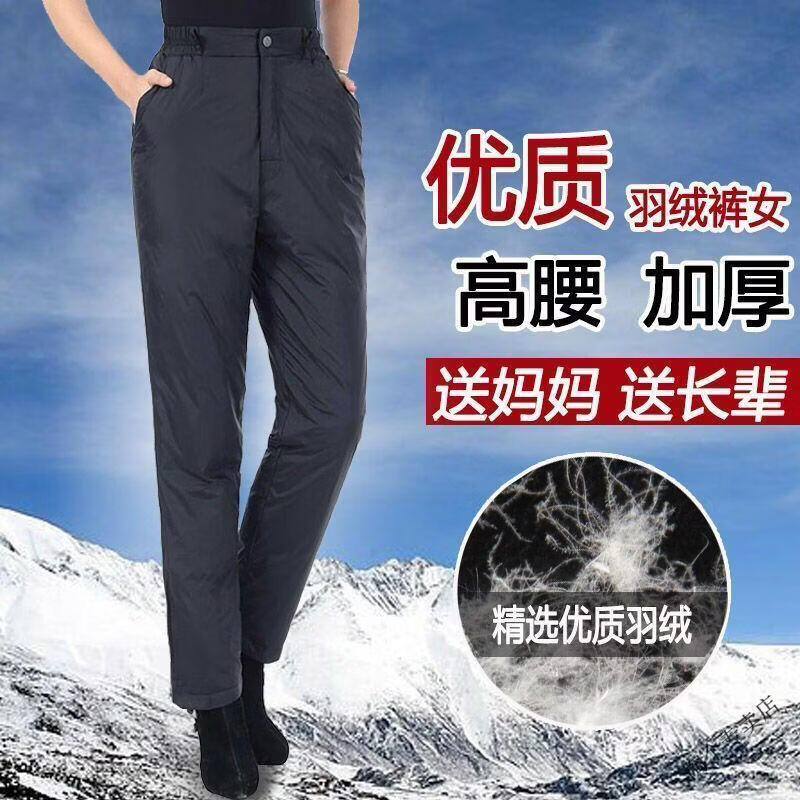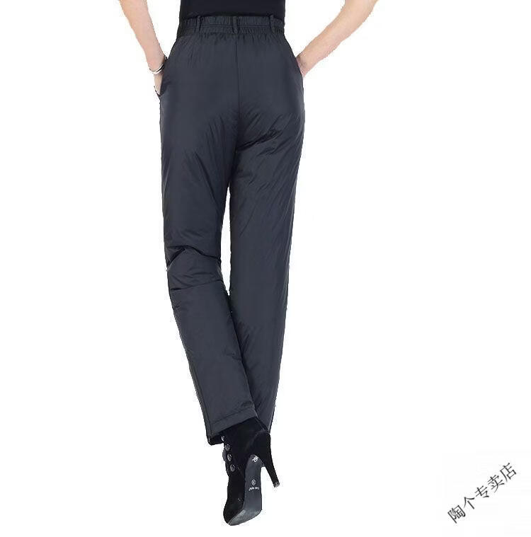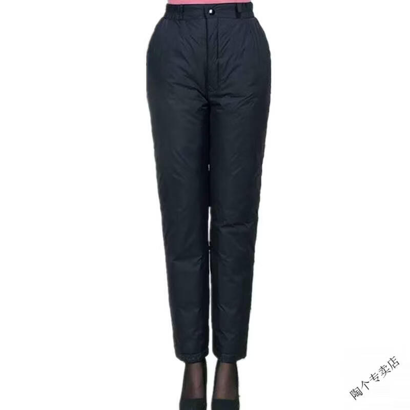 Woodpecker (TUCANO) middle-aged and elderly women's high-waisted down pants thickened and fattened duck down pants warm slim cotton pants slimming women's official flagship black cyan L recommended 102-120 Jin Jin equals 0.5 kg