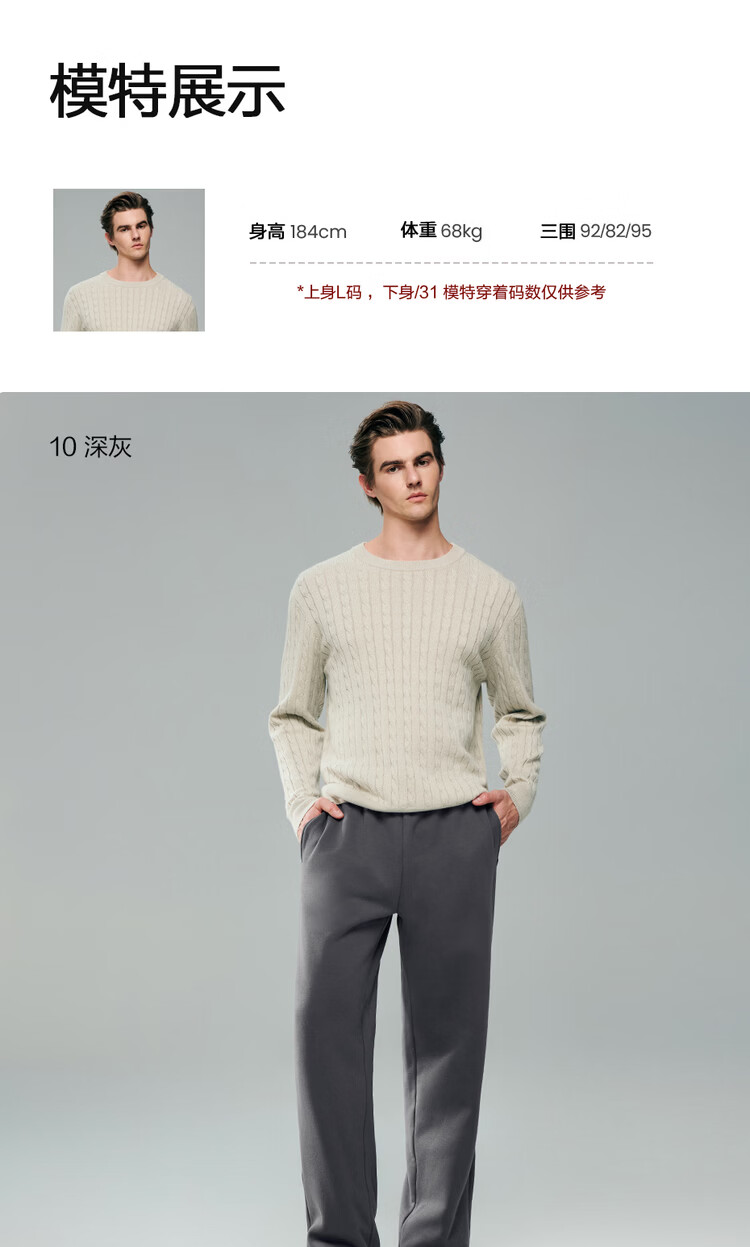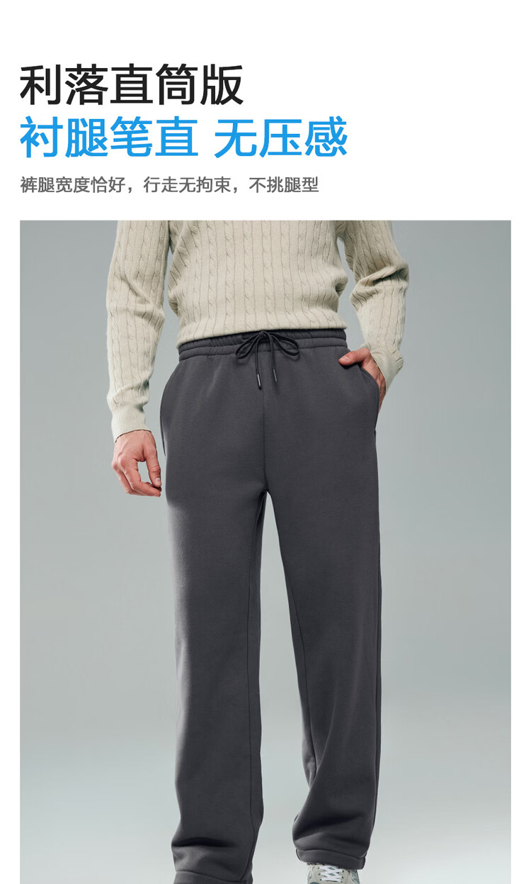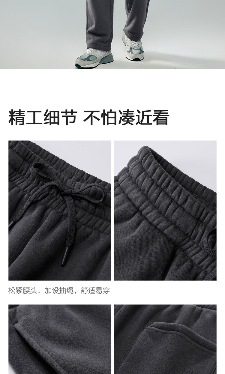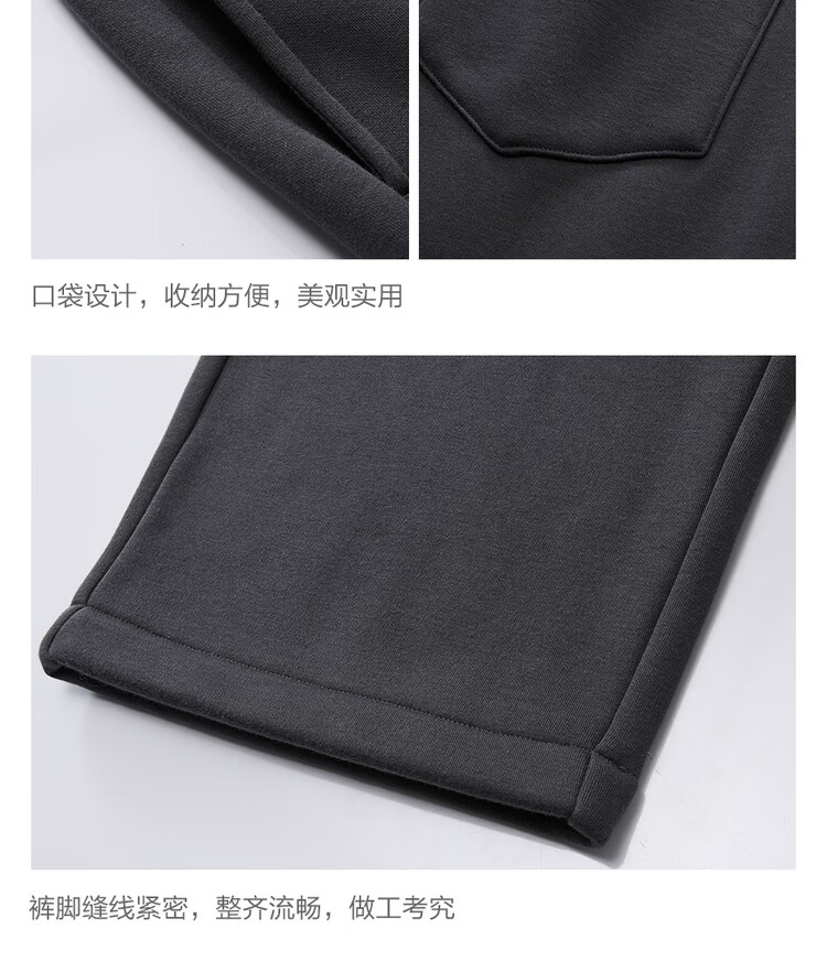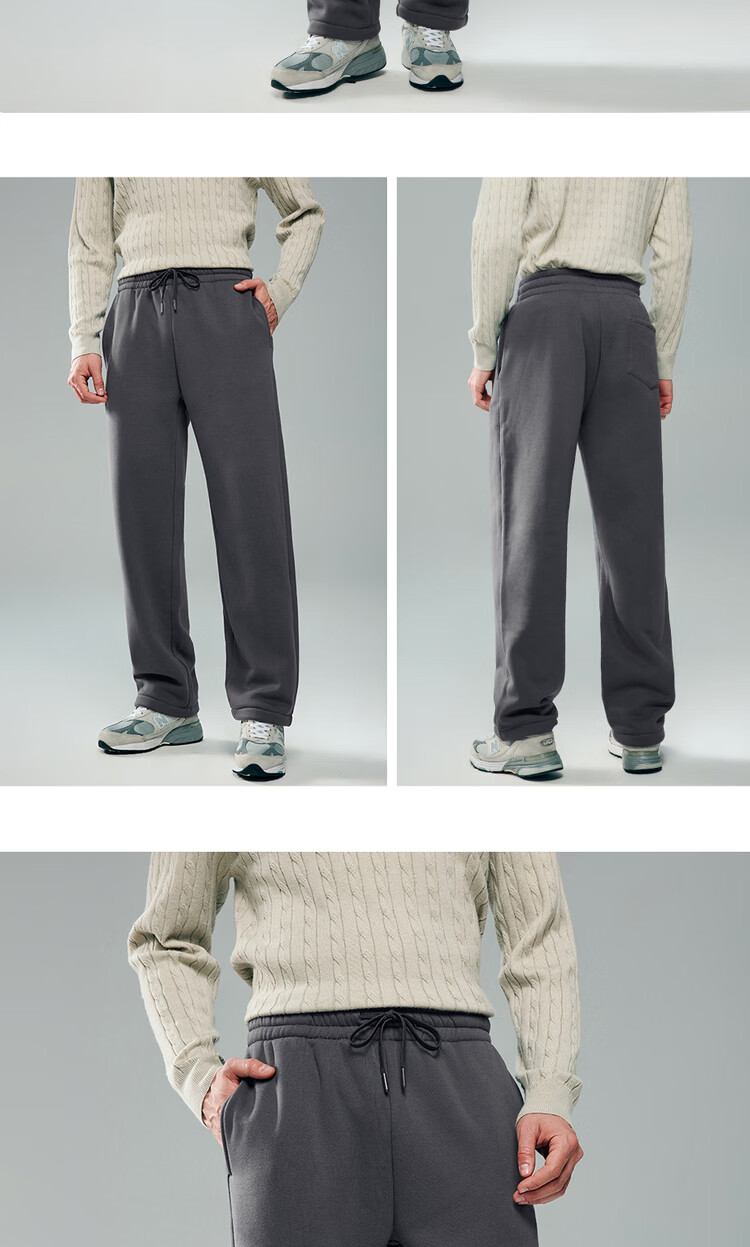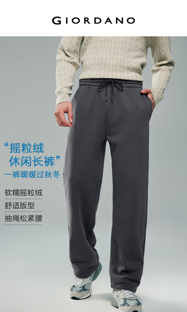 Giordano pants men's spring new velvet sports casual pants drawstring elastic waist knitted sweatpants 13115196 10 dark gray M