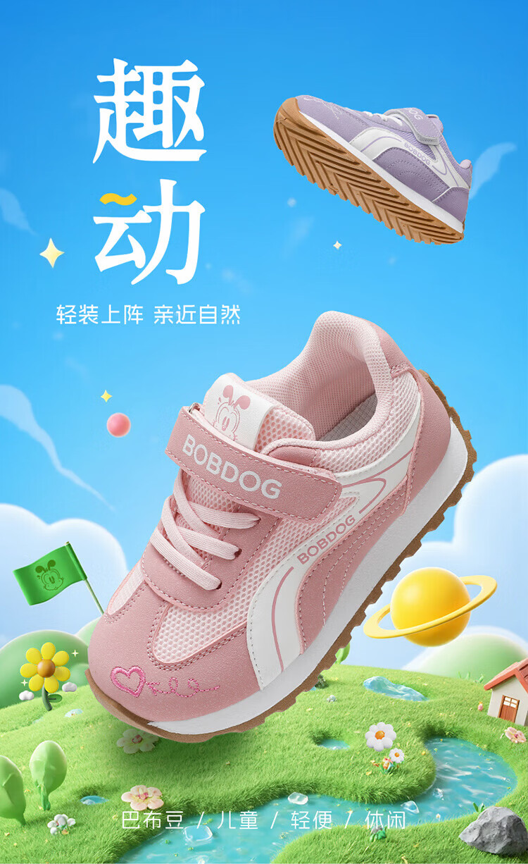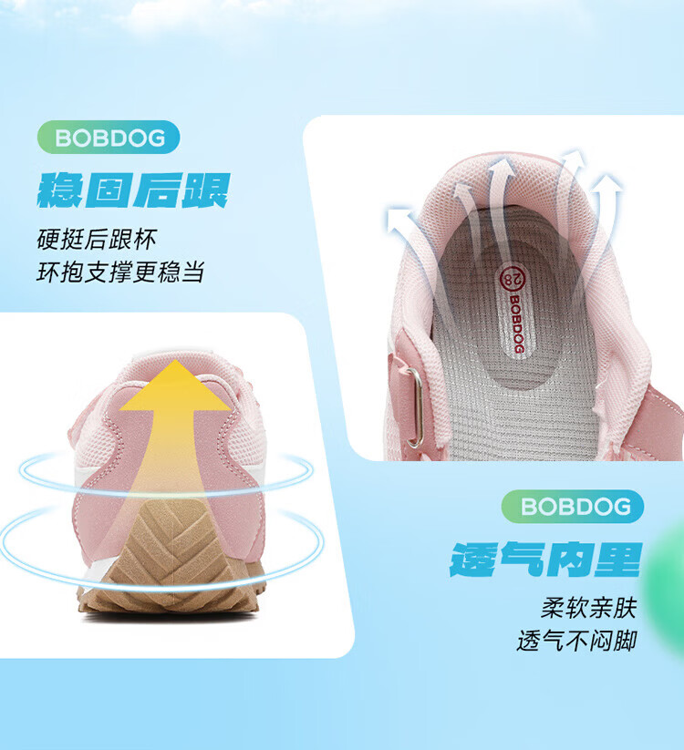 BOBDOG Children's Shoes 2026 Spring Versatile Children's Sports Shoes Girls Breathable Running Shoes Medium and Large Children's Mesh Casual Shoes Warm Pink 26 Suitable for Feet Length 15.8cm