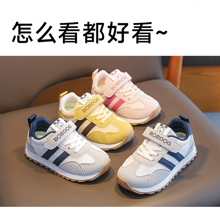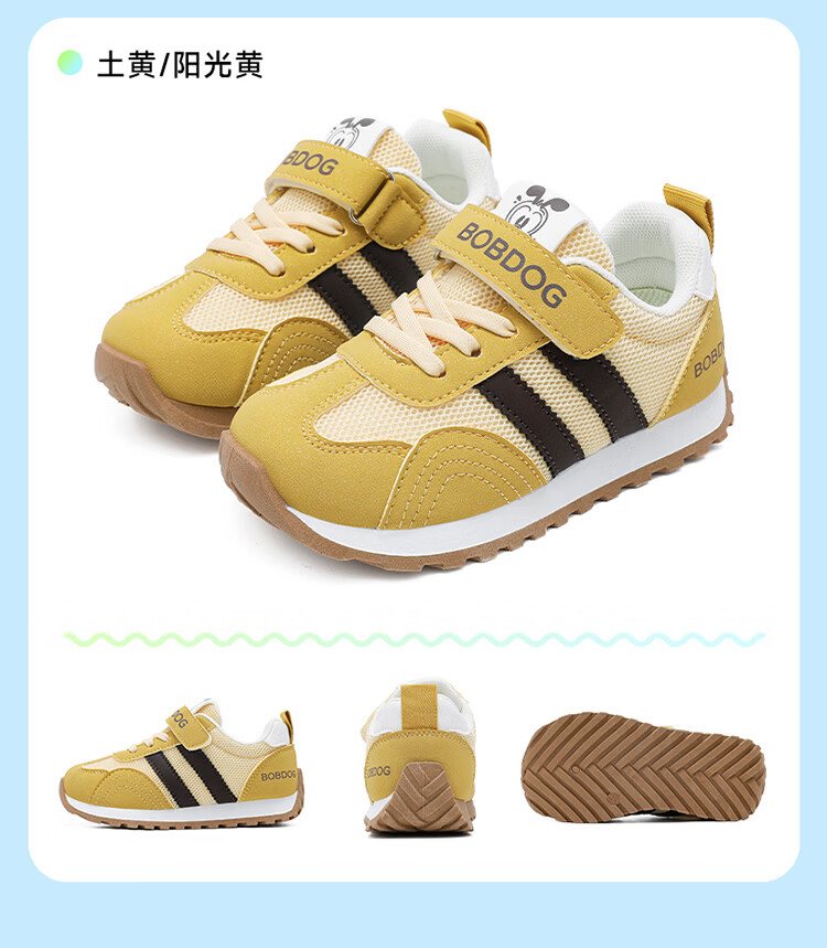 BOBDOG children's shoes, medium and large children's low-top running shoes, 2026 girls' comfortable and versatile casual shoes, boys' mesh children's sports shoes, earthy yellow/sunshine yellow 26, suitable for feet 15.8cm long