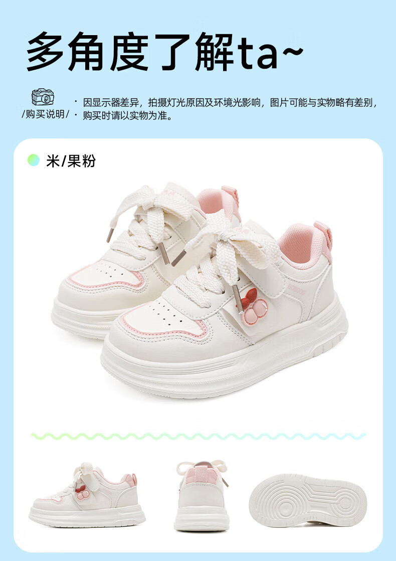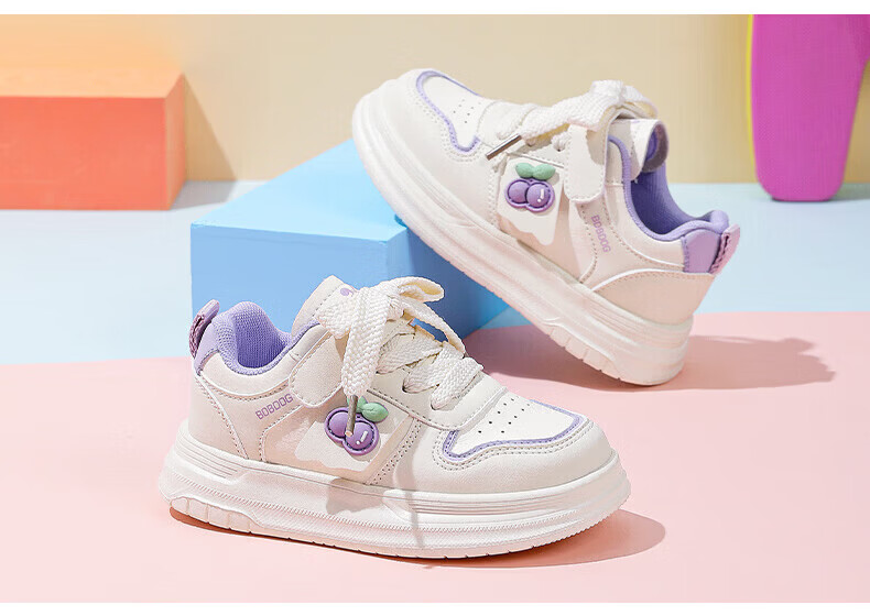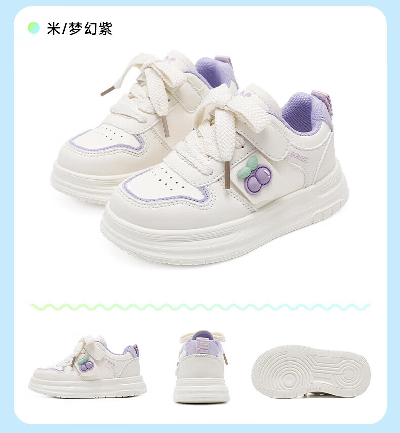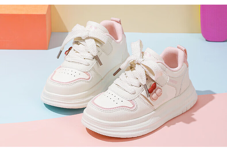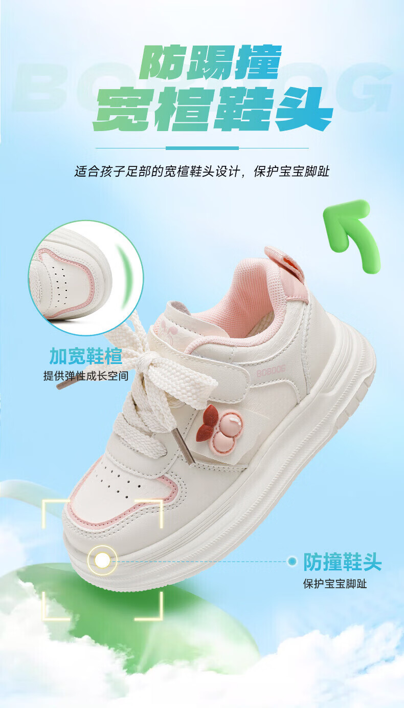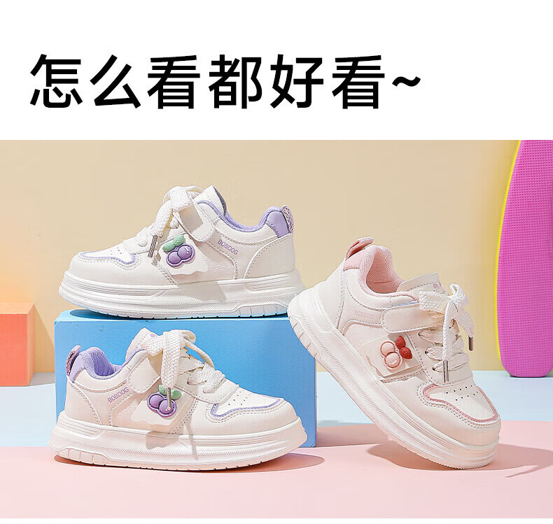 BOBDOG children's shoes, girls' sneakers, girls' 2026 spring new casual low-top campus white shoes, children's sports shoes, rice/fruit powder 30, suitable for feet length 17.6CM