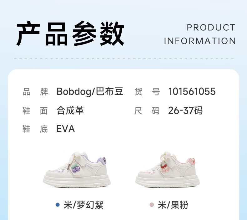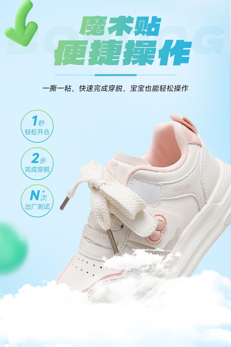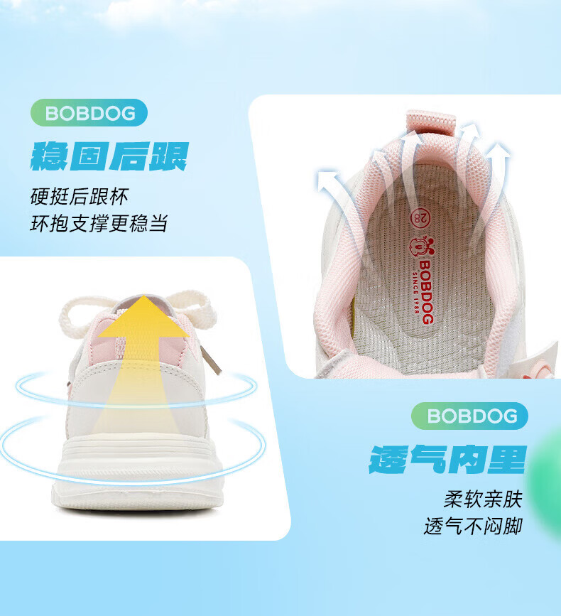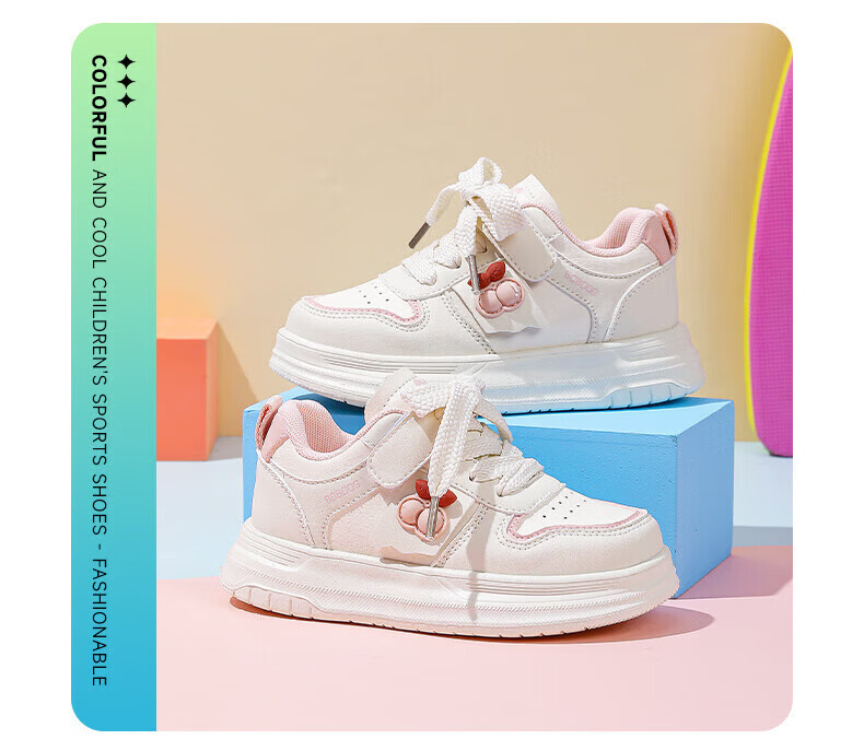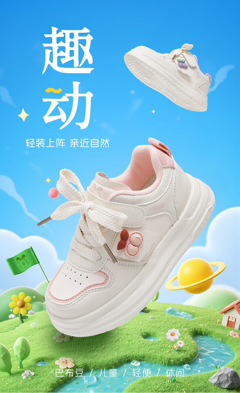 BOBDOG children's shoes, girls' sneakers, girls' 2026 spring new casual low-top campus white shoes, children's sports shoes, rice/fruit powder 30, suitable for feet length 17.6CM