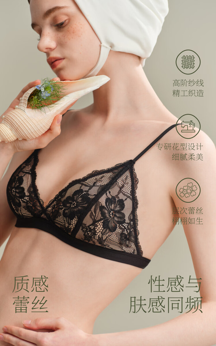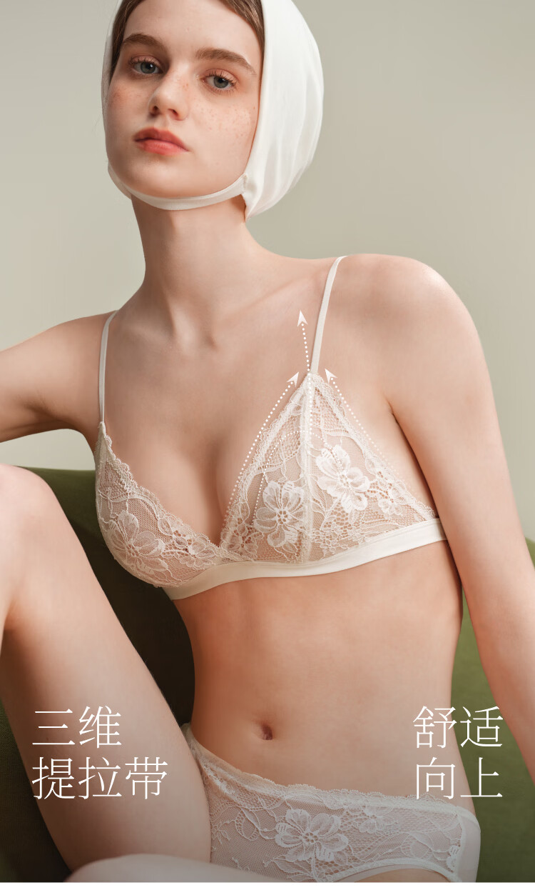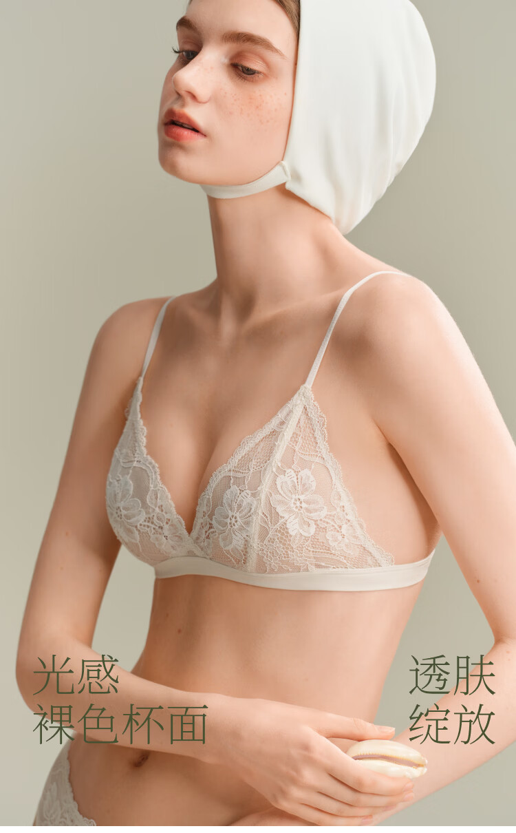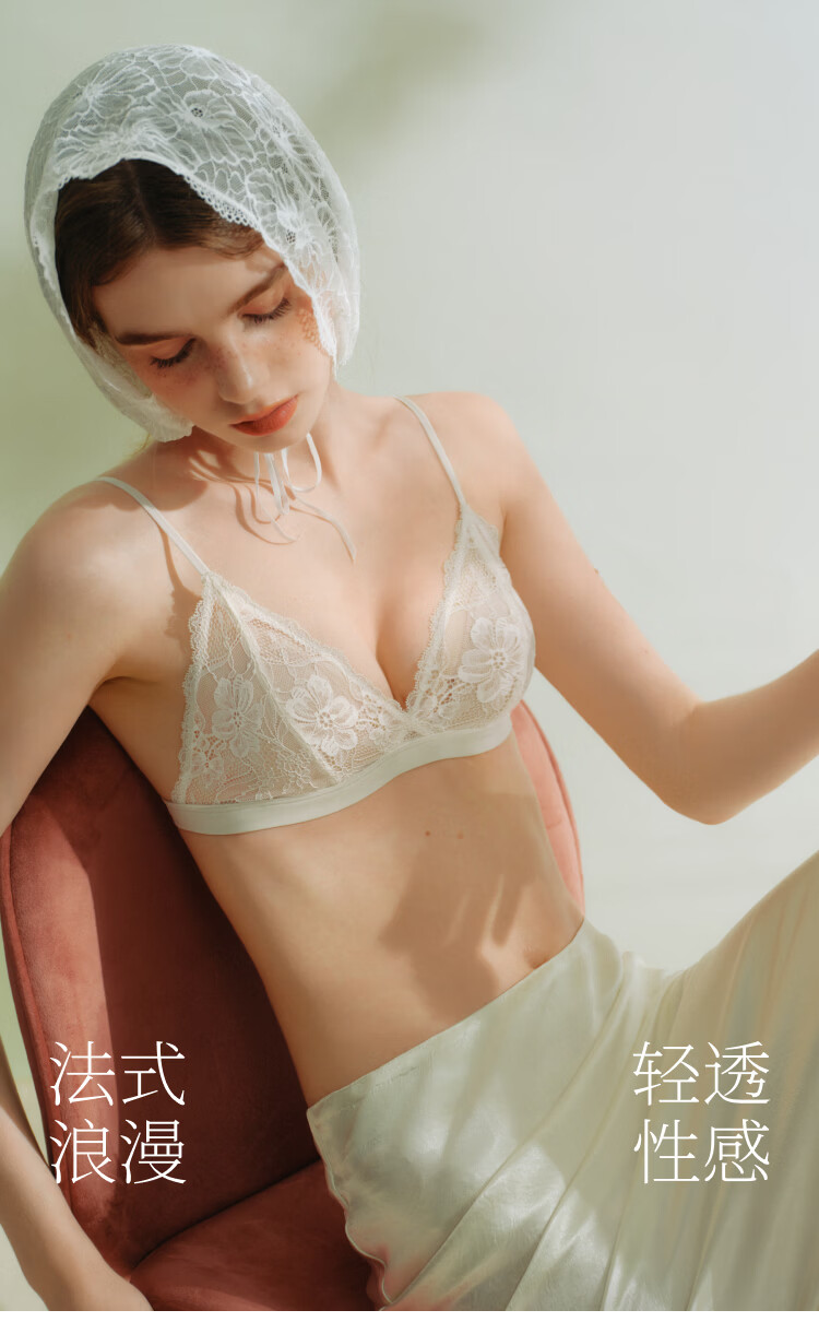 Suji Liangpin Small French Flower Buds French Triangular Cup Sexy Lace Breathable Underwear Women's Deep V Bra Thin Backless Summer Backless Man Yue White French Small Flower Buds Sexy Anti-bulge M (75A,750B,75C)