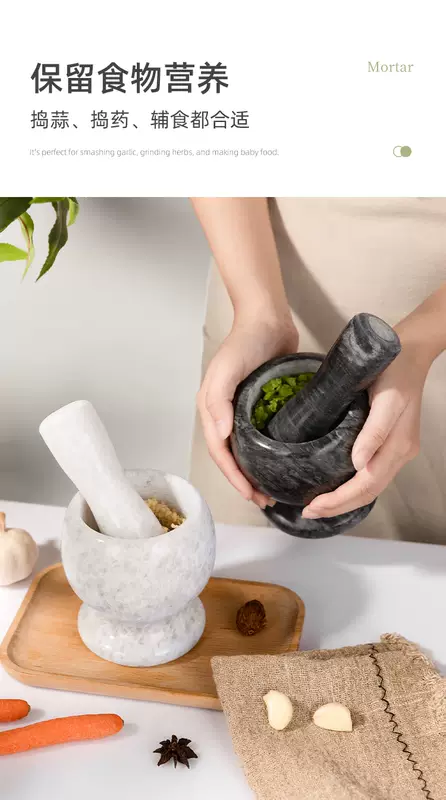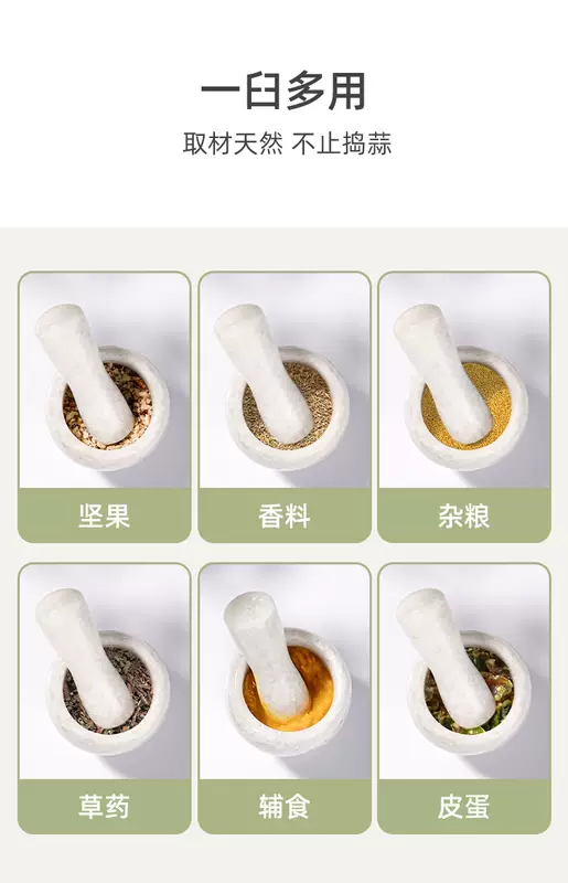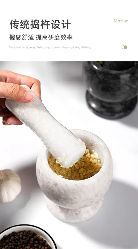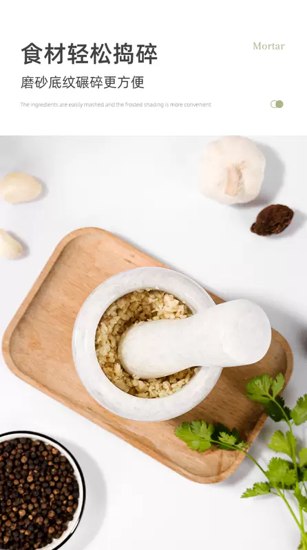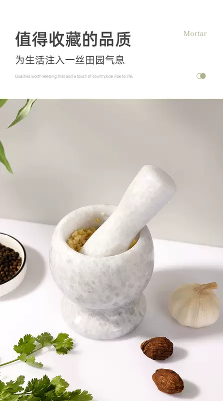 Yusenyi natural marble garlic mortar stone garlic mortar stone mortar garlic artifact hammer grinding household manual old-fashioned smashing medicine marble garlic pounder (white jade)