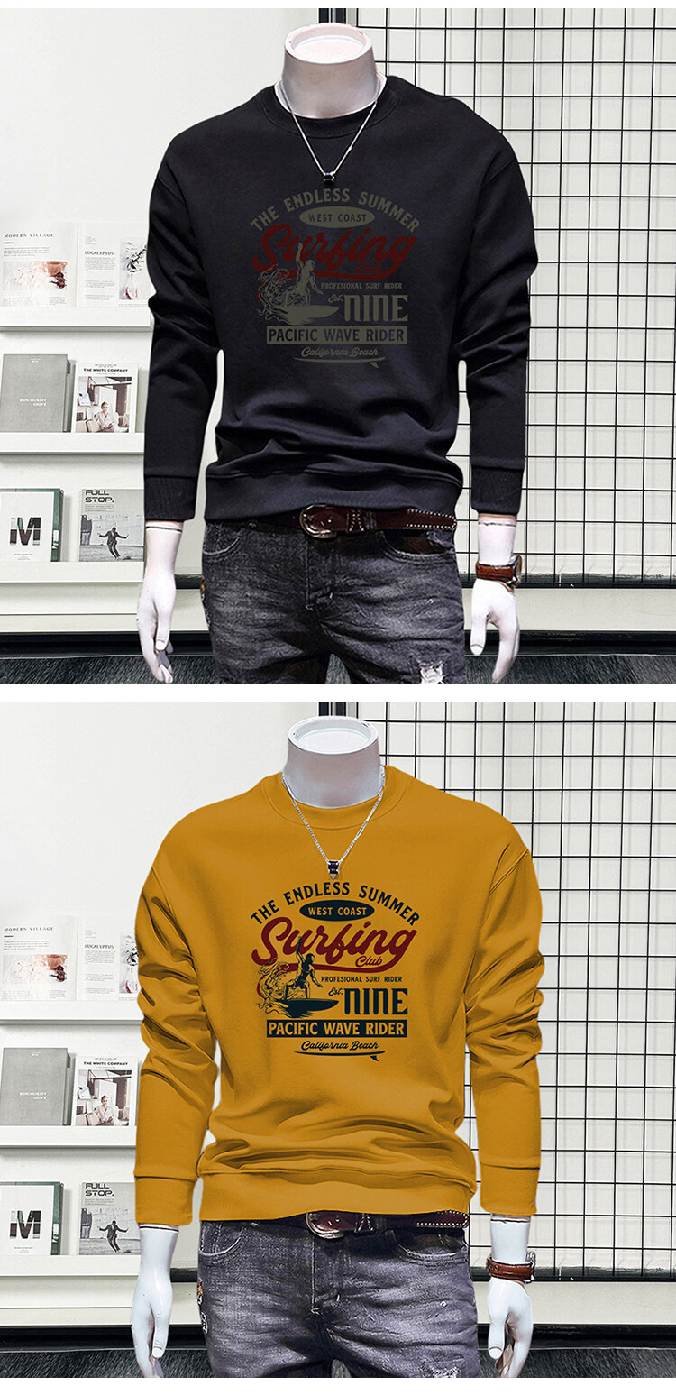 JEEP SPIRIT Jeep sweatshirt men's new autumn jacket men's long-sleeved round neck fashion printed velvet bottoming shirt versatile black Wei 5267 velvet 2XL recommended 145-160Jin Jin equals 0.5 kg