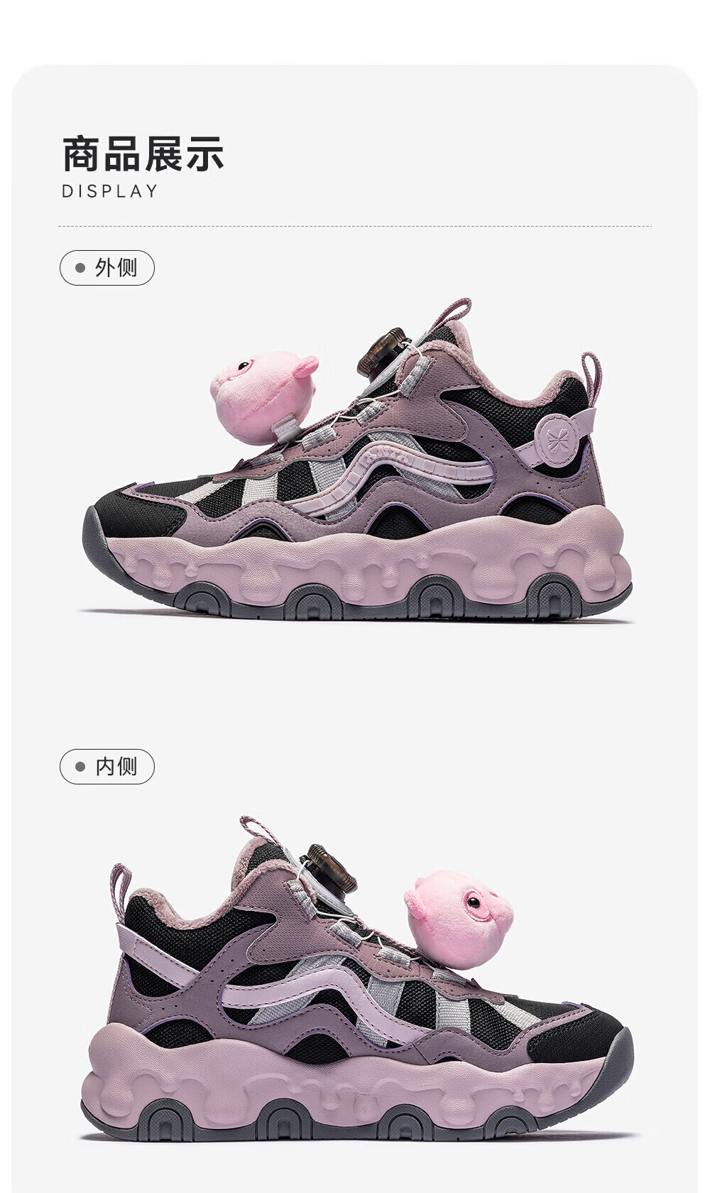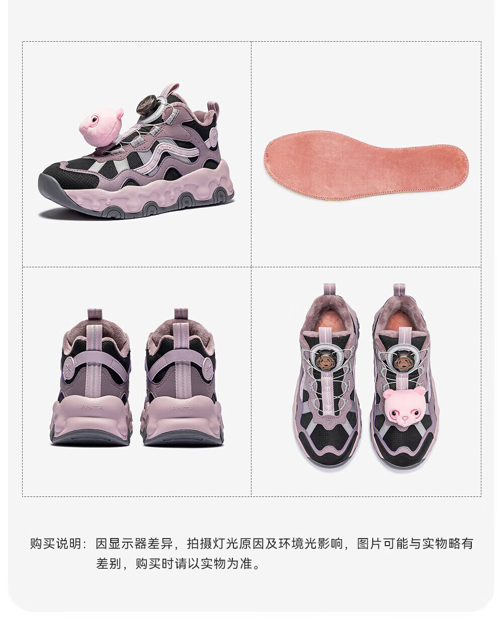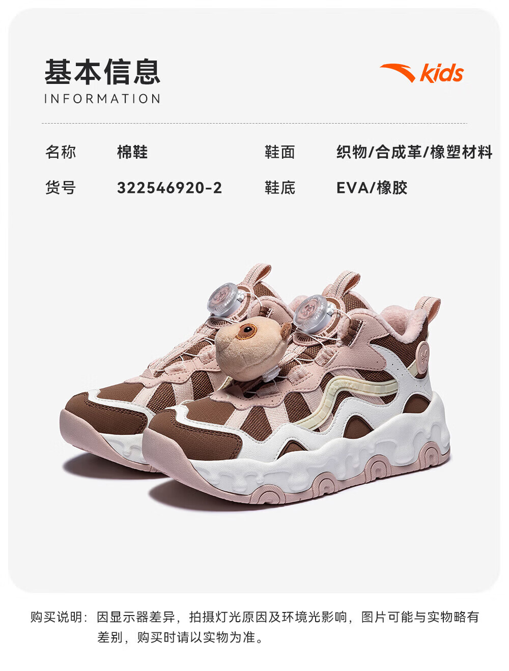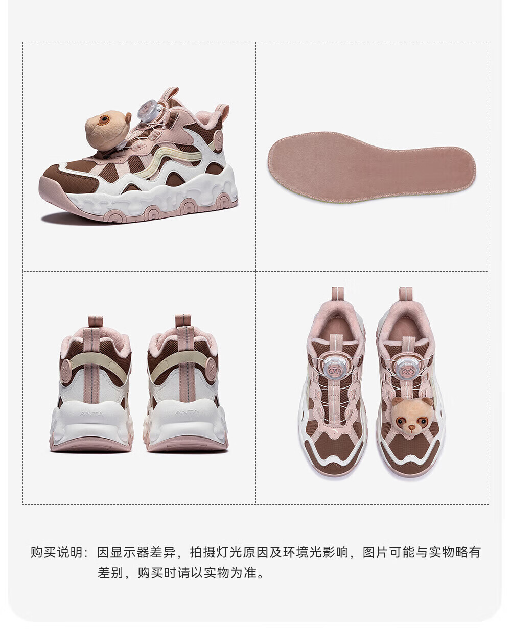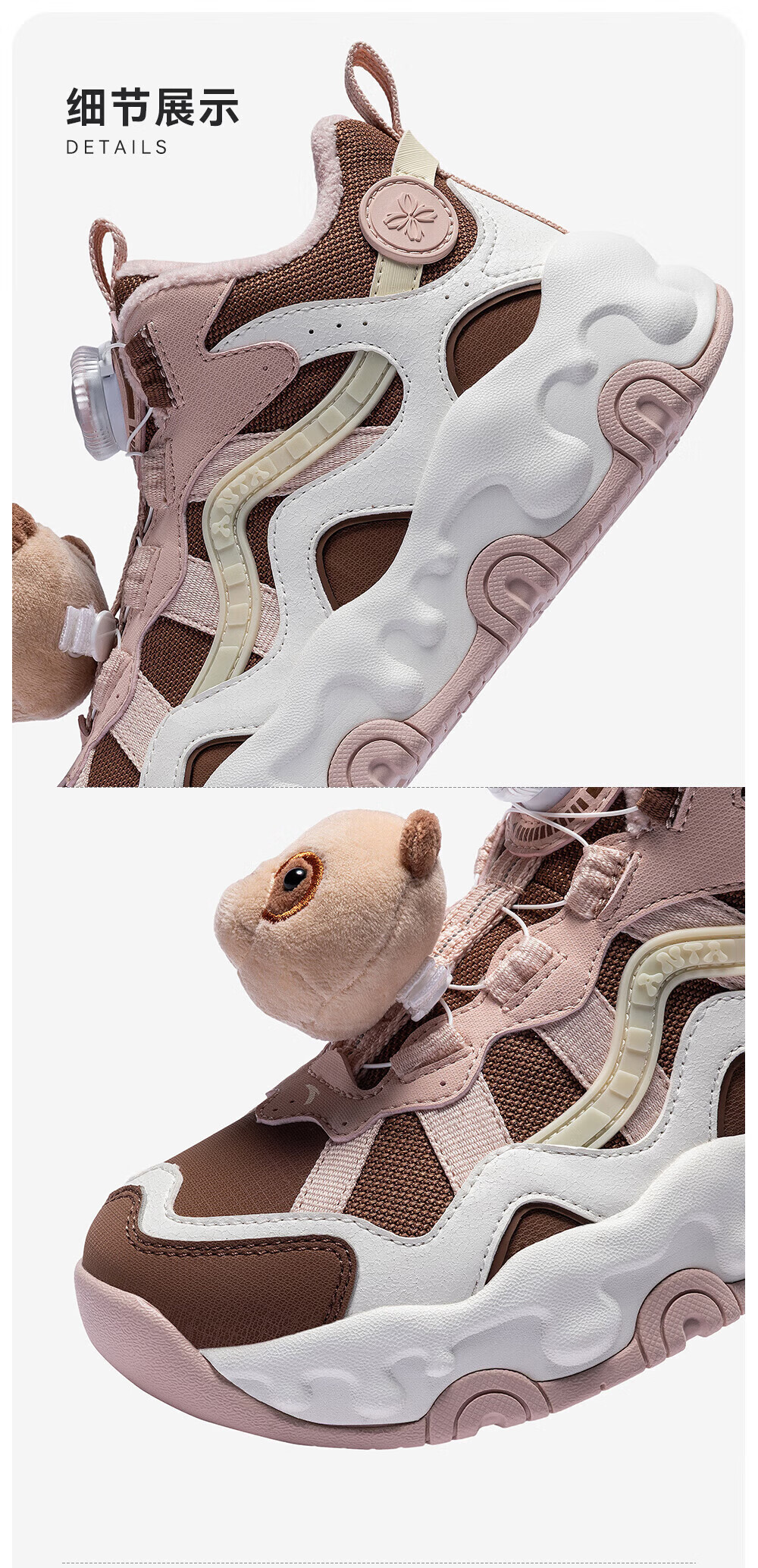 ANTA Children's Synthetic Leather Shoes for Girls and Big Kids 2025 Autumn and Winter New Brownie Velvet Warm Sports Shoes for Snow Chestnut Brown/Sea Pink/Ivory White-2 38