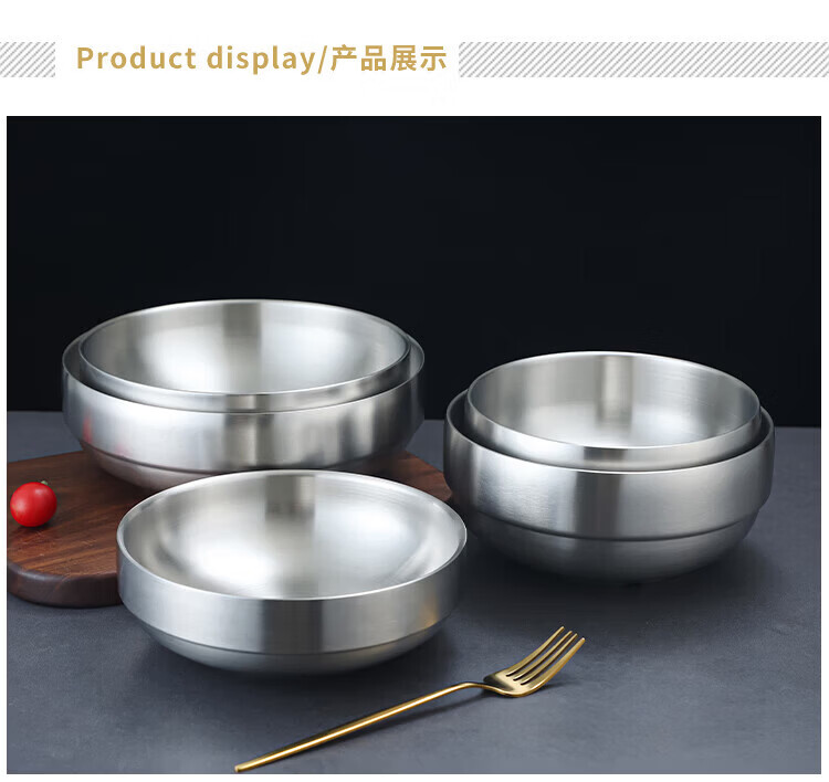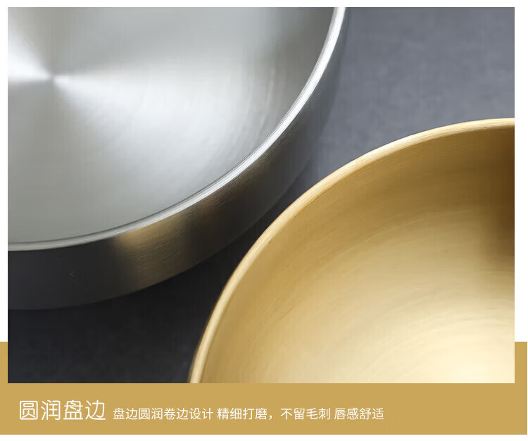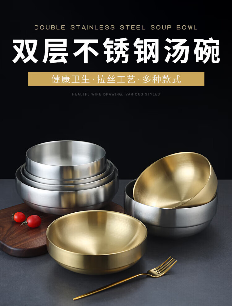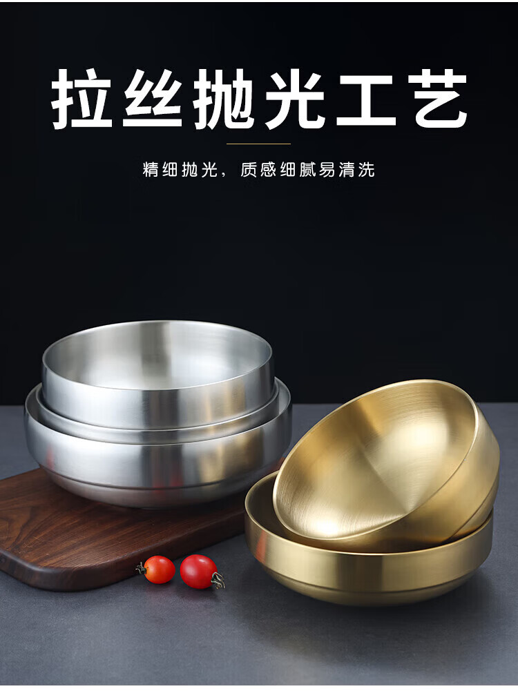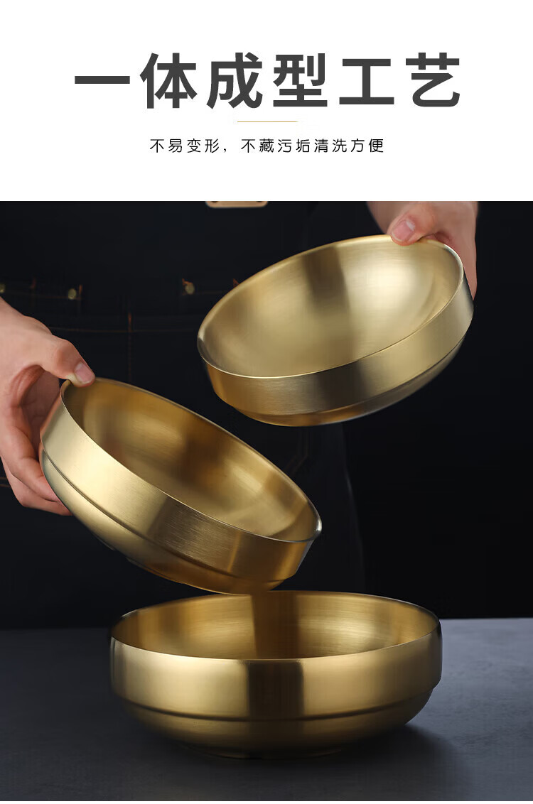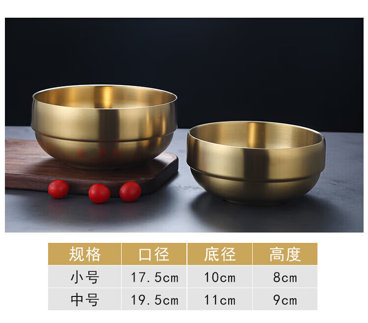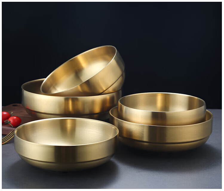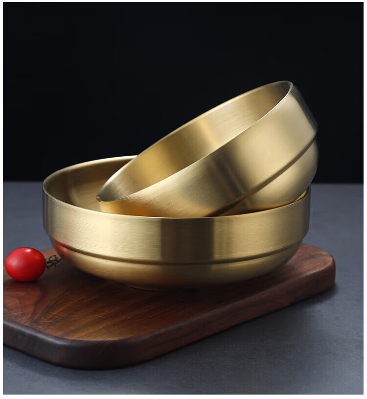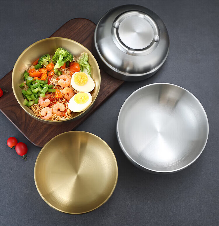 He Jiagong Korean stainless steel soup bowl cold noodle instant noodle bowl Tom Yum Kung golden large bowl double layer snail noodle bowl Korean mix 23 1ml 23cm double layer cold noodle bowl (gold) 1ml 23cm double layer cold noodle bowl (gold)