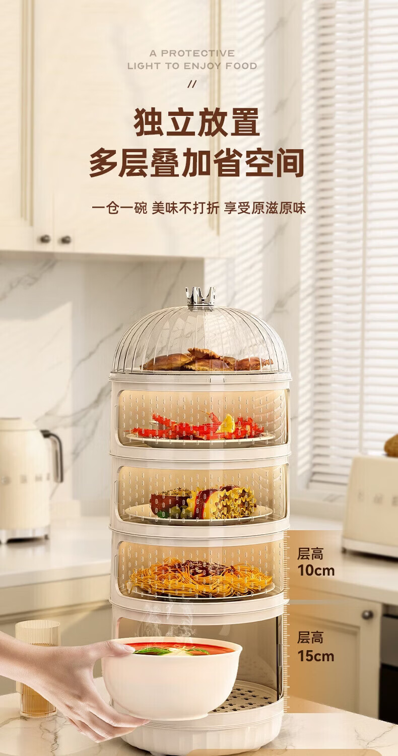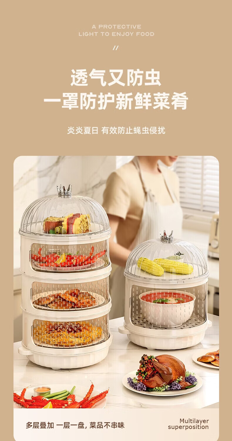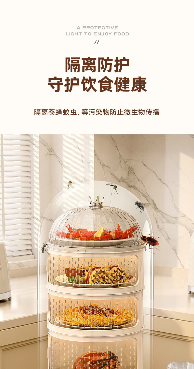 He Jiagong dish cover new high-end home dining table to put leftovers storage rack to prevent insects and flies from dust multi-layer food single function knob model five layers higher