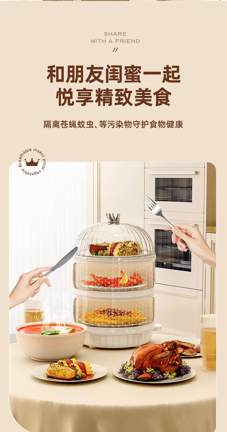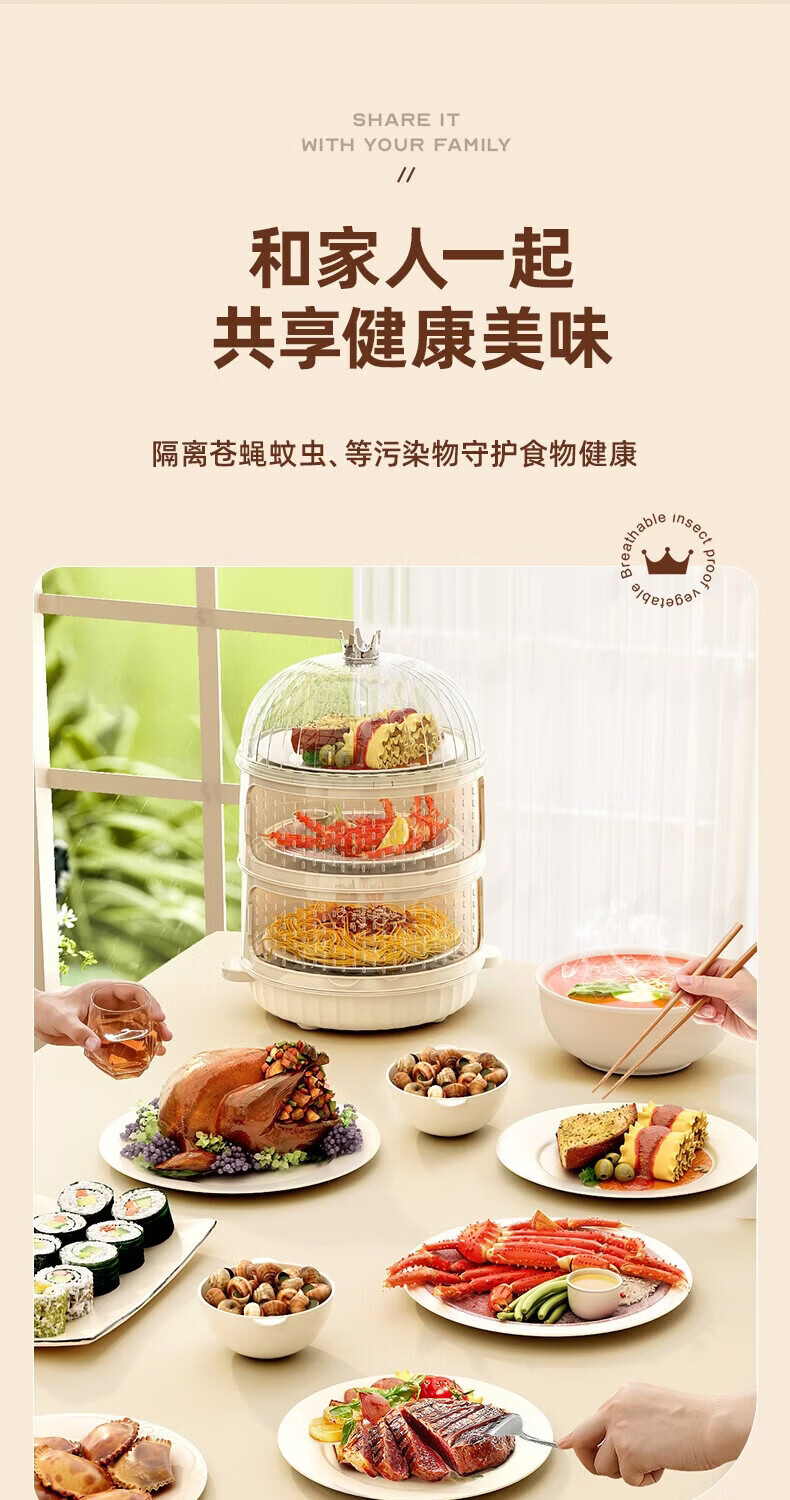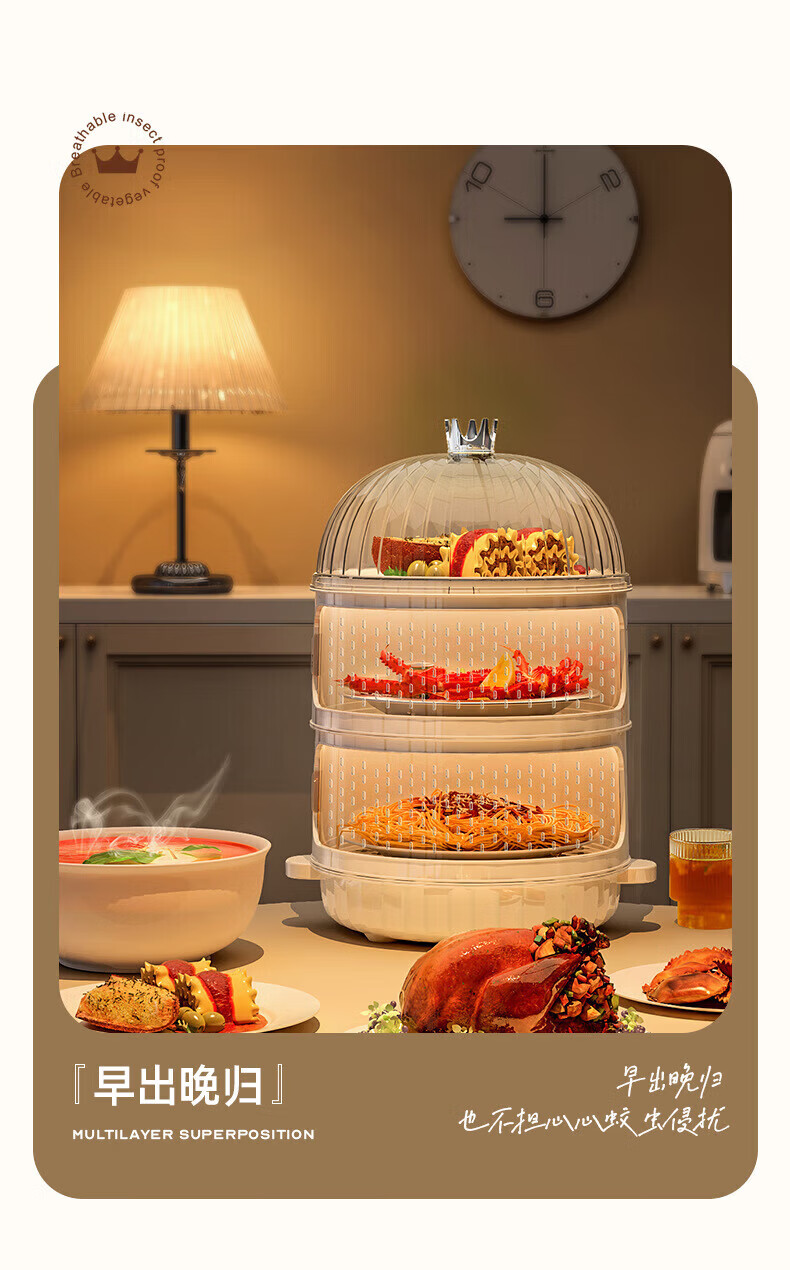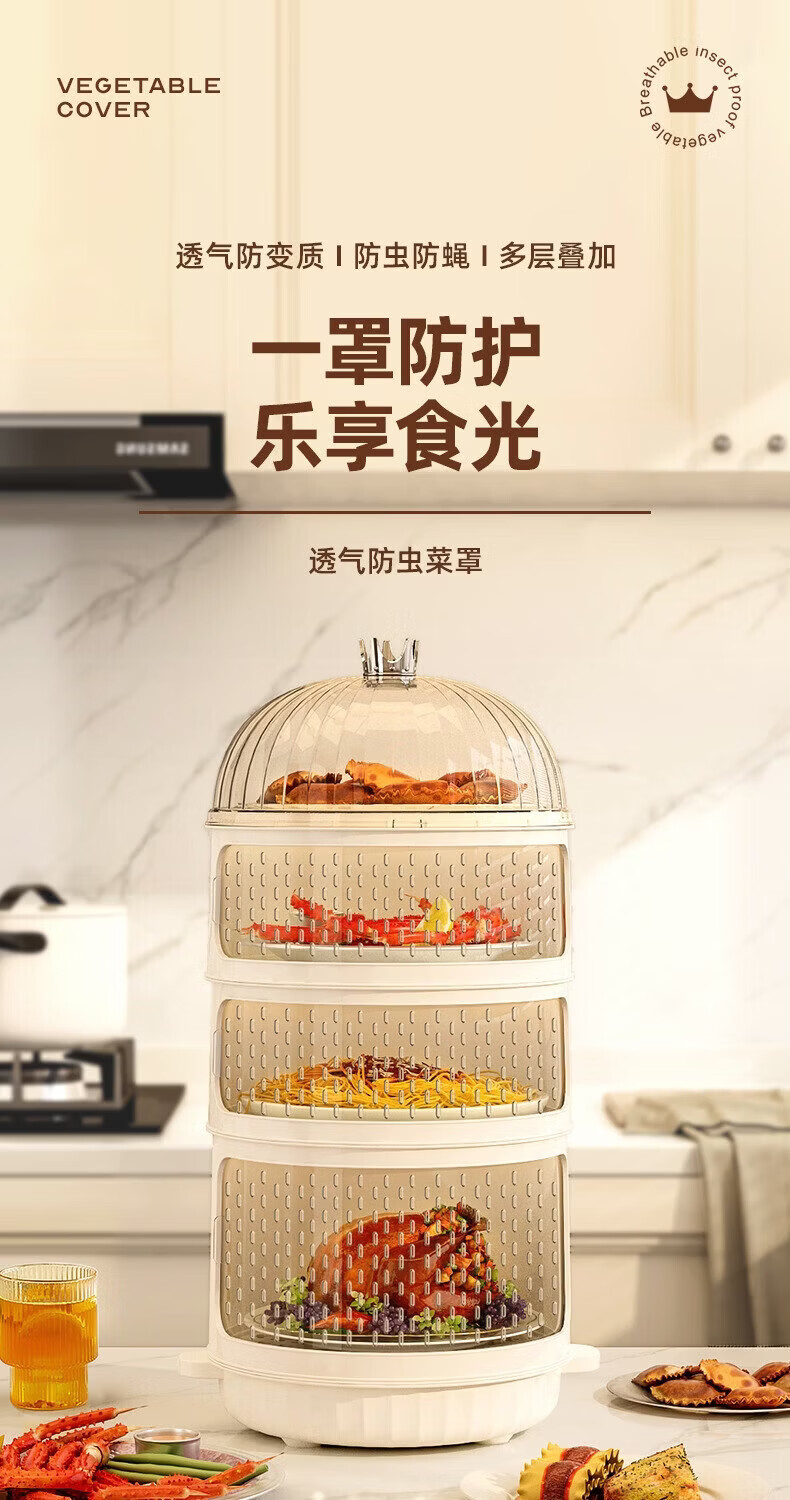 He Jiagong dish cover new high-end home dining table to put leftovers storage rack to prevent insects and flies from dust multi-layer food single function knob model five layers higher