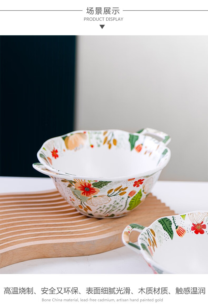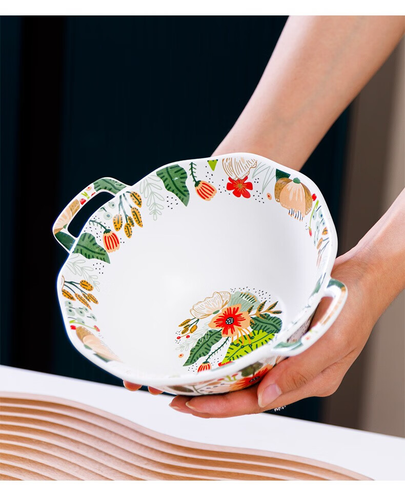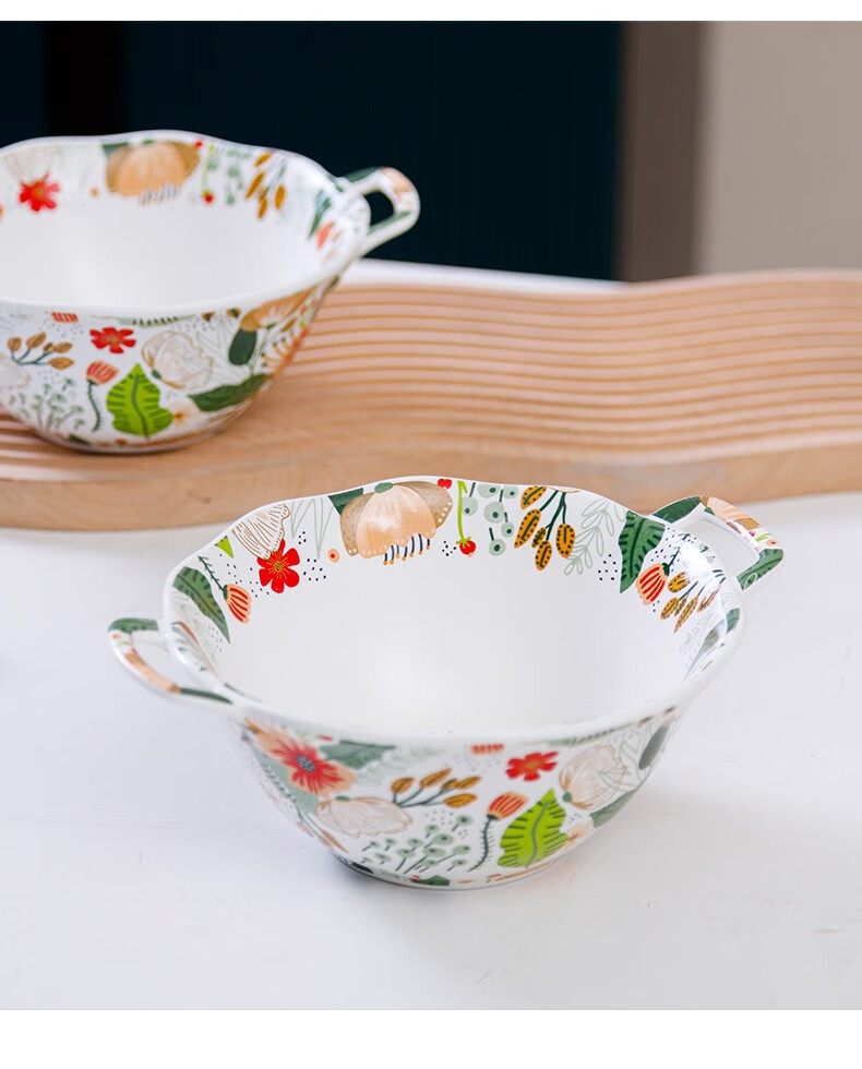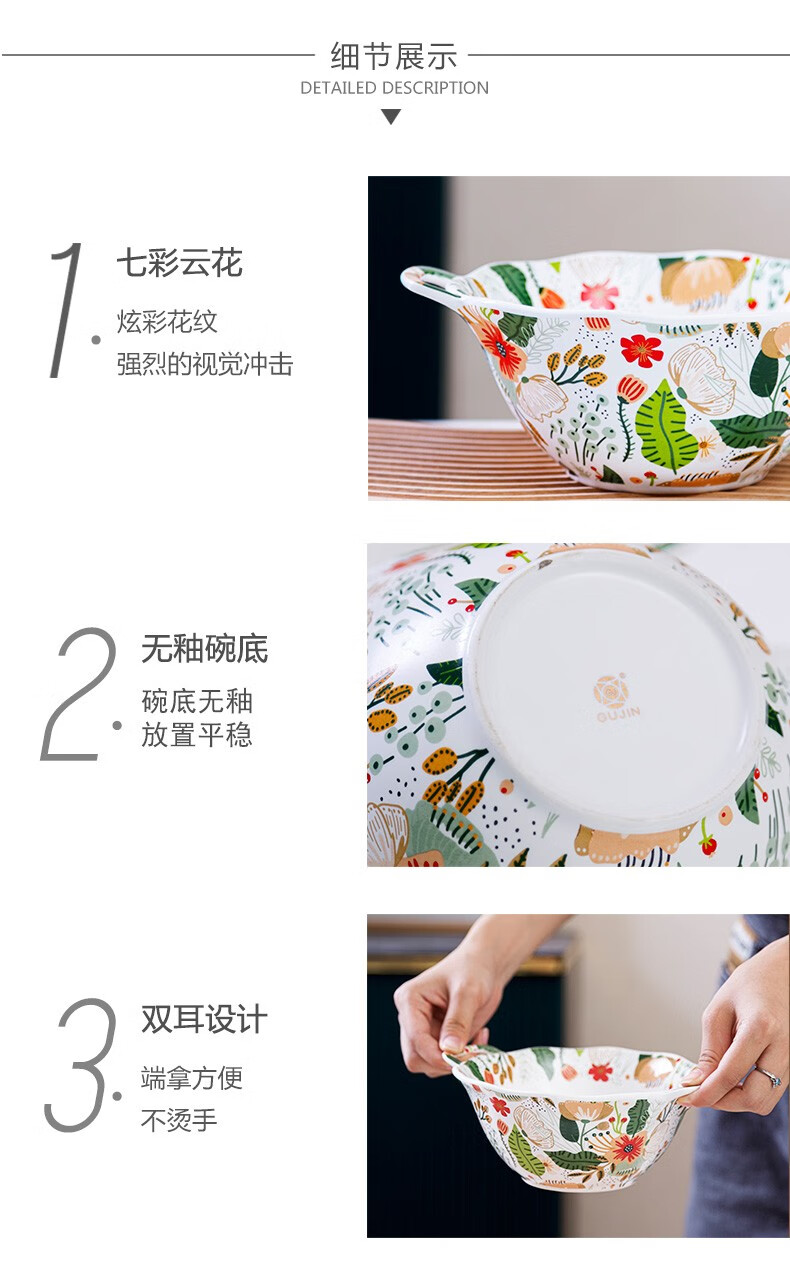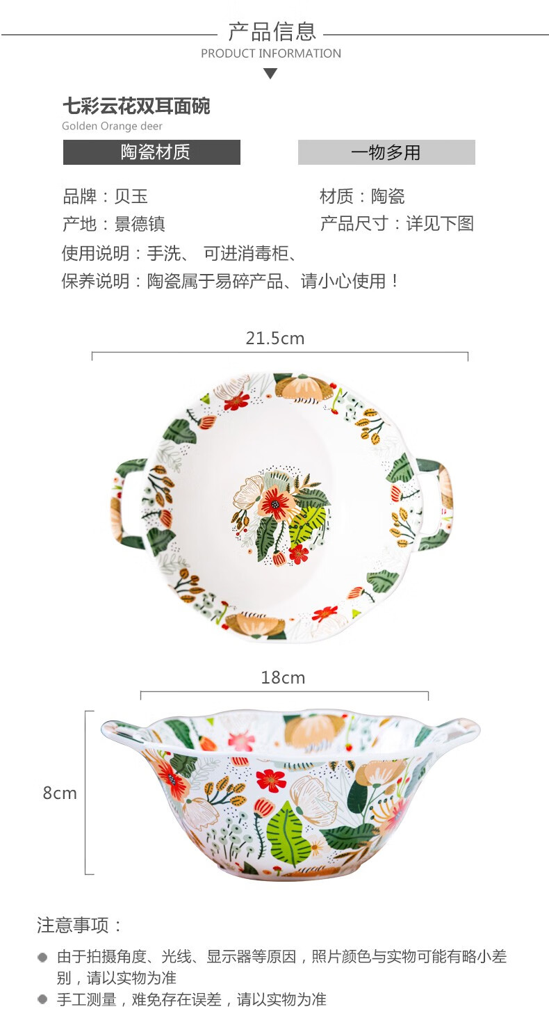 Pick up cat colorful cloud ceramic bowl household instant noodle bowl double-eared soup bowl salad bowl ramen bowl tableware fruit bowl water fruit bowl