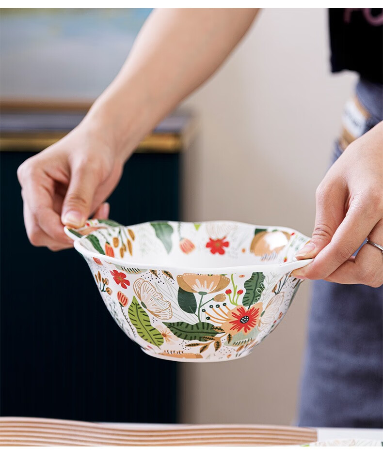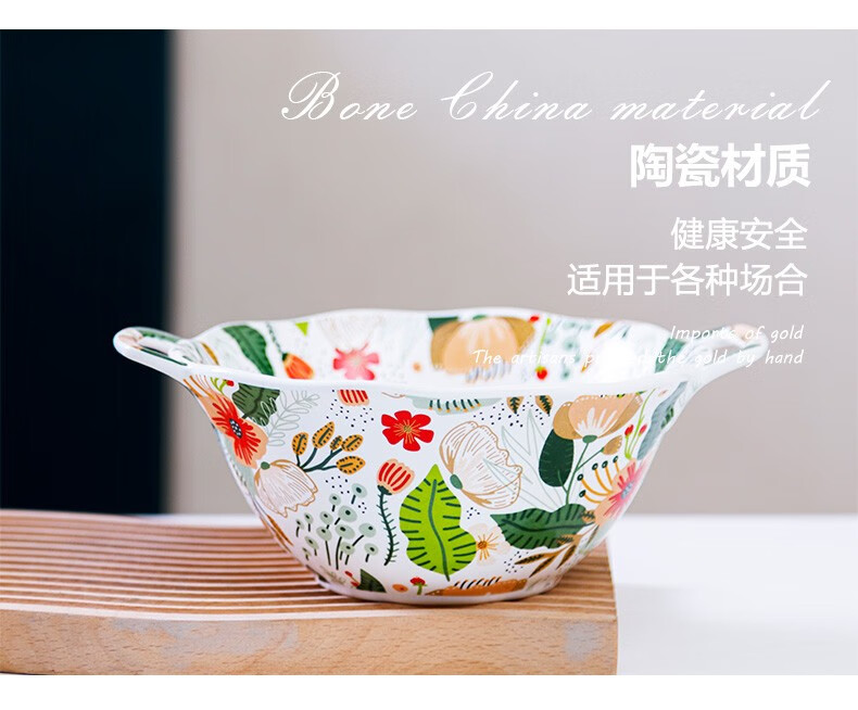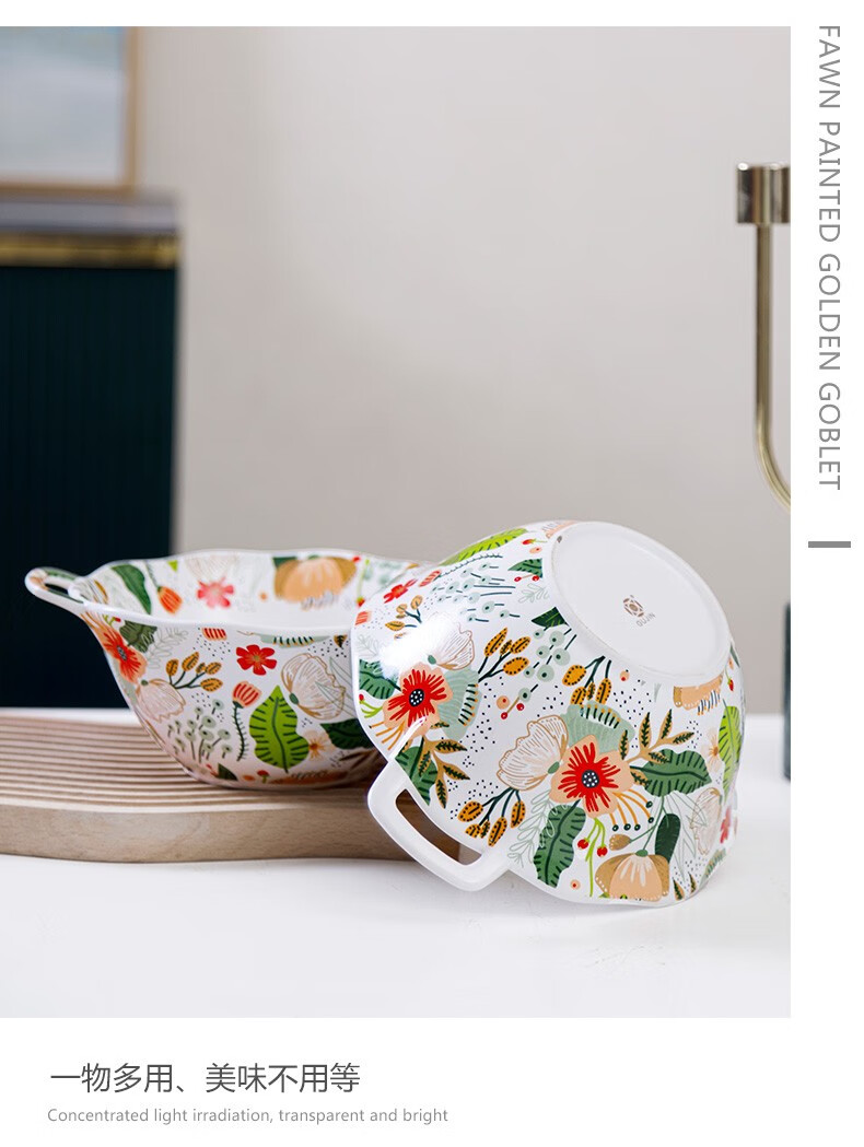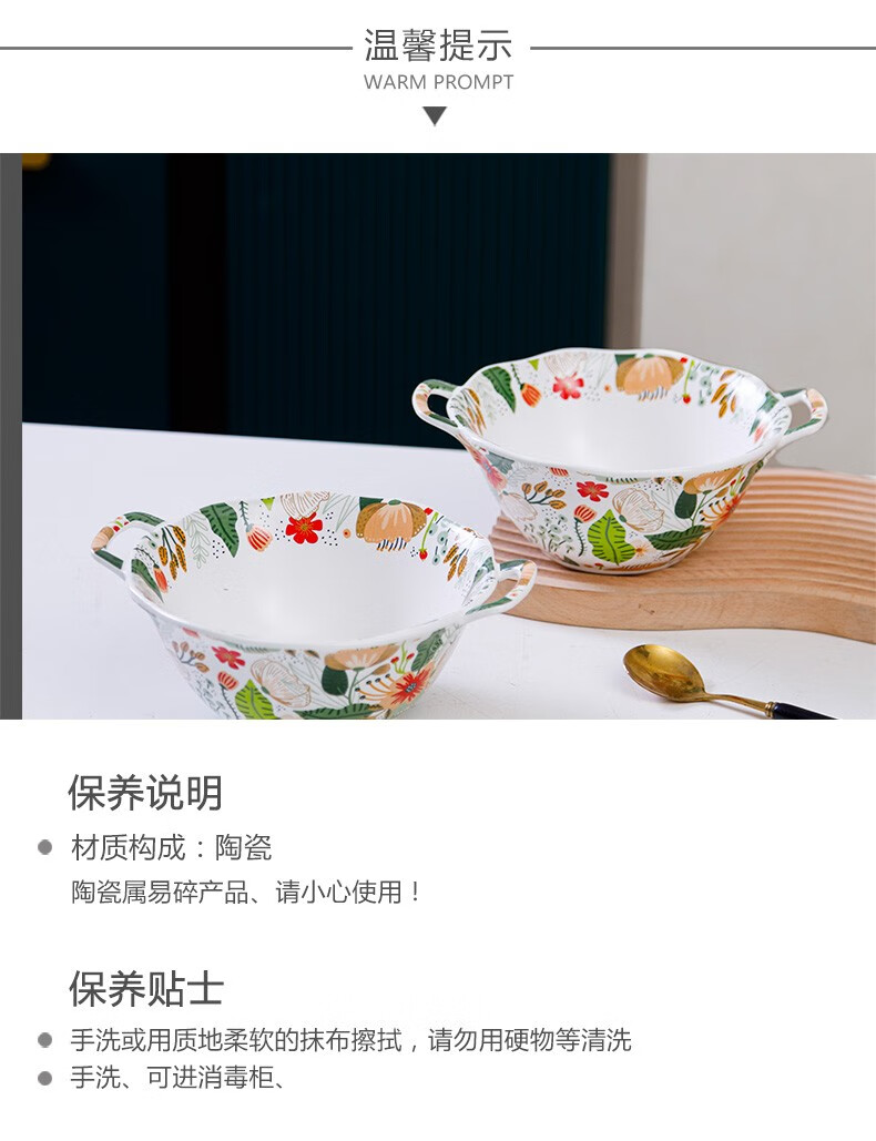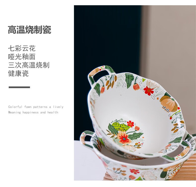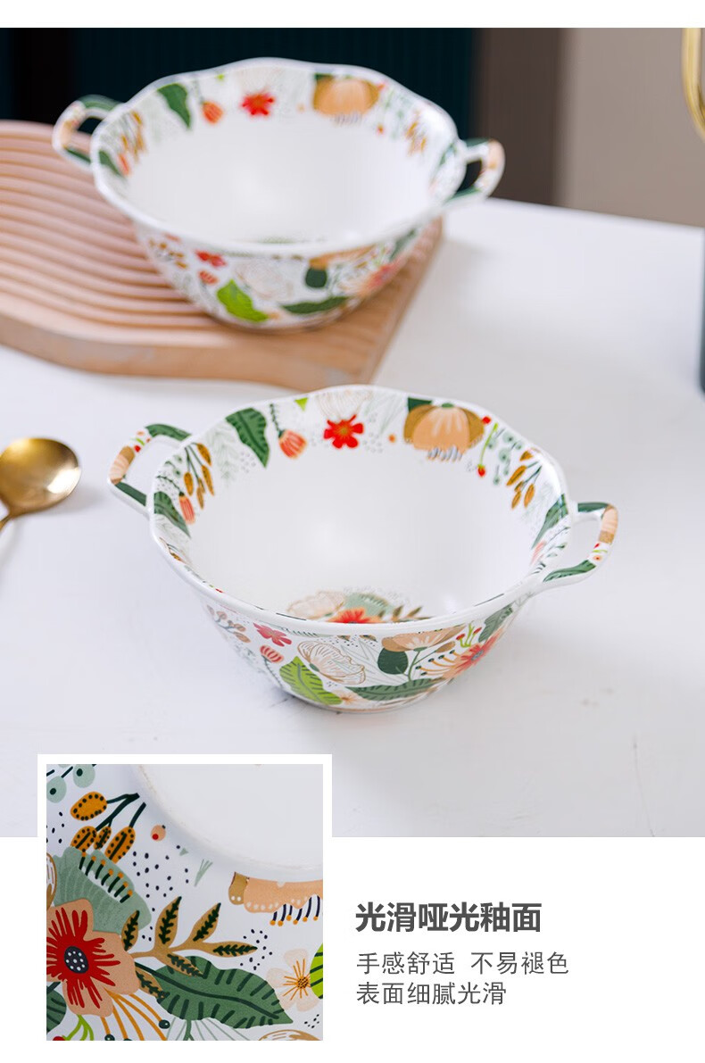 Pick up cat colorful cloud ceramic bowl household instant noodle bowl double-eared soup bowl salad bowl ramen bowl tableware fruit bowl water fruit bowl