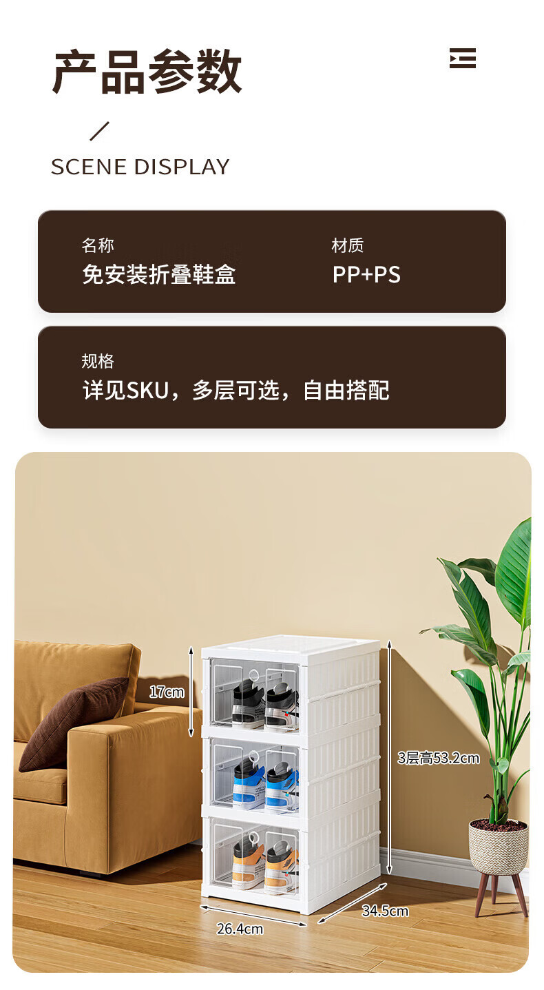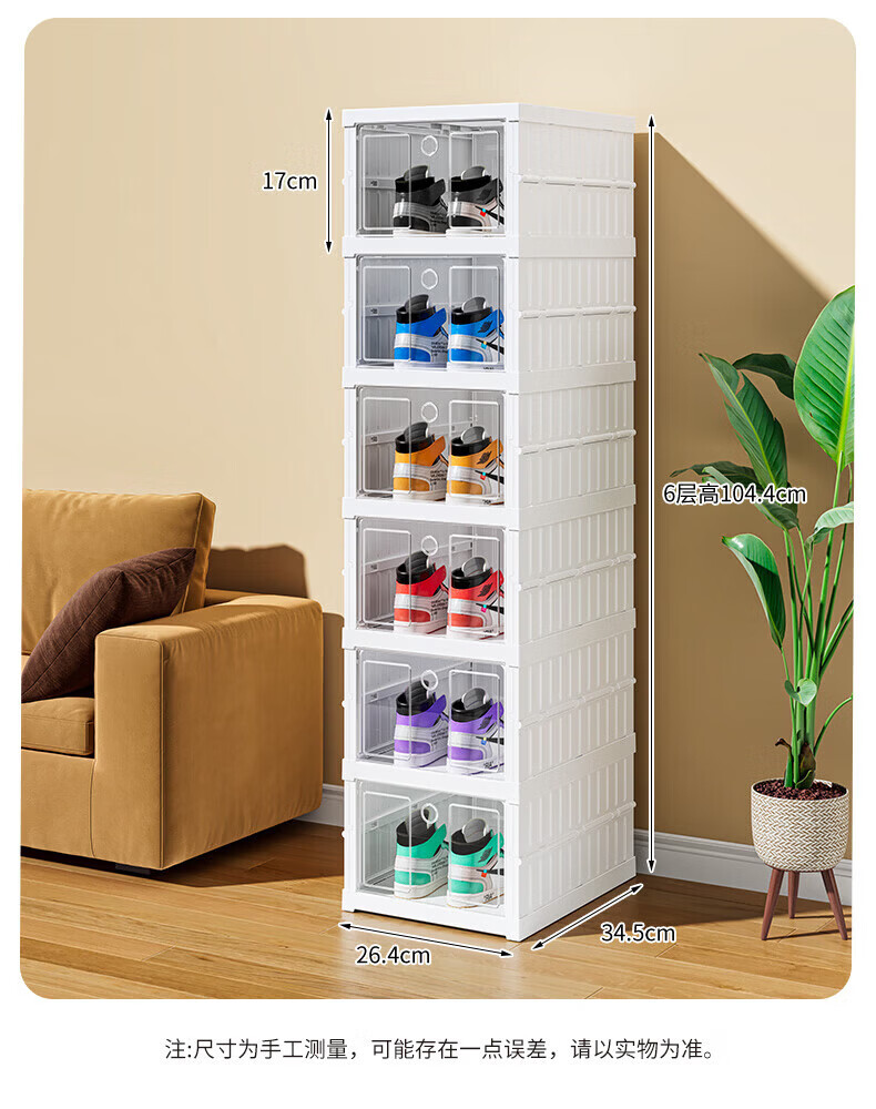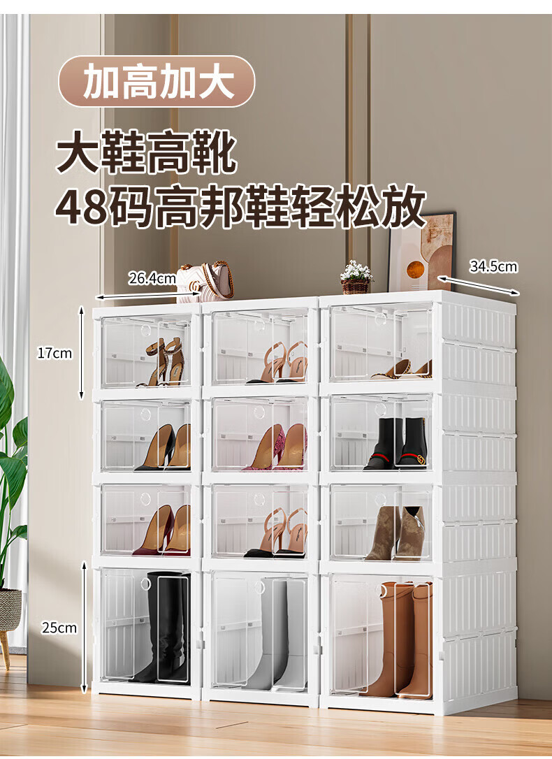 He Jiagong's installation-free shoe box storage box transparent shoe cabinet home door multi-layer thickened folding shoe rack boot storage four rows of double doors 3-layer-12 pairs of shoes with boot box/magnetic opening lid